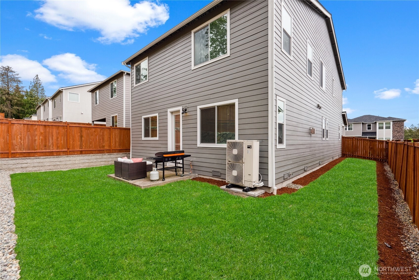 Welcome to this stunning 5 bed, 3 bath home nestled on a cul-de-sac in the desirable North Creek neighborhood of Gig Harbor. Entry with 10 ft ceilings & natural light leads you to an open concept kitchen/dining/living area with gas fireplace. Chef's kitchen w/large kitchen island, quartz countertops, stainless steel appliances, 5 burner gas range, under cabinet lighting, soft close cabinets, & custom light fixtures. On the main floor you will also find a bedroom w/walk-in closet and 3/4 bath w/tiled shower. Oversized primary bedroom upstairs w/large en-suite, double vanity, soaker tub, walk-in shower with custom tile work & walk-in closet. Upstairs has 3 additional oversized bedrooms, full guest bath, loft, and laundry room. Tons of upgrades throughout. Finished 2 car garage with plenty of storage space. Fully fenced backyard w/sprinkler system for front & back. A/C for hot summer days. Close to waterfront, parks, restaurants, YMCA, Costco, I5 & Cushman Trail.