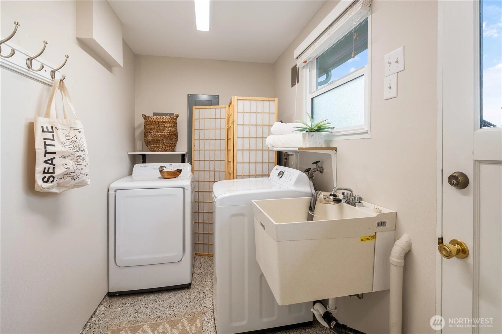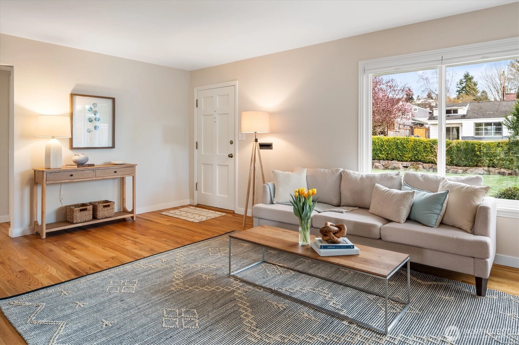 You’ve truly found a move-in ready home in the welcoming Broadview neighborhood! This charming rambler features a newer roof, newer windows, recently painted exterior, beautifully refinished hardwood floors, and thoughtful updates throughout that makes this home sparkle. Step inside this cozy one-story home just north of Carkeek Park and enjoy a layout that truly works. Three bedrooms and a full bath are located on the north side of the home, while the living room, dining area, and kitchen create a comfortable central gathering space. On the south side, a second living room with a ¾ bath offers flexibility for guests, a home office, or additional living space. New kitchen countertops and freshly painted interior walls make it easy to move right in while leaving room to add your own personal touches over time. Carpet in 2nd living room has vapor barrier padding over the concrete floor. Epoxy flooring in utility room. An attic space that offers tons of storage space within the home. Located just blocks from Carkeek Park and then Puget Sound, this home enjoys a quieter residential feel while still being just minutes from shopping, dining, and daily conveniences. For added peace of mind, the home and sewer line have been pre-inspected. Come discover what makes life in Broadview so special and see how you can make this your next home!