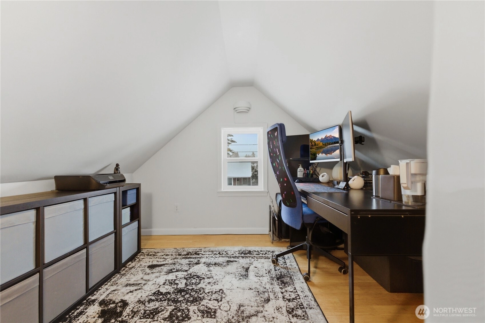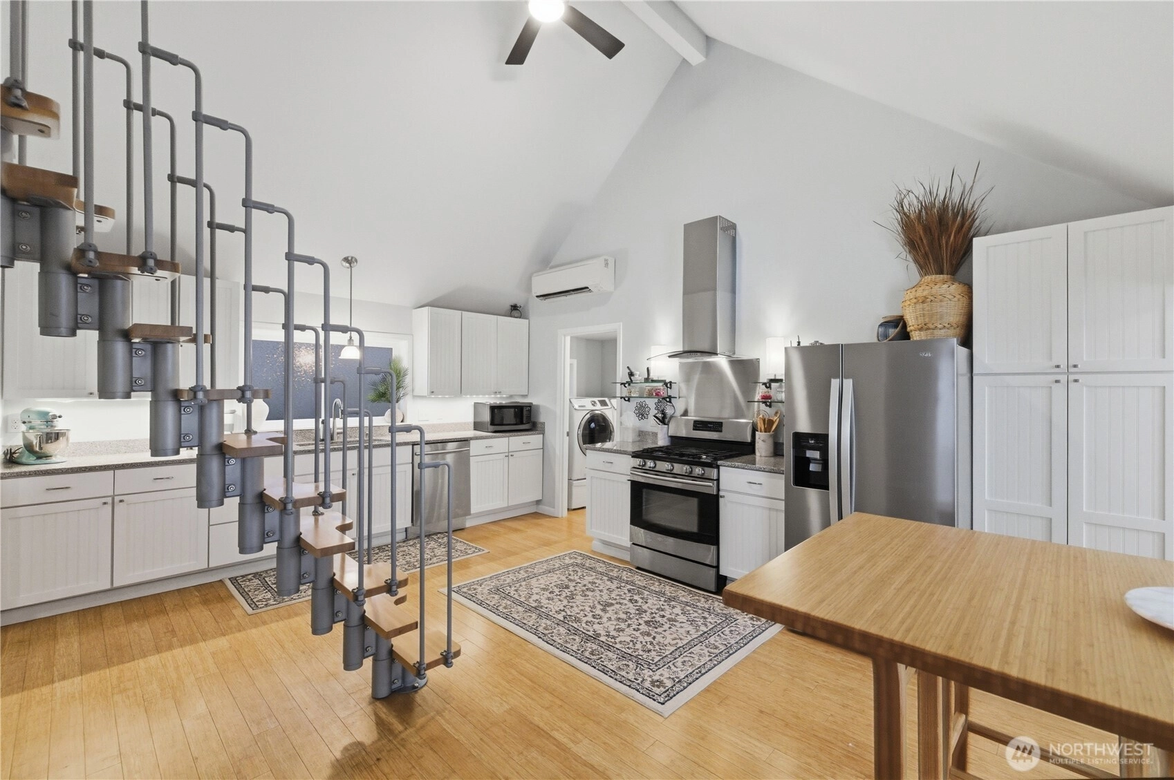 Charming cottage-style West Seattle home with a rare 720 sq ft detached garage/shop. Originally built in 1934 and thoughtfully rebuilt from the studs up in 2014 with new framing, insulation, electrical, plumbing, roof, HardiePlank siding, Milgard windows, ductless mini-splits, tankless water heater, and a complete kitchen and bath remodel (all permitted). Beautiful bamboo flooring runs throughout the home, while the spacious kitchen features vaulted ceilings, granite countertops, stainless steel appliances, gas range, and dining area. Loft space provides an ideal setting for a home office or creative retreat. The fully fenced yard with gated entry offers room for gardening, pets, entertaining, or relaxing outdoors. Conveniently located with easy access to shopping at Westwood Village, local restaurants, parks, and major commuting routes to downtown Seattle and Burien.