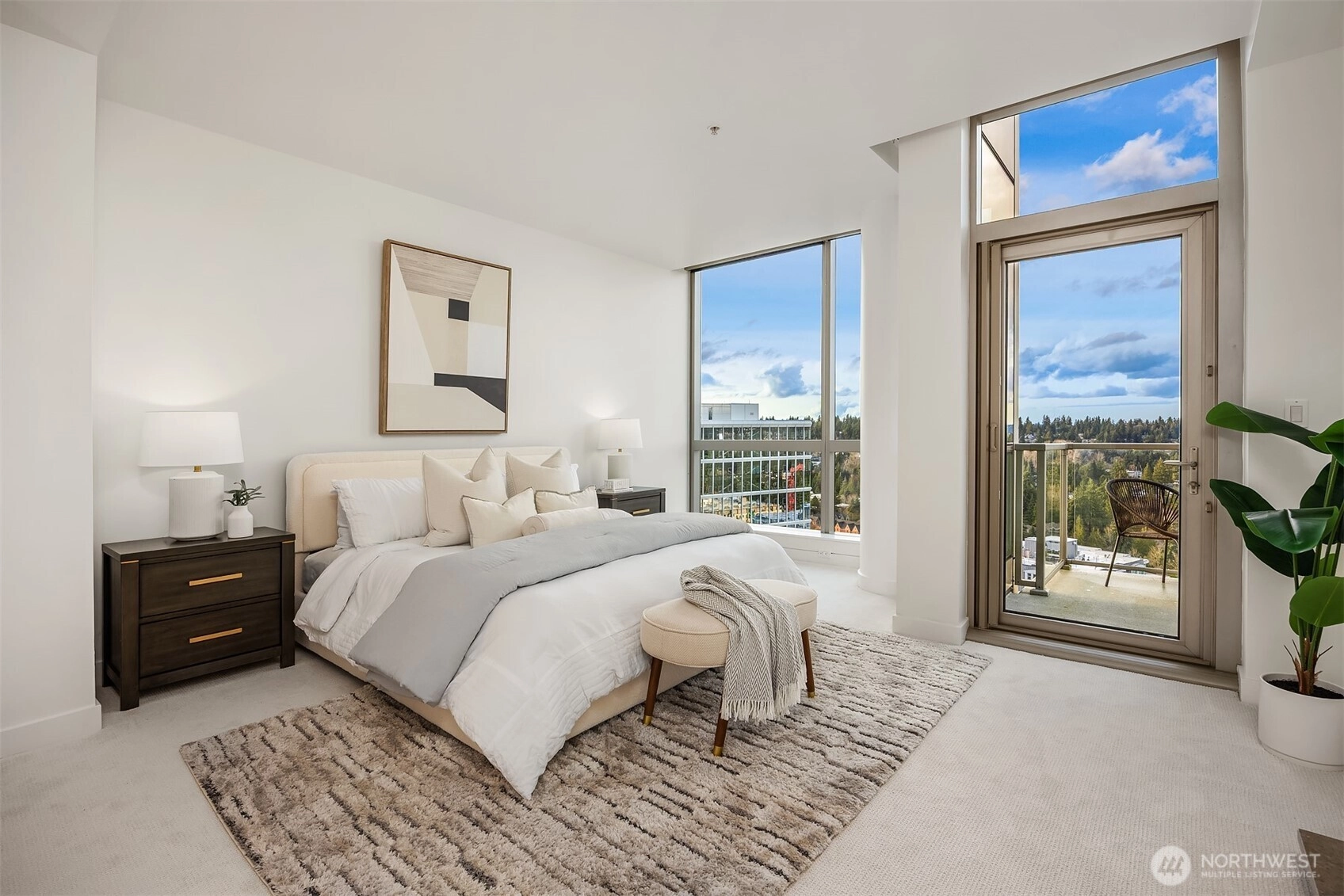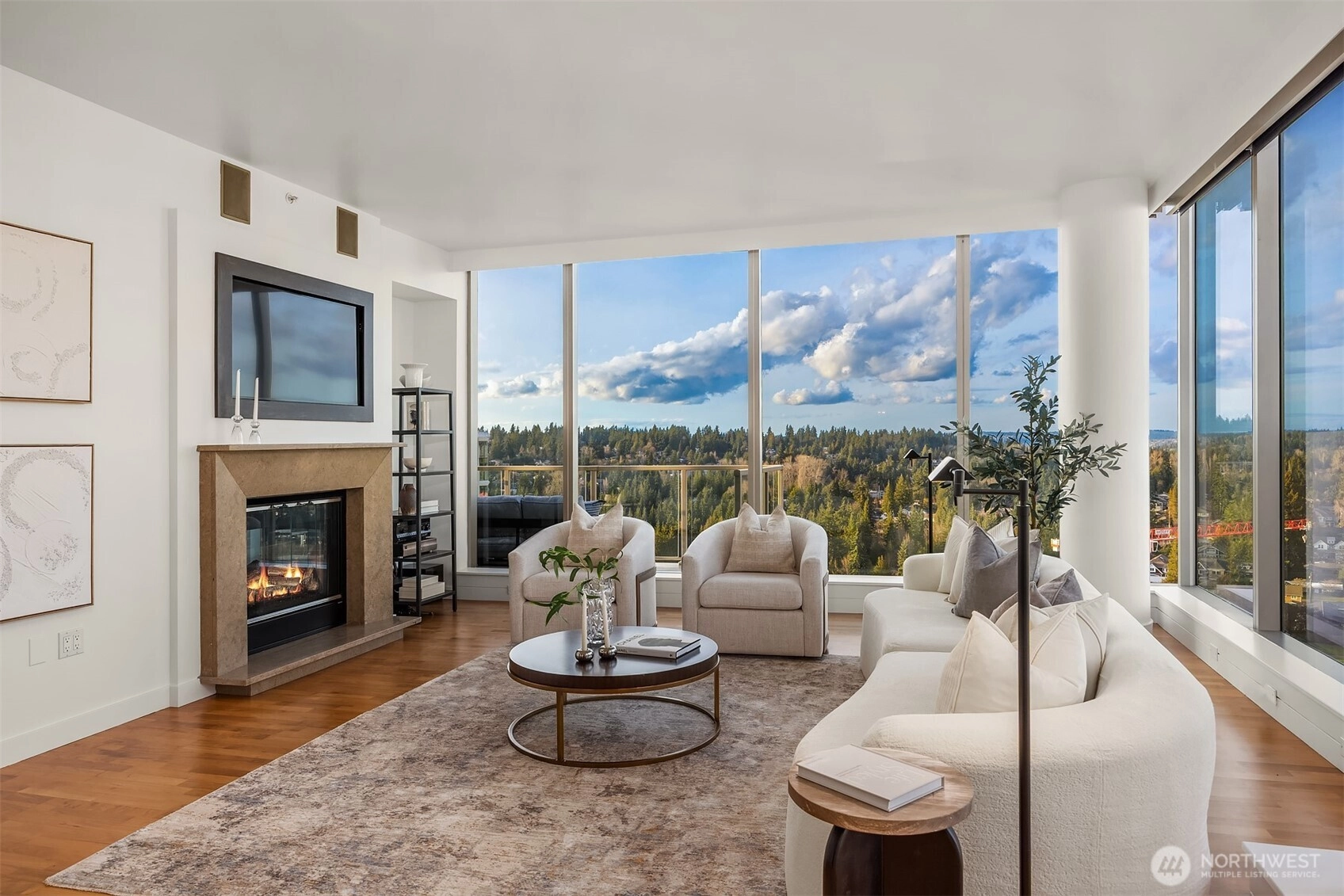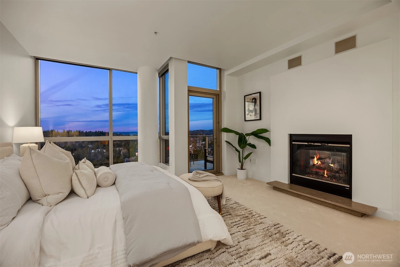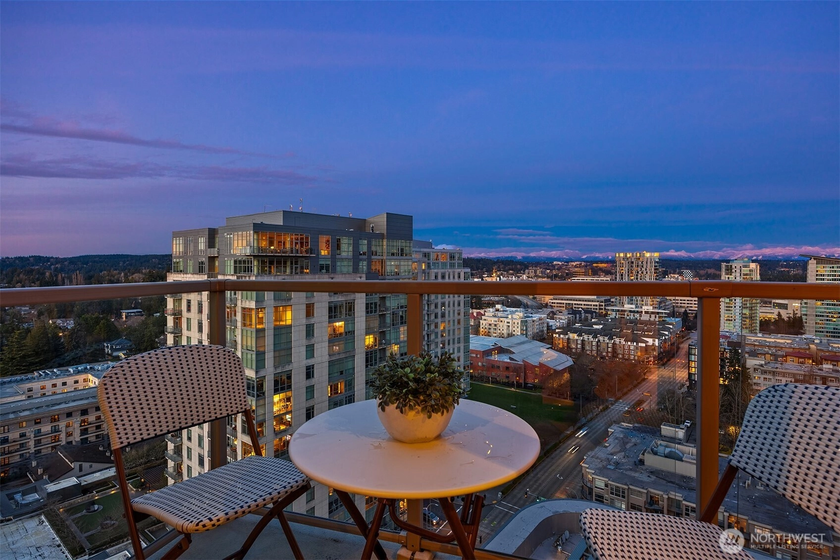 Experience elevated Penthouse living in the heart of downtown Bellevue. This expansive residence showcases protected North and East-facing views, capturing stunning sunrises and sunsets through dramatic floor-to-ceiling windows. The open concept living and dining area is filled with natural light and anchored by a cozy gas fireplace. A chef’s kitchen features premium stainless steel appliances, slab granite countertops, and a generous island perfect for entertaining. The spacious primary suite offers a walk-in closet and spa-inspired en suite bath. The second bedroom includes a custom built in Murphy bed for flexible guest or office use. Three private balconies extend the living space outdoors. Additional highlights include a private, oversized 2-car garage and a separate storage unit. Enjoy gated, secure condominium living with 24/7 concierge, fitness center, spa, and owner’s lounge. Just steps from Bellevue Square, dining, parks, and light rail, this home offers luxury, privacy, and exceptional walkability.