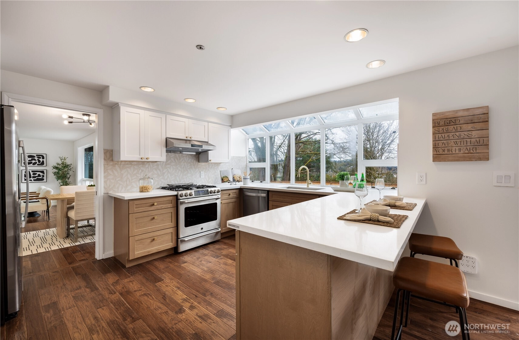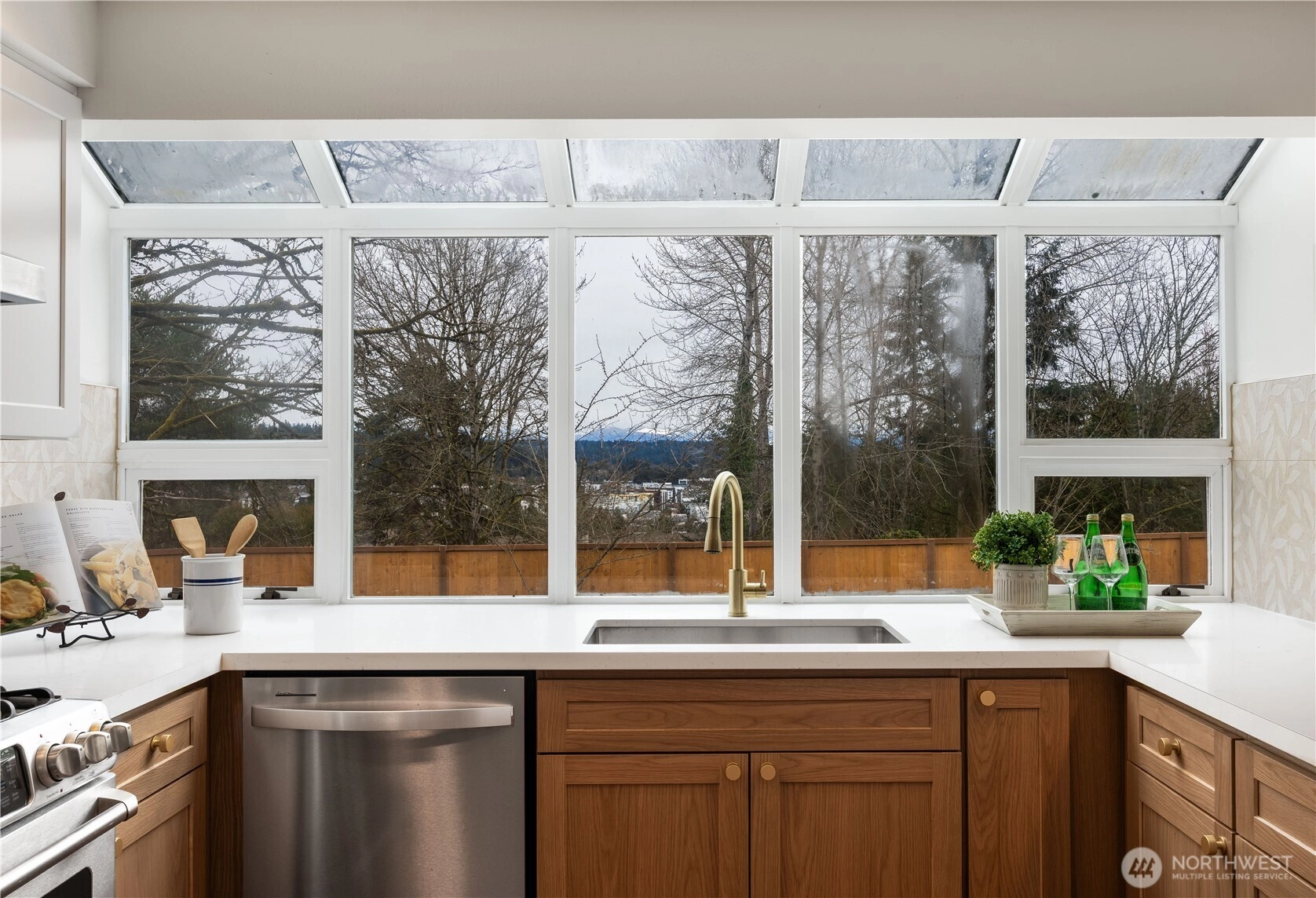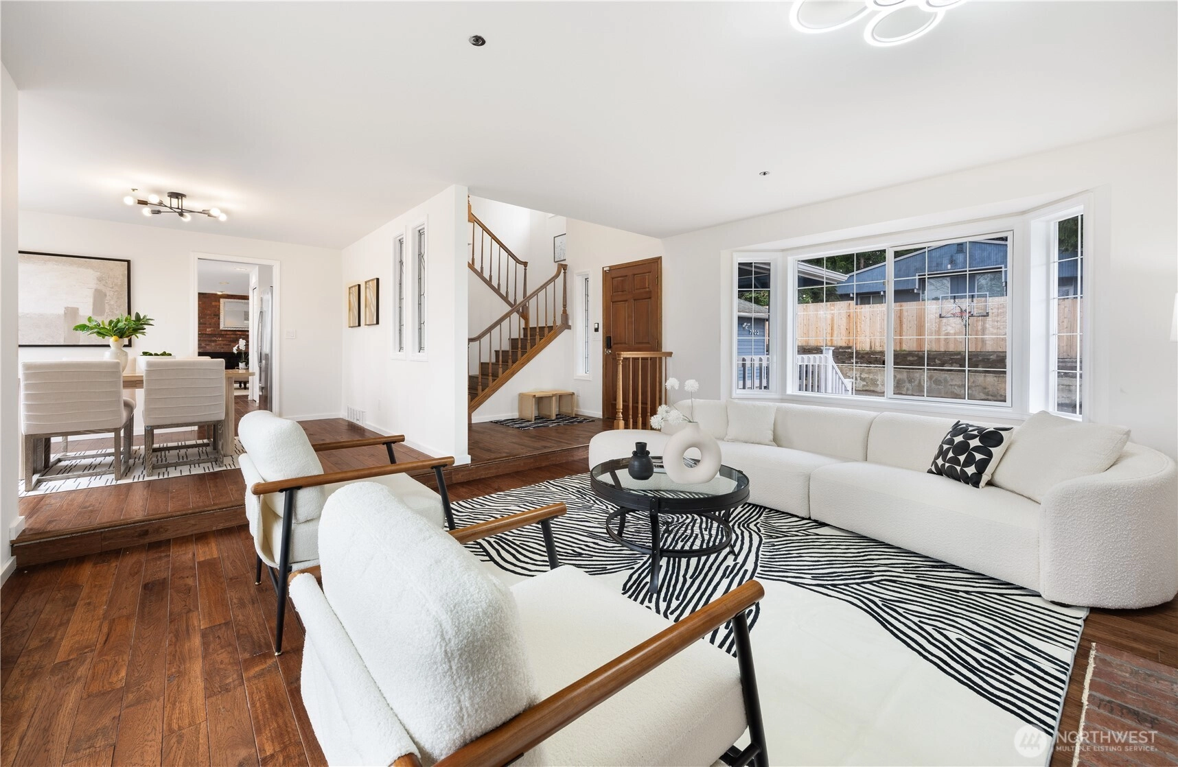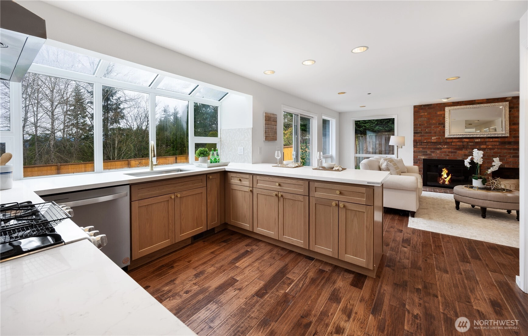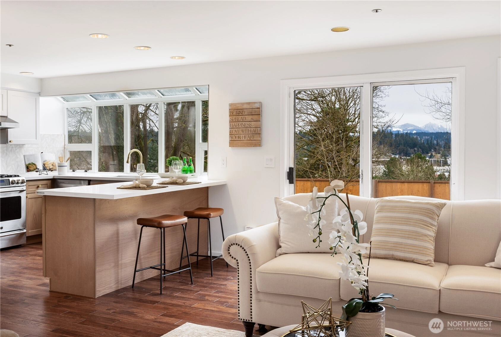 Don’t miss this opportunity to live in the coveted Grass Lawn neighborhood. Surrounded by million-dollar homes, this beautifully remodeled gem sits at the end of a private setting on a 12,000+ SF pancake flat lot with mountain views. A soaring entry welcomes you into a thoughtfully updated home (over $150K devoted) that blends style and functionality. The open living room flows seamlessly to the dining area and brand-new kitchen overlooking the spacious backyard. A cozy family room sits adjacent to a quiet den/office. Upstairs, the grand primary suite features a spa-like bath, perfect for relaxing and unwinding. Two additional bedrooms and a full bath provide comfortable space for household members. Outside, enjoy the huge flat yard with a newer large patio, new grass, new fencing, and beautiful mountain views. Recent updates include new interior and exterior paint, roof (2021), water heater (2024), and new cooktop. Unbeatable heart of Redmond location close to SR-520, I-405, Grass Lawn Park, Microsoft, and everyday amenities for an easy commute and convenient lifestyle. Top-rated LWSD. A must see.