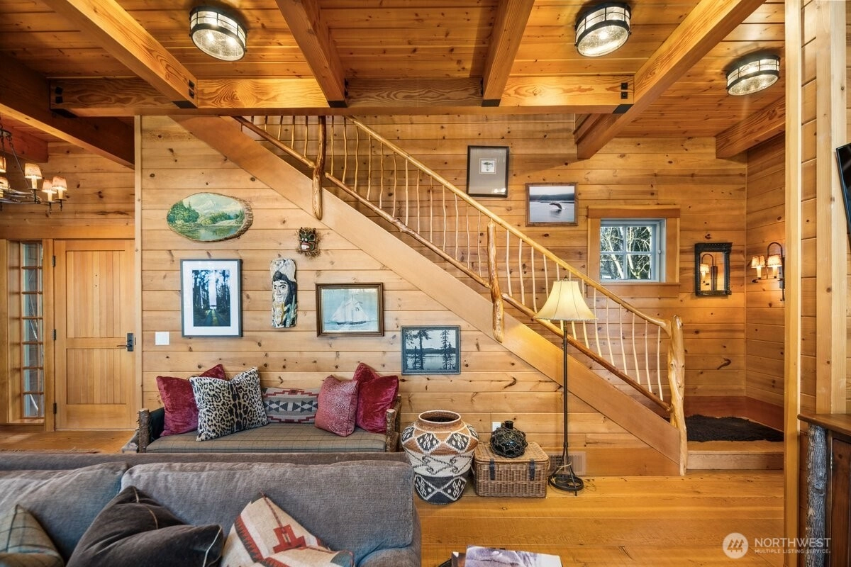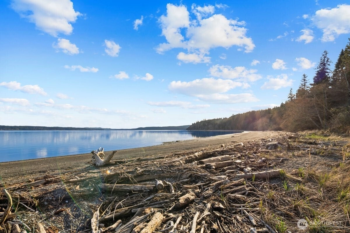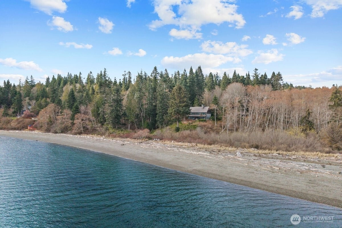 If you are searching for a waterfront retreat on the Olympic Peninsula to spend relaxing times w/family/friends, this property is exceptional! A classic, traditional 2590SF "cabin in the woods" centered on 5.6 acres overlooking 464' of waterfront w/tidelands on the Hood Canal. This craftsman style luxury built home is constructed w/large Douglas Fir beams spanning across the great room paneled with T&G cedar boards and solid 11' Fir floors. Beautiful wood wrapped wall of windows let in abundant light while a 30' high river rock fireplace dominates the room. The kitchen/dining area overlook the great room, & 2 sets of French doors invite you to outdoor BBQs & entertaining on the expansive decks. The main floor has a bedroom that shares a 3/4 bath. Upstairs the primary bedroom has a fireplace, private balcony w/ water views & en suite 3/4 bath. 2 more bedrooms & a full bath are across a walkway that is open to the great room below. A detached cozy bunkhouse can accommodate more family/kids/guests w/a 1/2 bath. Attached is a magnificent 2500SF gymnasium w/wood basketball court that can also be used for multiple indoor sports-volleyball, handball, workout space, yoga, pickleball?! All surrounded by towering trees w/a full dose of nature at your doorstep and marine traffic that includes occasional Orca sightings! You'll feel worlds away but only about 30 mins. to shopping & restaurants in the charming towns of Port Townsend/Poulsbo and beyond. Olympic National Park 1+hr drive