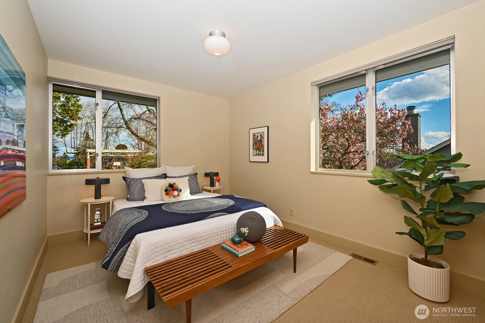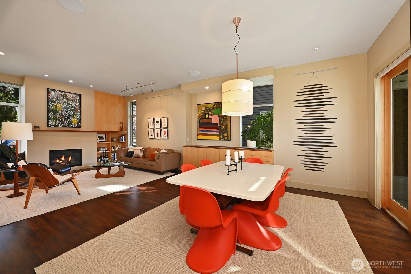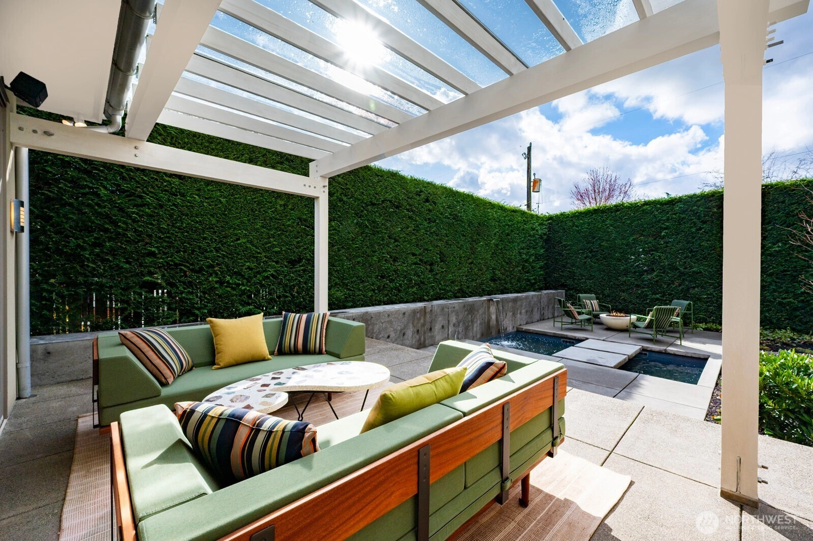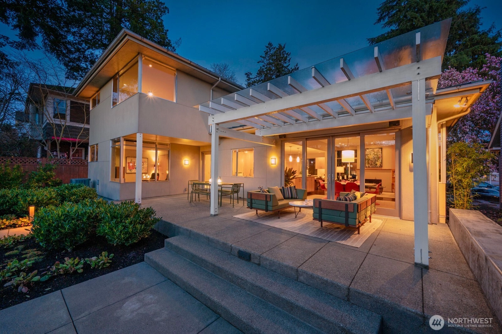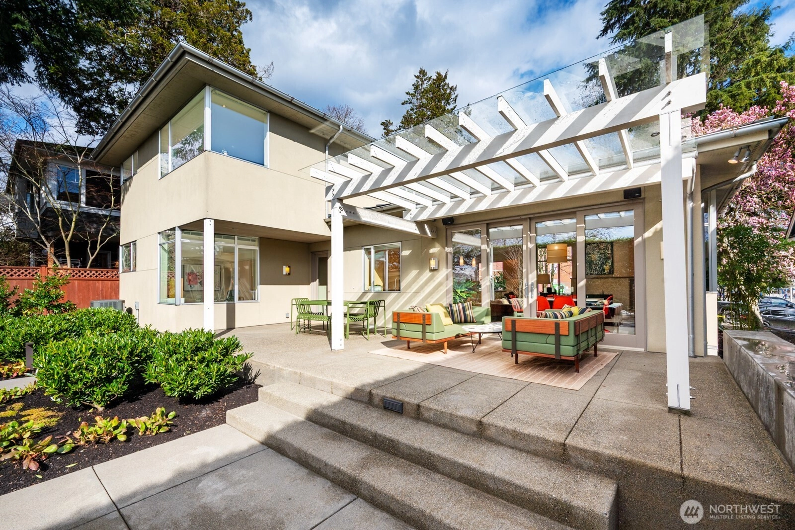 Where Form Meets Function — A Contemporary Architectural Masterpiece. Step inside a sculptural home that feels both modern and timeless—clean-lined rectangles nestled gently into the landscape, framed by the serene vision of Alchemie landscape architects. Designed for urban art lovers, this residence balances design intensity with everyday simplicity. Every window is a curated frame, revealing finely composed vistas—the Olympic Mountains, downtown Seattle, and gardens that double as living art. The exterior’s metal roof crowns a composition of meticulous materials and flawless proportions. Inside, high-style architecture meets livable warmth: spaces flow effortlessly, sized with the Goldilocks precision of “not too big, not too small.” The open kitchen anchors the home as a stage for gathering—where the chef becomes master of ceremonies. Entertain large groups or intimate friends with seamless movement between indoor and outdoor living. Beyond glass walls, a covered patio looks over a striking reflection pool—more sculpture than fountain—bridged by a graceful walkway. The surrounding serenity garden completes the tableau of calm. Upstairs, three bedrooms express understated elegance, including a primary suite offering views that stretch from the city skyline to the distant Olympics. Thoughtful details allow for aging in place and welcoming extended living, ensuring the home evolves as gracefully as its design.