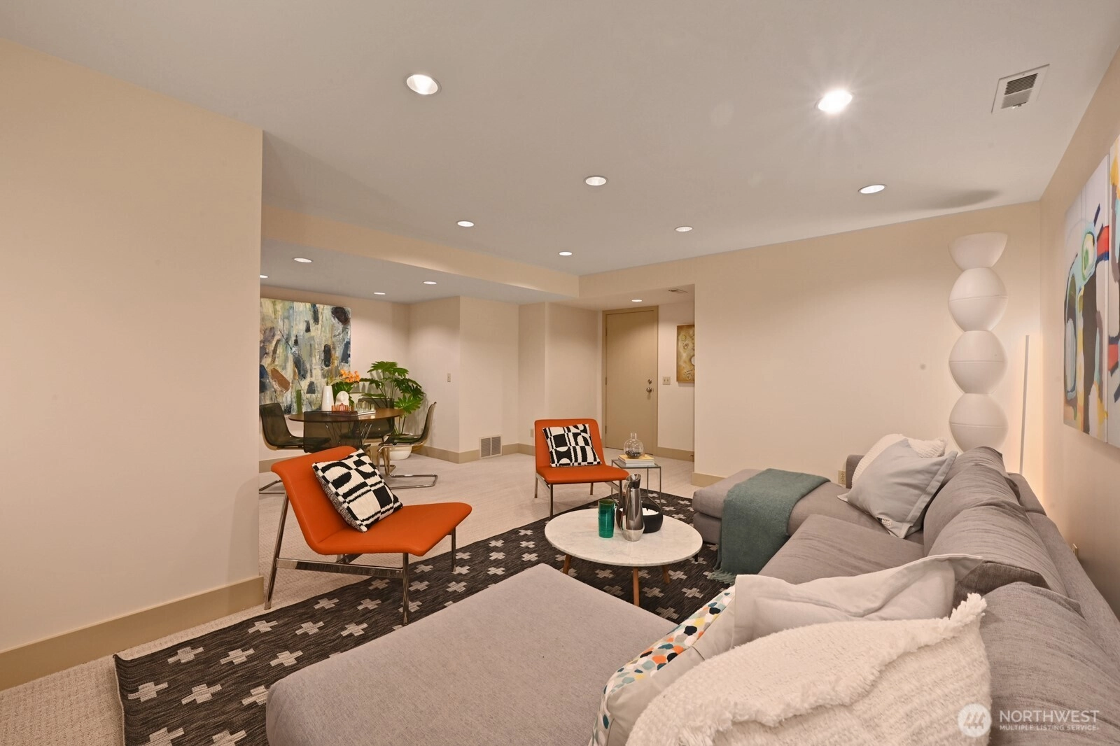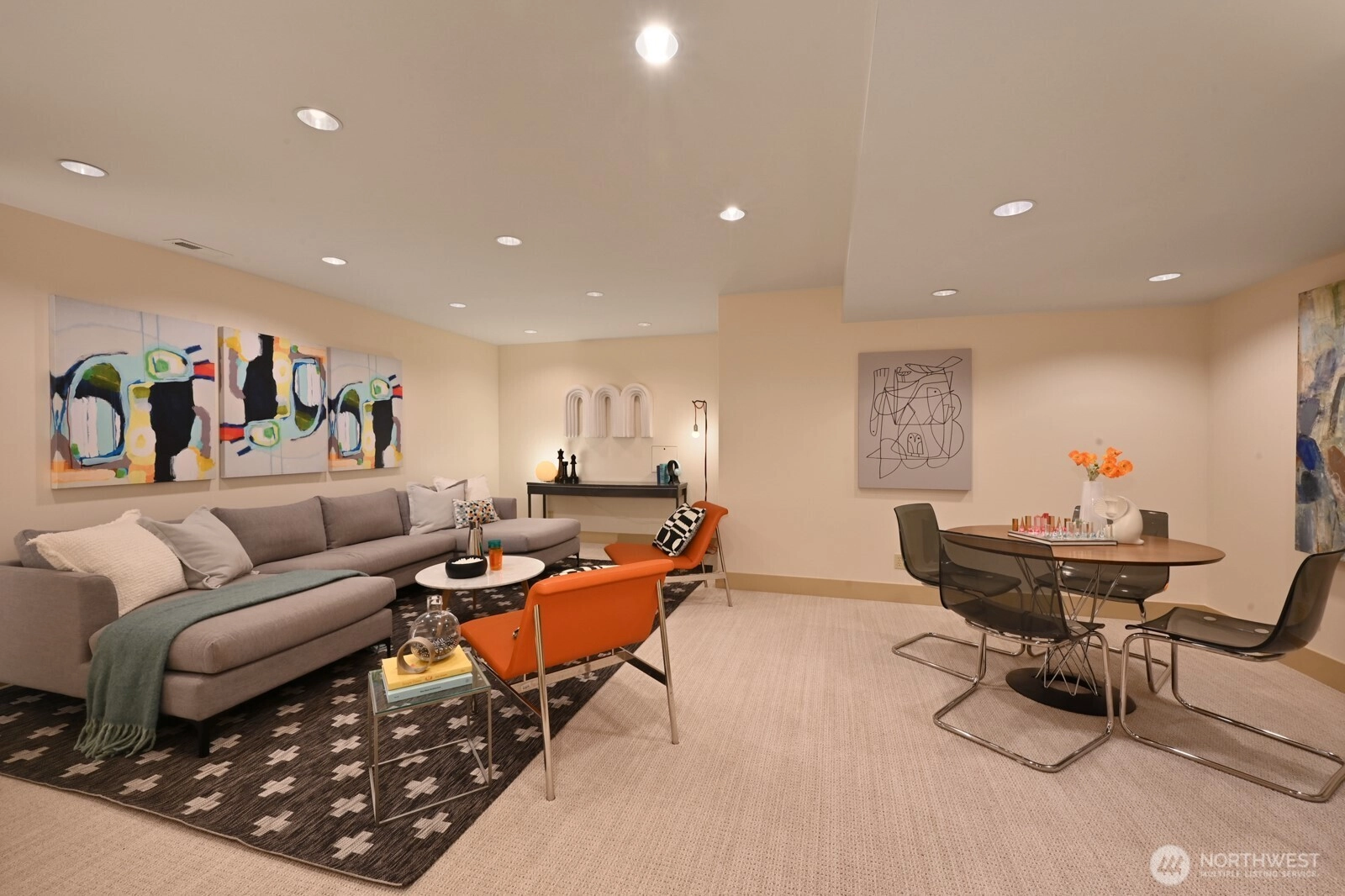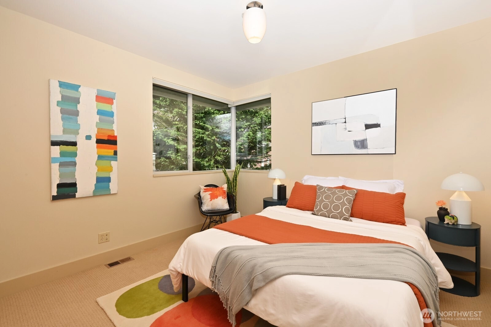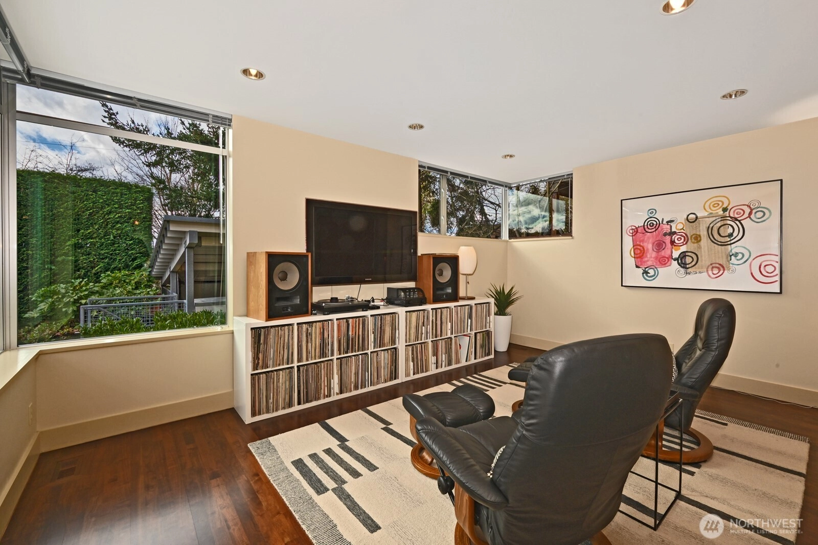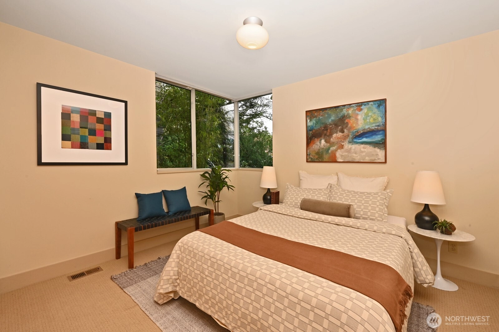 Where Form Meets Function — A Contemporary Architectural Masterpiece. Step inside a sculptural home that feels both modern and timeless—clean-lined rectangles nestled gently into the landscape, framed by the serene vision of Alchemie landscape architects. Designed for urban art lovers, this residence balances design intensity with everyday simplicity. Every window is a curated frame, revealing finely composed vistas—the Olympic Mountains, downtown Seattle, and gardens that double as living art. The exterior’s metal roof crowns a composition of meticulous materials and flawless proportions. Inside, high-style architecture meets livable warmth: spaces flow effortlessly, sized with the Goldilocks precision of “not too big, not too small.” The open kitchen anchors the home as a stage for gathering—where the chef becomes master of ceremonies. Entertain large groups or intimate friends with seamless movement between indoor and outdoor living. Beyond glass walls, a covered patio looks over a striking reflection pool—more sculpture than fountain—bridged by a graceful walkway. The surrounding serenity garden completes the tableau of calm. Upstairs, three bedrooms express understated elegance, including a primary suite offering views that stretch from the city skyline to the distant Olympics. Thoughtful details allow for aging in place and welcoming extended living, ensuring the home evolves as gracefully as its design.