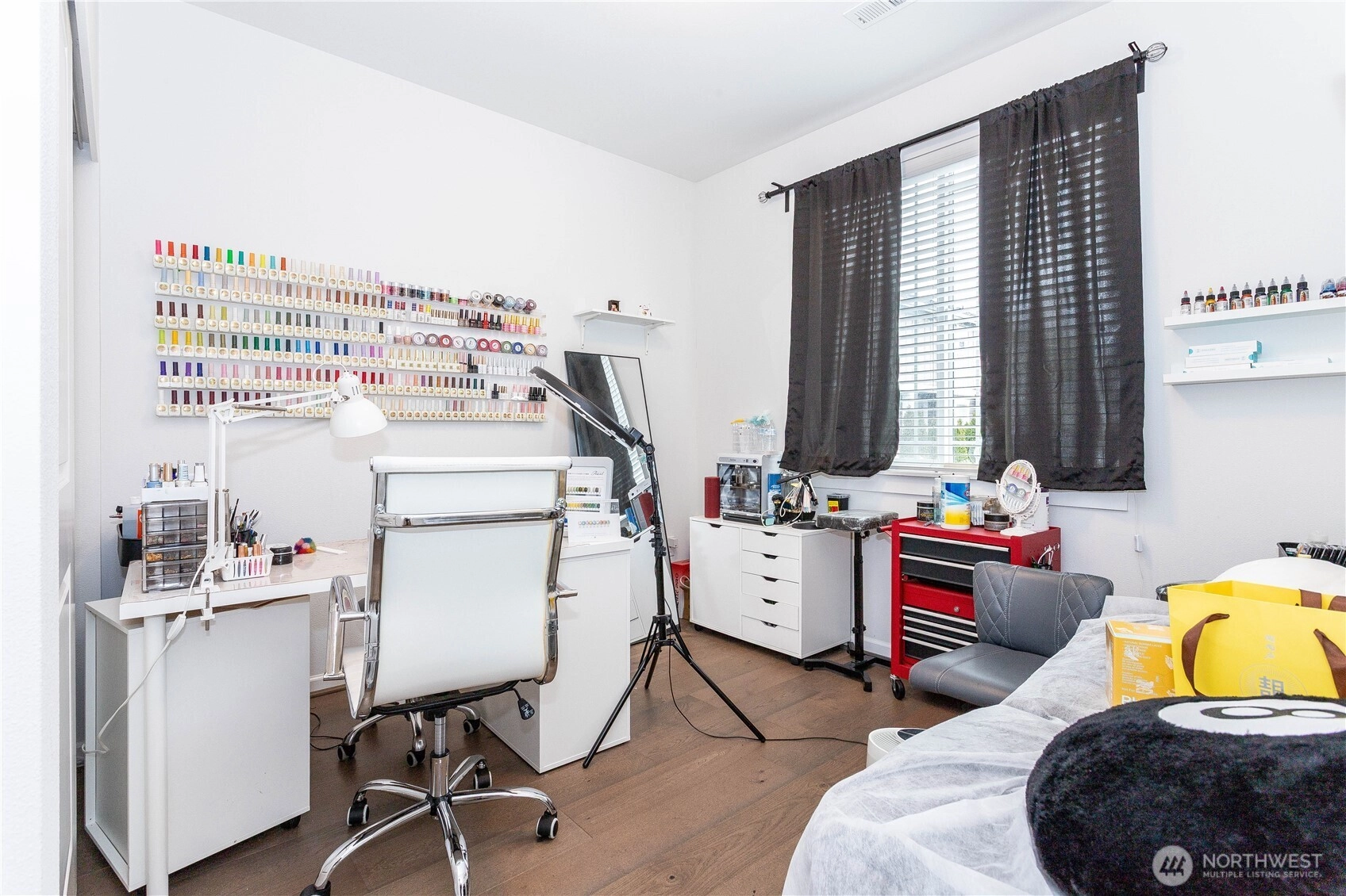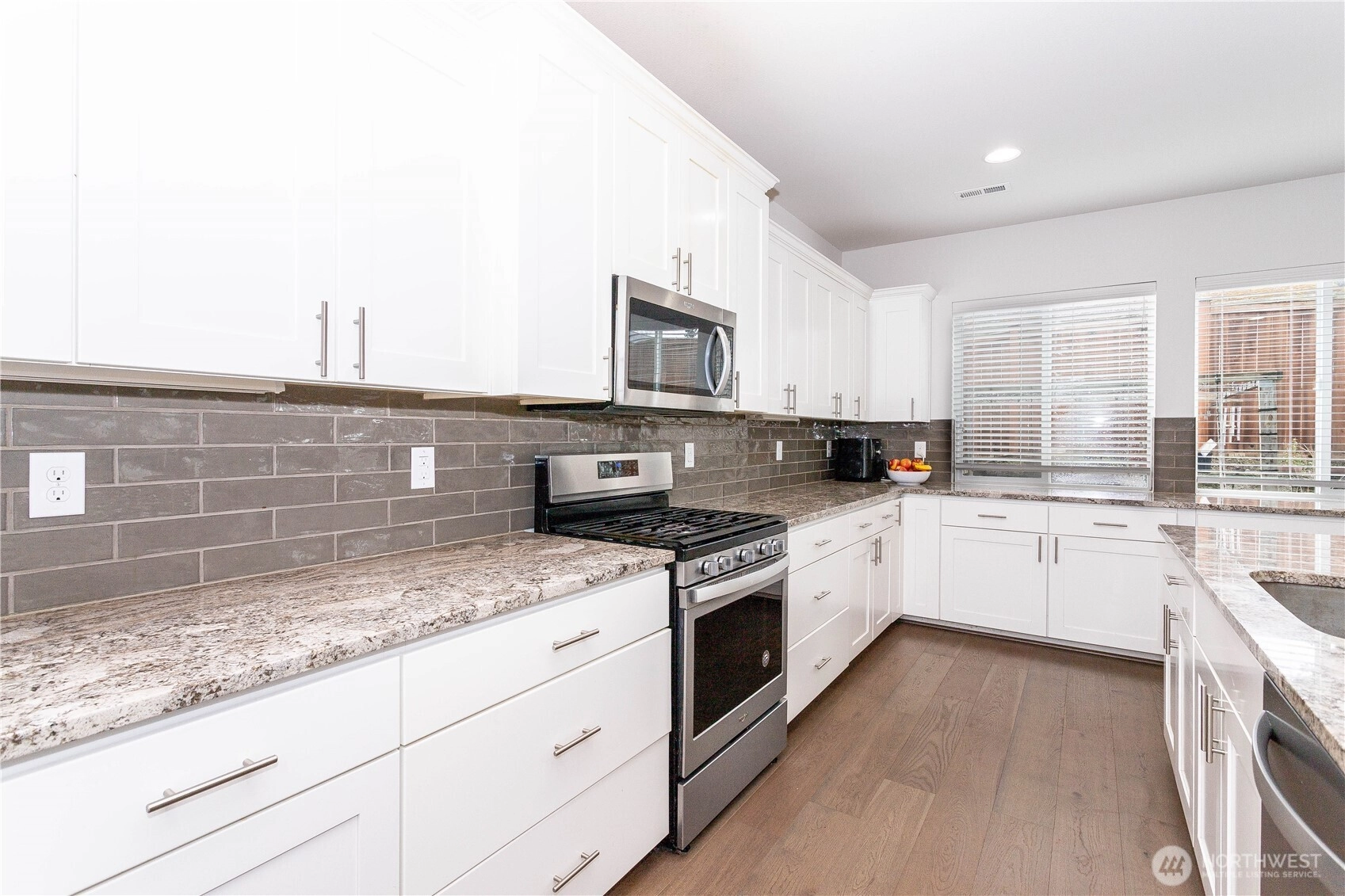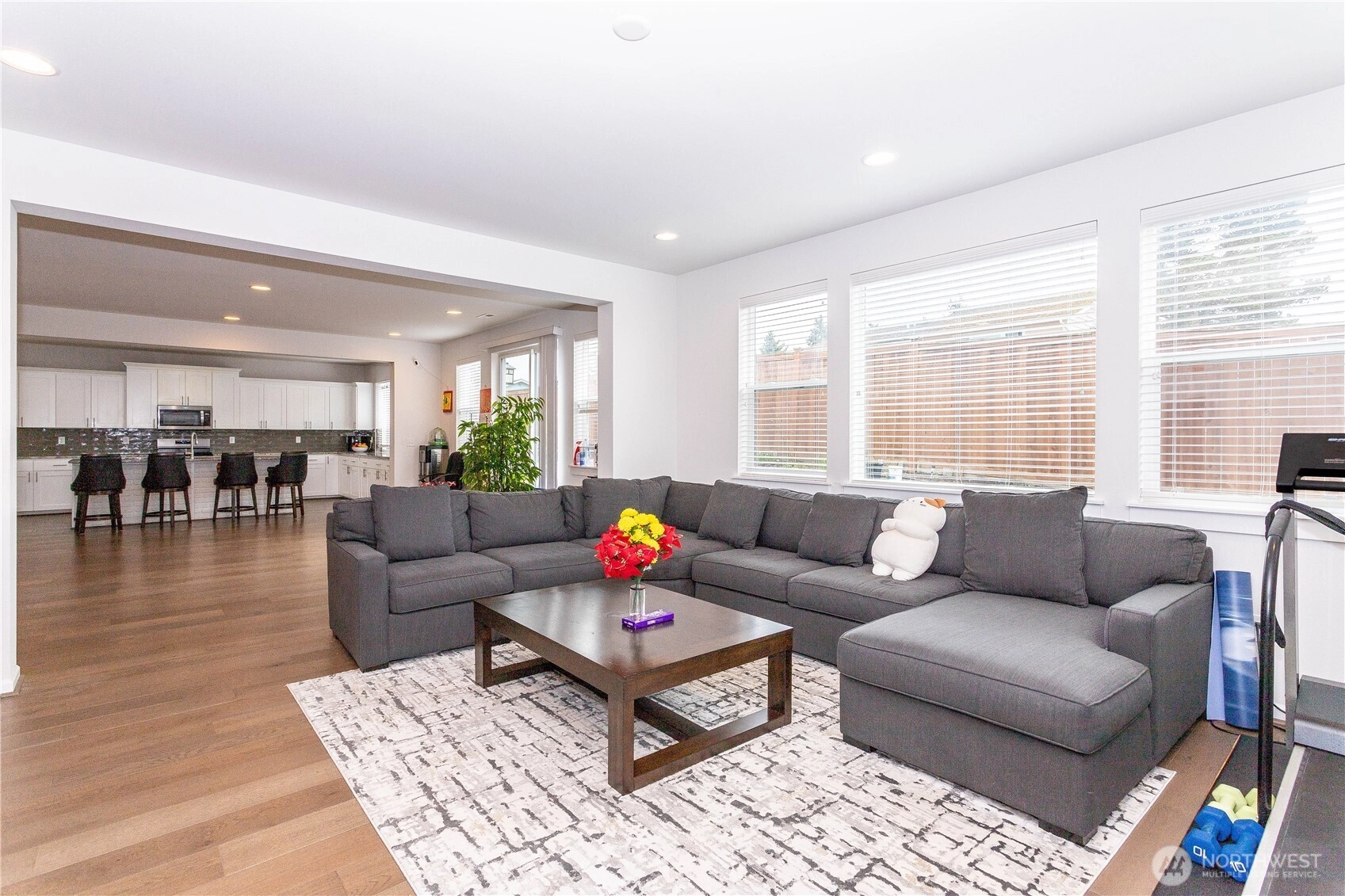 Beautifully built in 2019 and meticulously maintained, this stunning 3,160 sq. ft. home offers 5 bedrooms and 2.75 bathrooms, tucked away in a quiet cul-de-sac within the sought-after Havenwood community. The main floor has beautiful molding, gleaming hardwood floors with a gourmet kitchen featuring stainless steel appliances, huge granite island, and a formal dining area—perfect for hosting guests. The inviting and open concept living room centers around a cozy gas fireplace, a guest bedroom and 3/4 bath for convenience while thoughtful upgrades include newer washer, dryer, refrigerator, dishwasher, blinds and much more. Upstairs, you’ll find a versatile loft space, generously sized bedrooms, and a well-appointed bathroom. The expansive primary suite offers a luxurious 5-piece en-suite bath and a walk-in closet with ample of space. Enjoy natural light throughout the home with large windows, along with a fully fenced, private backyard—ideal for relaxing and planting. A private neighborhood park and playground are nearby. The two-car garage provides ample storage and Ez access to the grand kitchen. Conveniently located just minutes from the Star Lake Light Rail Station and seamless access to I-5, Sea-Tac Airport, The Commons at Federal Way, Redondo Beach, as well as nearby schools, parks, trails and local dining. A wonderful opportunity to own a home that perfectly balances harmony and convenience—your own private sanctuary.