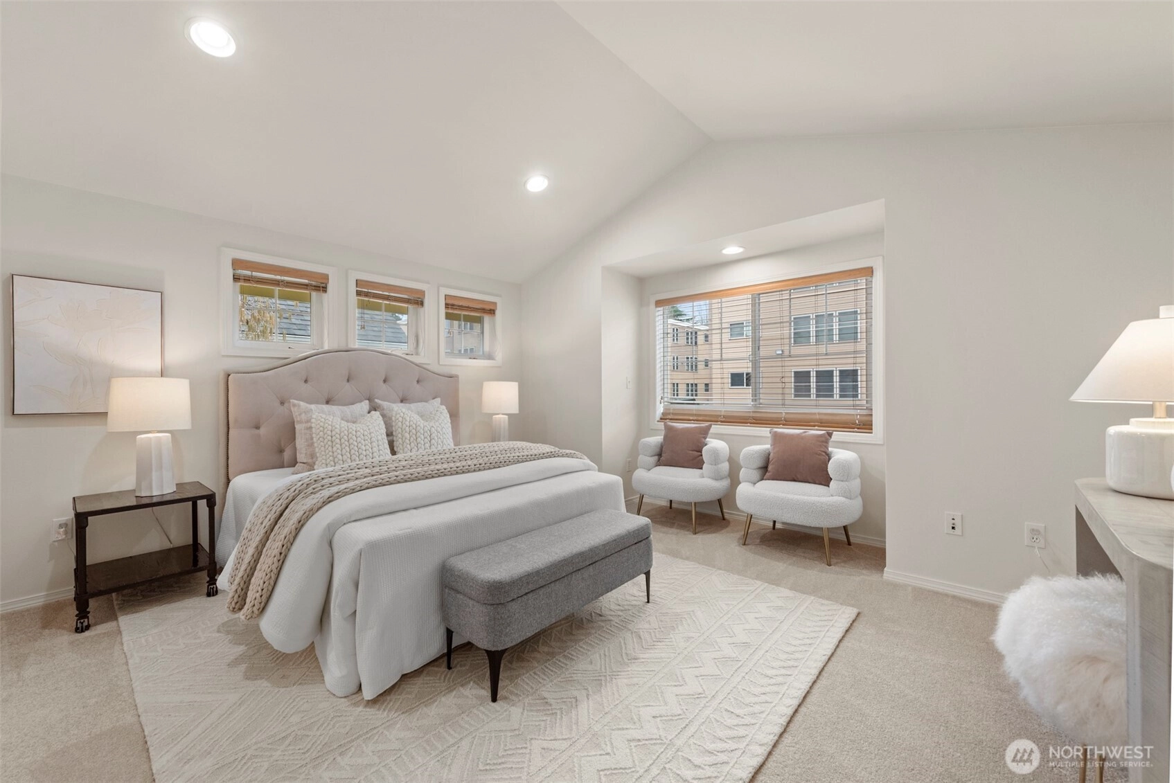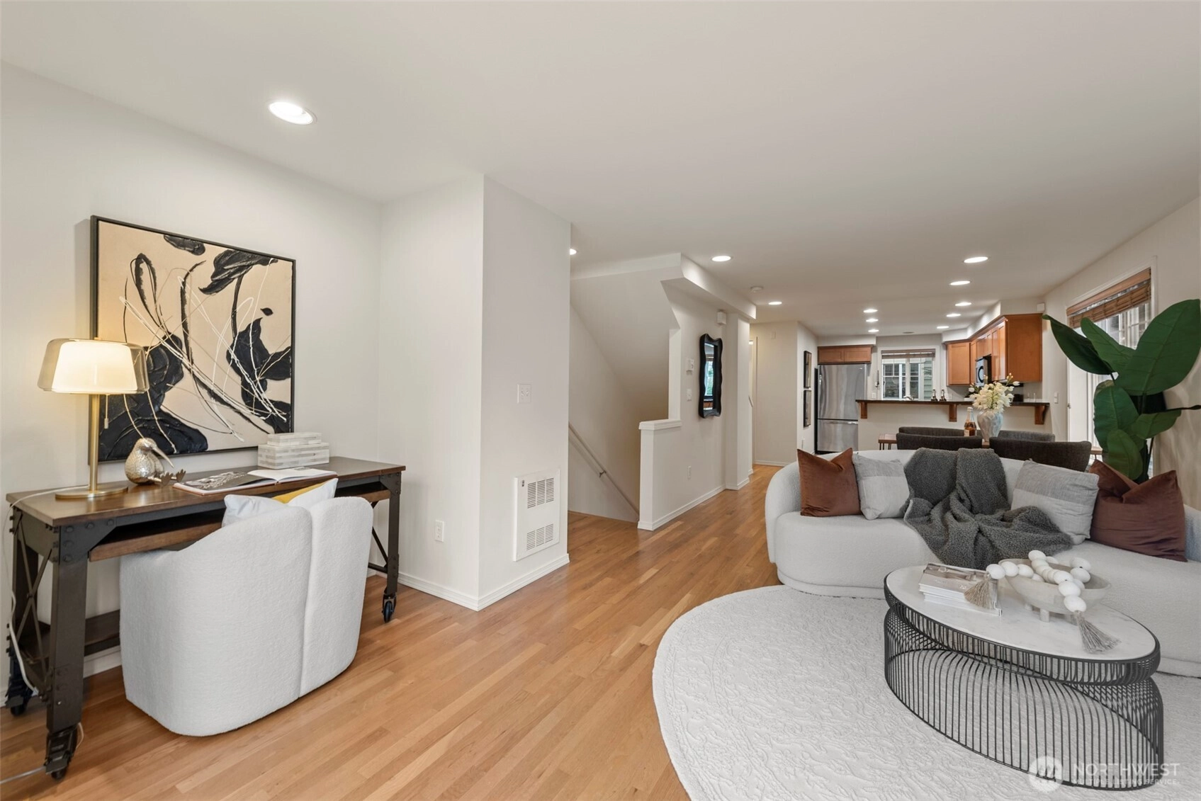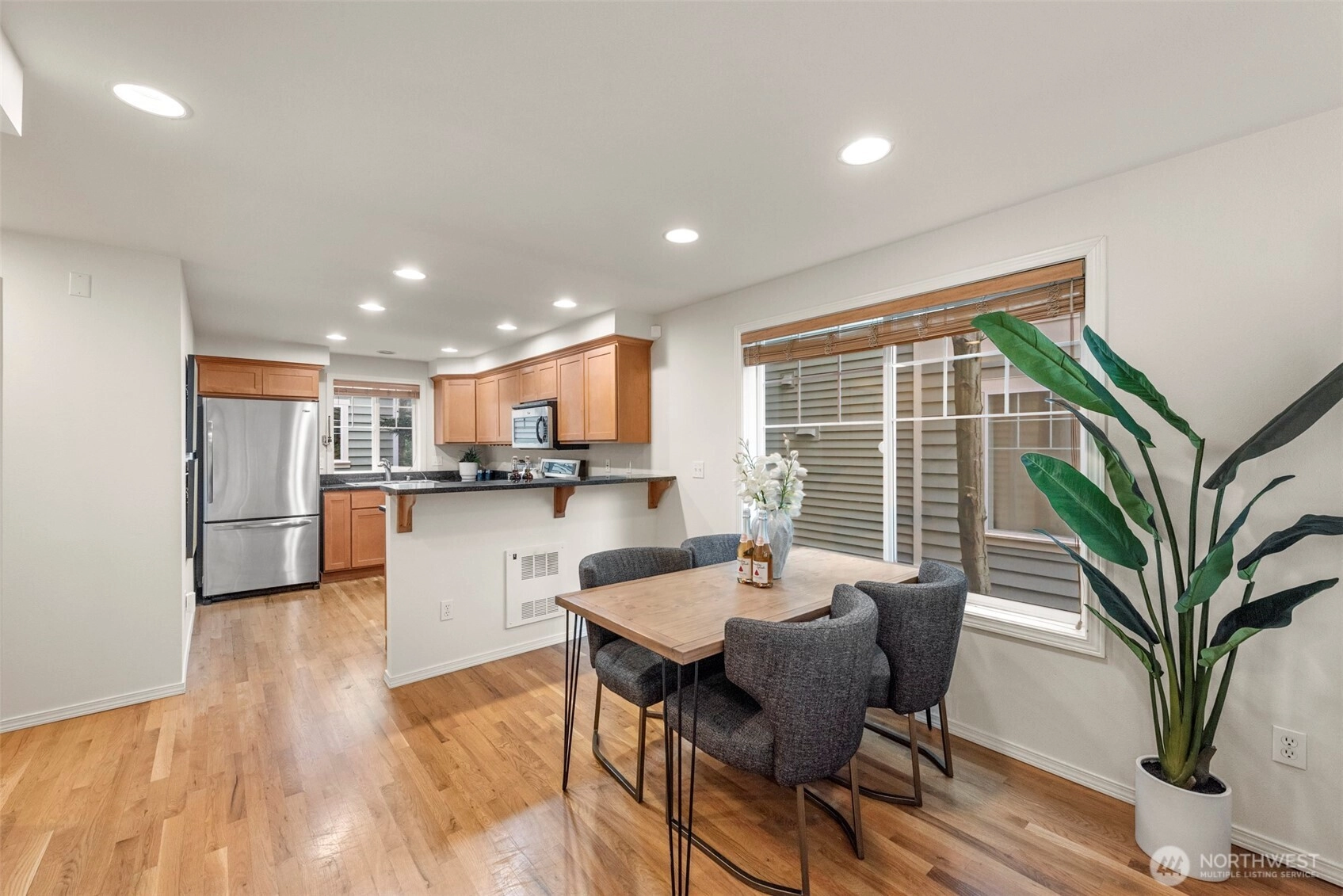 Well-located 3-bedroom townhome with an attached garage in a convenient North Seattle location. Close to Northgate, major transit options, and the future light rail, with easy access to I-5, downtown Seattle, and the University of Washington.This corner unit gets great natural light and offers a comfortable, easy-to-live-in layout. The main living area has a nice open feel, making it great for both everyday living and having friends over. Recent updates include fresh interior paint and new flooring, so it’s truly move-in ready.Upstairs, the primary suite features vaulted ceilings with skylights, a private bathroom, and a walk-in closet. The additional bedrooms work well for guests, a home office, or whatever fits your needs.The home also features a fully fenced patio with terraced garden space—perfect for relaxing, gardening, or setting up a cozy outdoor seating area. A great combination of location, natural light, and practical living space.