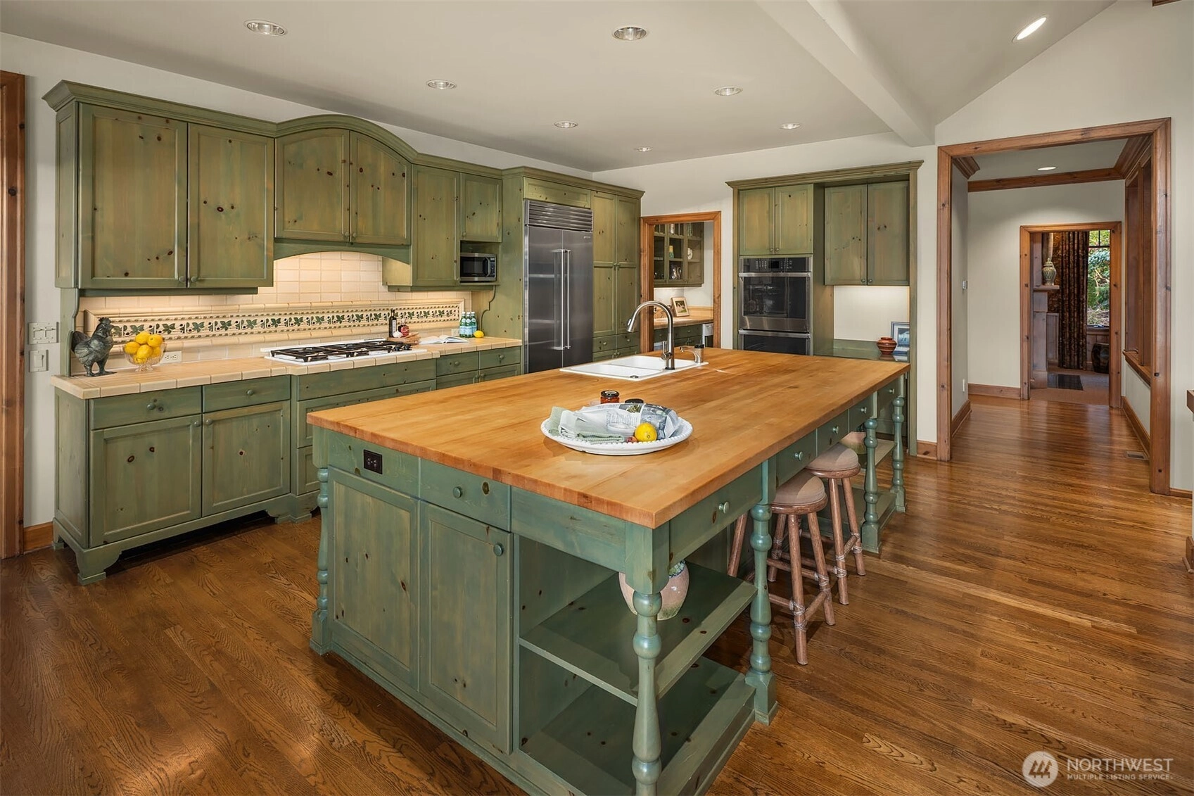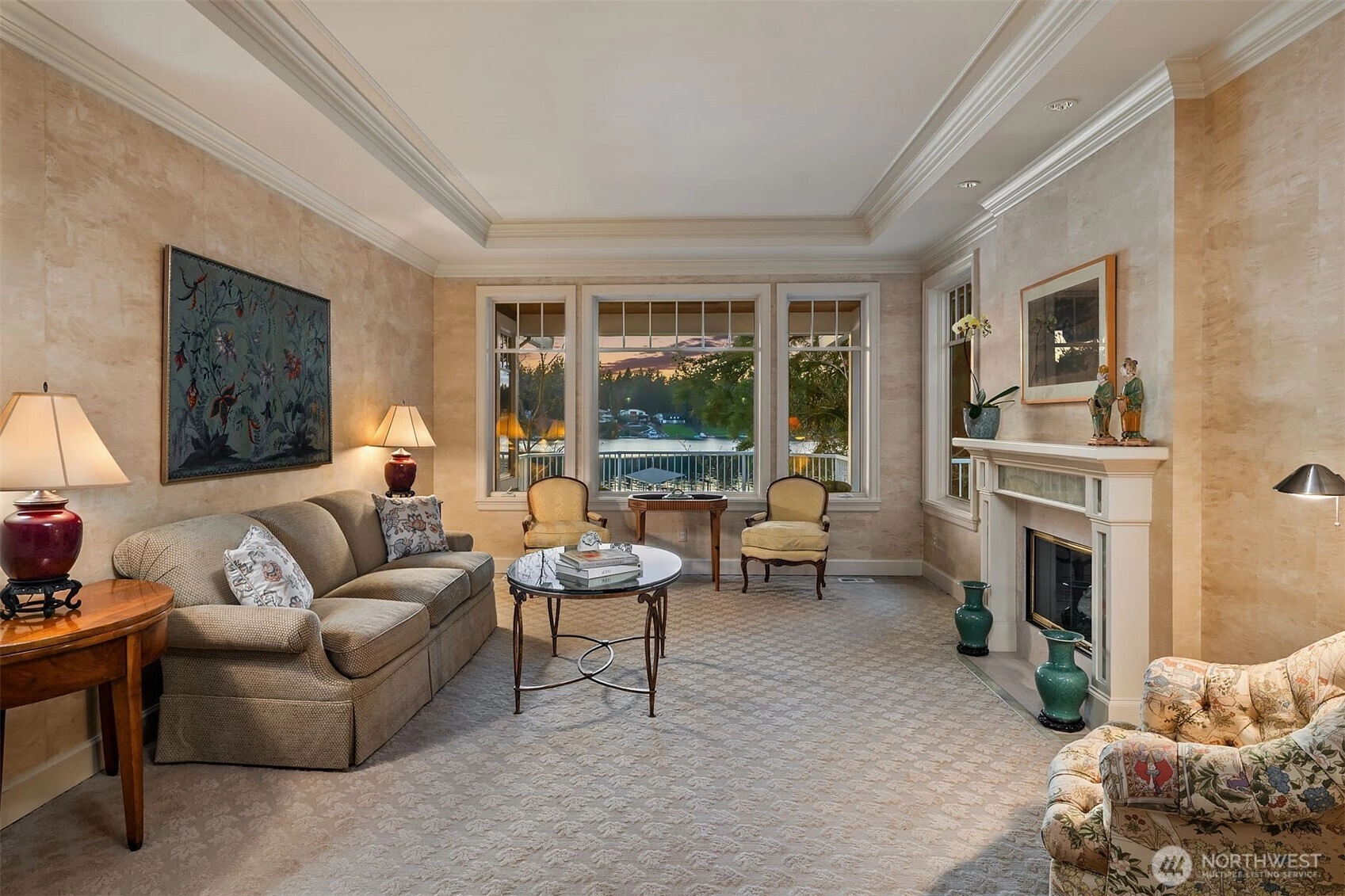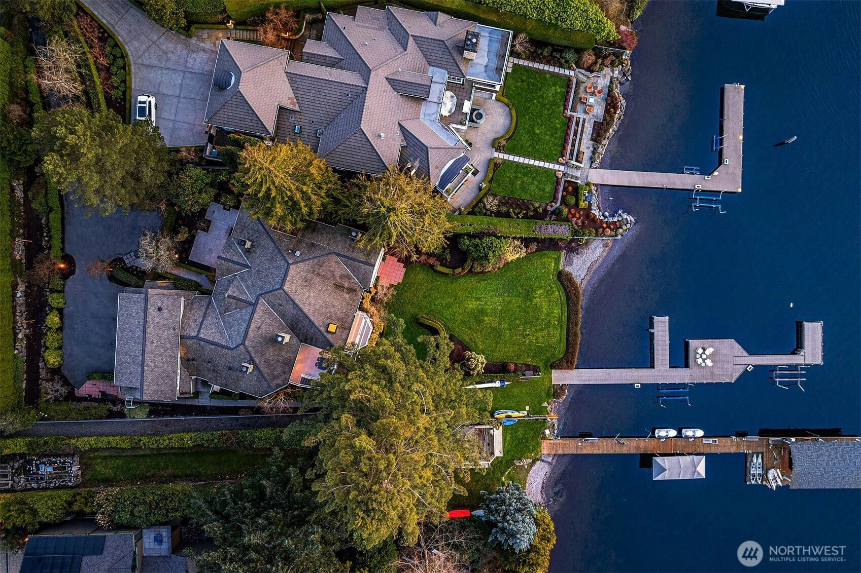 Coveted west-facing waterfront in sought after Yarrow Point! An exceptional Paul Saad custom home built with high quality materials and craftsmanship. A timeless design featuring distinctive Northwest artists details that add warmth and character throughout. Excellent floorplan with seamless indoor-outdoor living. Gracious living and dining rooms. Wonderful epicurean kitchen with striking butcher block island & custom cabinetry complemented by a generous dining area that flows seamlessly into the dramatic family room with river rock fireplace. Expansive windows showcase the views from almost every room. A wonderful office with warm wood accents, a gas fireplace, built in desk and shelving. Beautiful main floor primary suite with custom built-ins, gas fireplace and spacious 5-piece bath. French doors lead to the expansive view deck. Huge lower level with recreation room with beer tap, Sub-zero and custom cabinetry. Another flexible space provides endless possibilities for games, entertaining, hobbies, and everyday living. Spacious 1,100+ bottle wine cellar. Above the 3 car garage, is a versatile space featuring a bedroom, bathroom, kitchen, and family room. Perfect for guests, offering privacy, comfort and a peek a boo view of the lake. Beautifully manicured gardens. A rare opportunity to experience Northwest living at its finest.