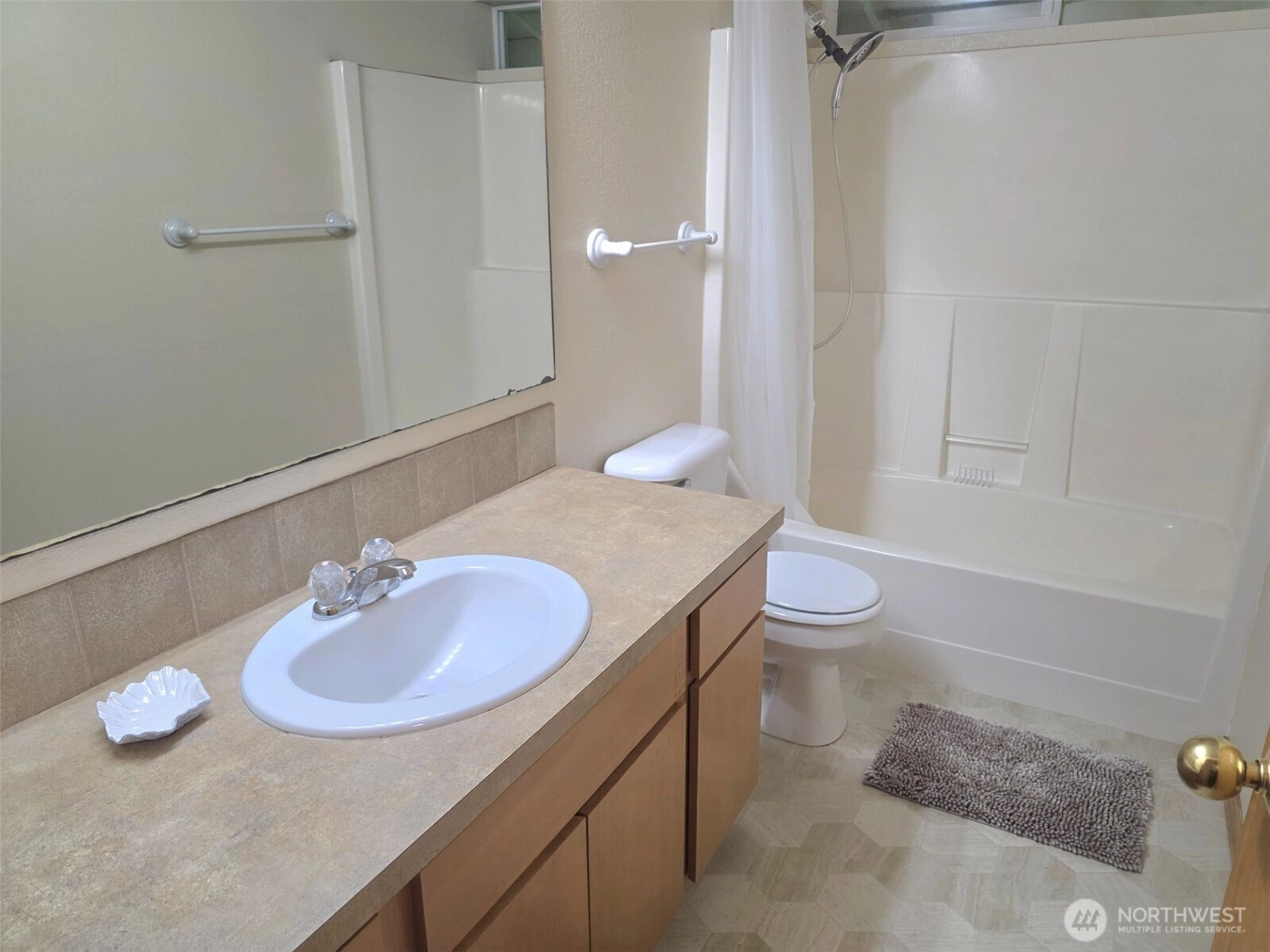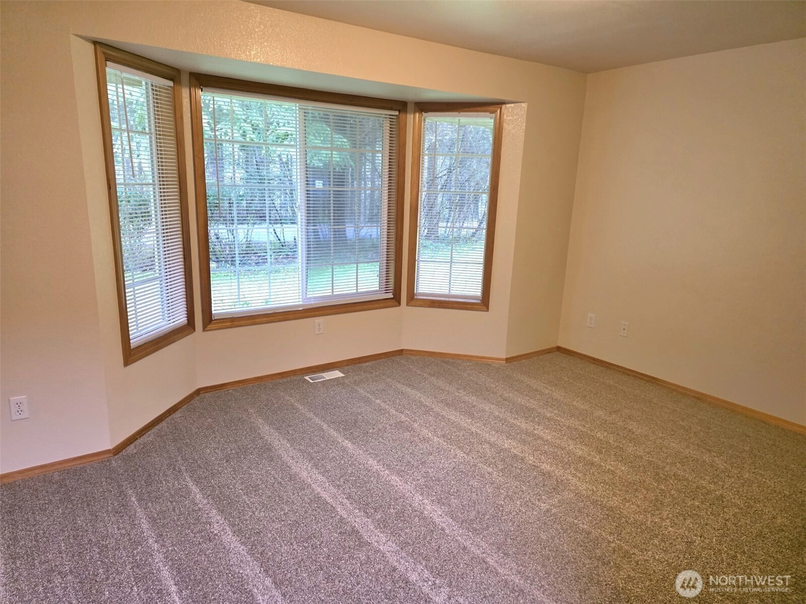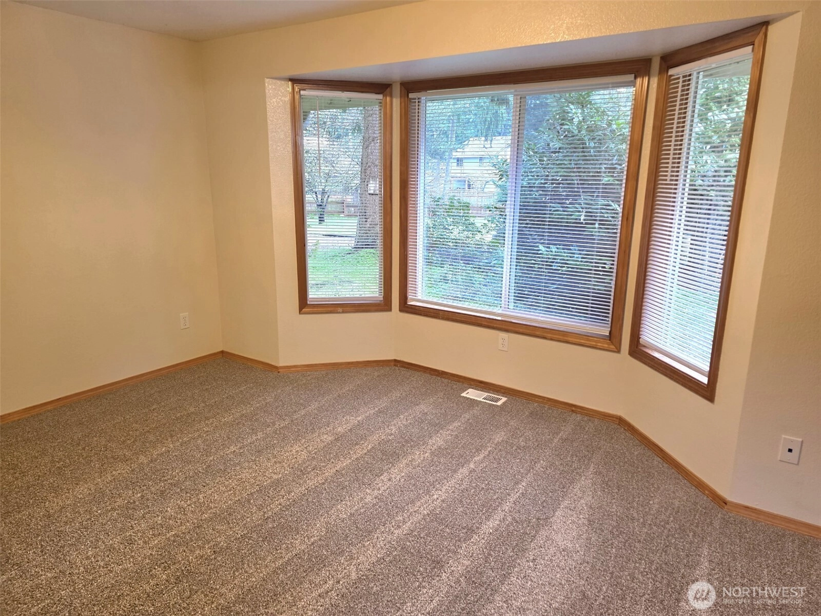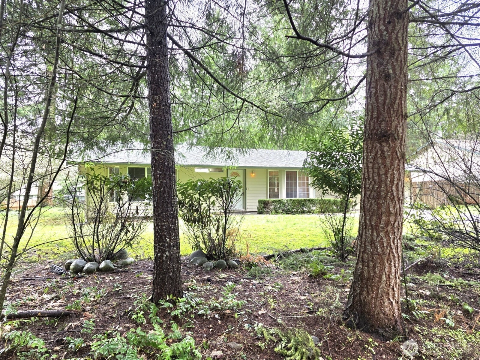 Charming rambler !! This pristine home has a nice, open floor plan with vaulting ceilings that bring in lots of natural light. Central eating area off the kitchen with walk out to patio and a wonderful fenced yard. Living room and main bedrooms have bay windows. House has fresh paint, new laminate floors and carpet, a new fridge and a brand new roof. At the corner of a small cul de sac, this house has an extra large lot, graced with tall firs. All appliances included make this home move in ready! Enjoy all the amenities and natural beauty of Clearwood- the lakes, trails, fishing, boating, beaches, the pool and more. Show with confidence.