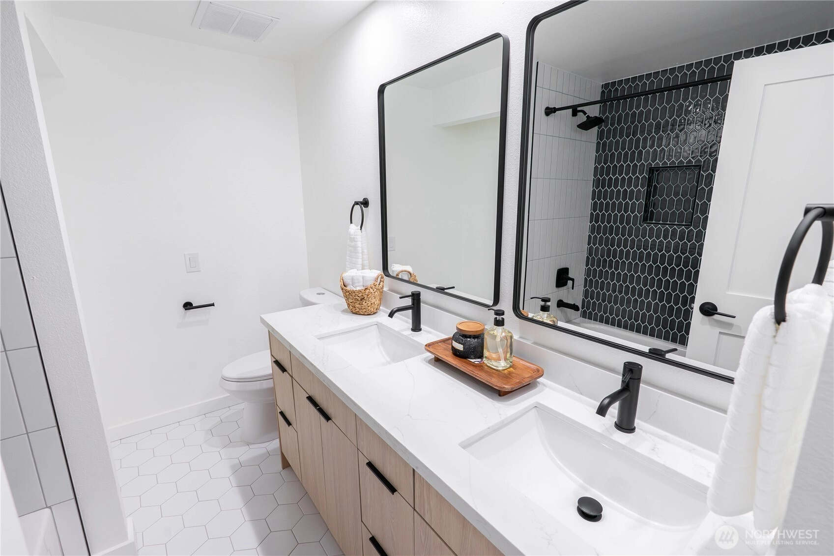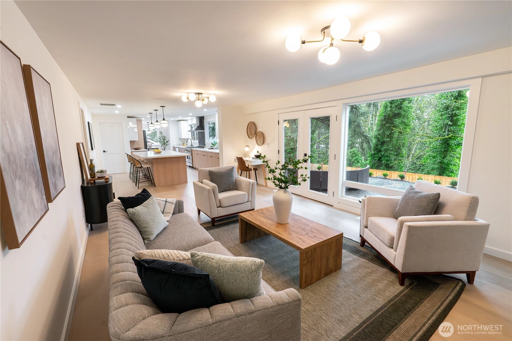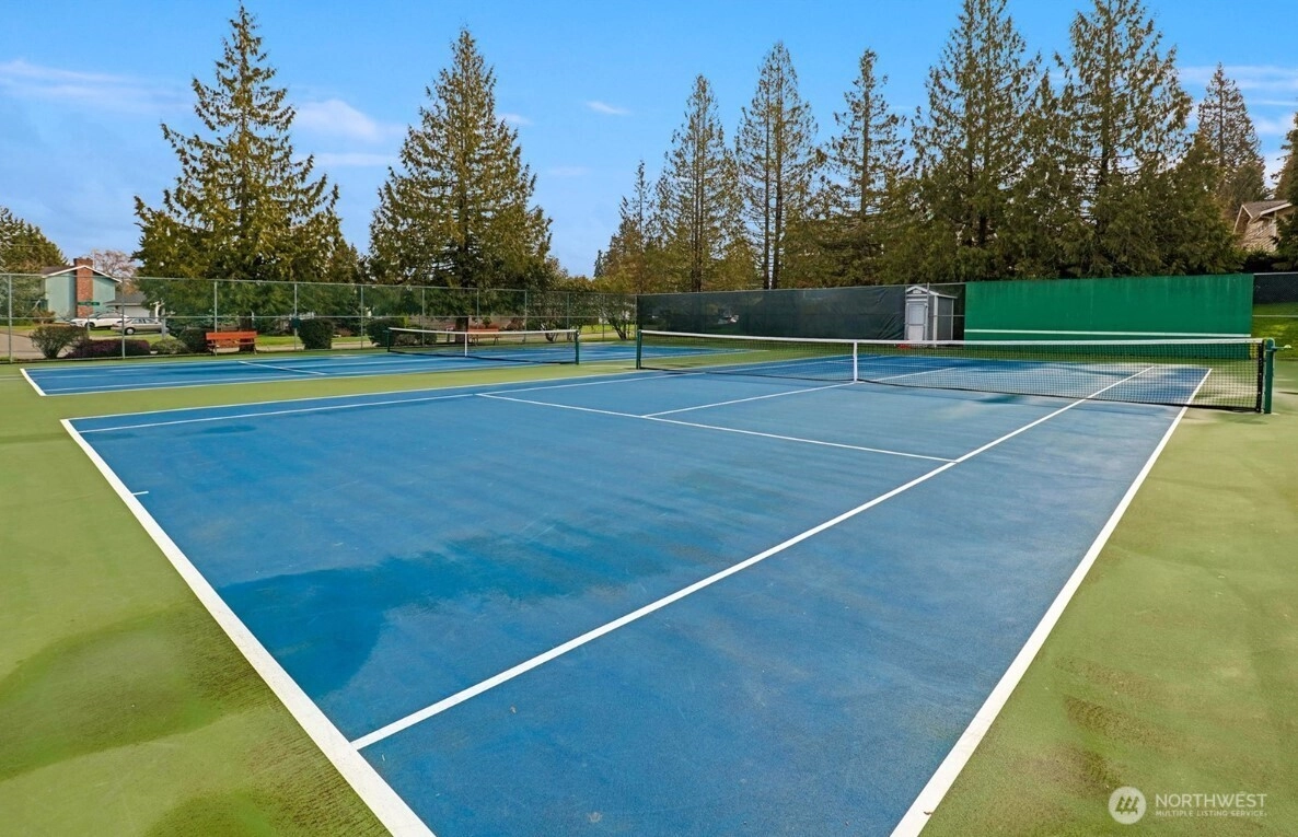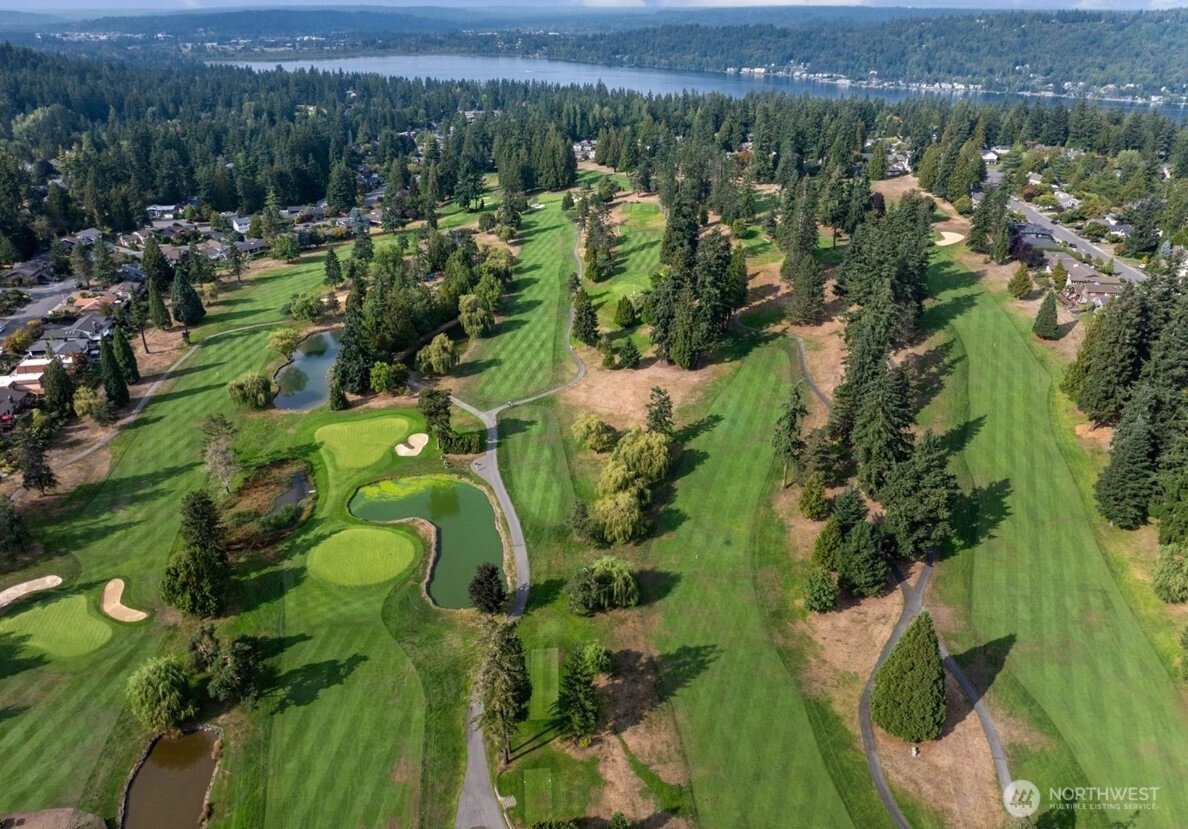 A unique opportunity to own a beautifully updated home in Bellevue's sought after Tam o'Shanter Golf & Country Club. Located on a quiet cul-de-sac and backing up to a greenbelt, this peaceful setting offers privacy and a wonderful Lake Sammamish & Cascade Mountain view. The home is lovely, featuring double primary suites, generous bedroom and office spaces, and lots of room for guests. The stunning, spacious kitchen is a chef's or host's dream, centered seamlessly between living, dining and family rooms. Enjoy beautiful new flooring, windows, doors, lighting and so much more. The main primary suite is huge, with a gorgeous 5-piece bath and walk-in closet featuring 2nd washer/dryer setup. The private, fully fenced backyard is perfect for BBQ, campfire and relaxation. Finally, the private Tam o'Shanter HOA perks include unlimited golf access, a clubhouse with restaurant, pool, tennis/pickleball courts, playground and pro shop. The home, the setting, the club, the location...this may be the opportunity you've been waiting for. Don't wait, come visit today.