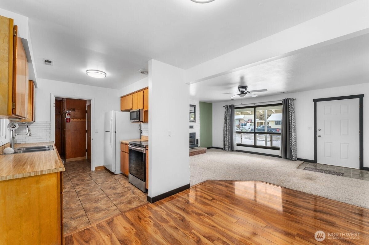 Updated one-level home in a quiet neighborhood minutes from Wenatchee’s year-round outdoor recreation including hiking, riverfront trails, and nearby skiing. This 3-bedroom, 1.5-bath home features fresh interior paint, updated lighting, a remodeled main bathroom, new attic insulation, new electrical panel, new dishwasher & kitchen backsplash for a modern touch.The living room is filled with natural light from a large picture window and anchored by a cozy fireplace w/ insert. Step outside to a covered patio and fenced backyard with irrigation and sprinkler system, offering plenty of space to relax or entertain. Functional one-level living with a utility room and built-in storage in a convenient location.