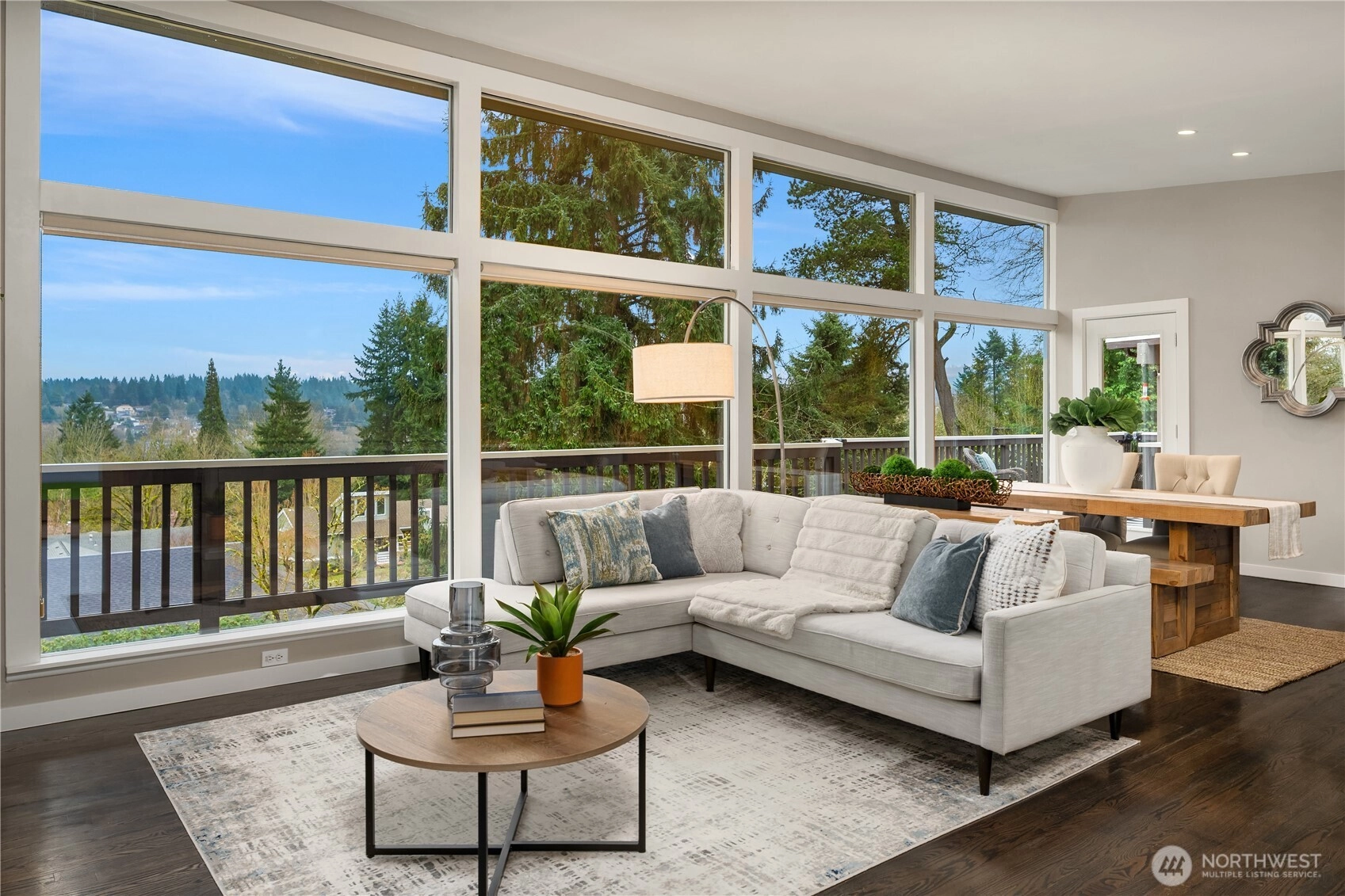 Set in the highly sought-after Woodridge community, this very well-maintained and updated mid-century home blends timeless character with thoughtful modern updates. Featuring 5 bedrooms and 2.5 baths, the home offers flexible living with a layout designed for both comfort and functionality. A beautiful kitchen remodel serves as the heart of the home, seamlessly connecting to light-filled great room with floor to ceiling windows that create an inviting atmosphere for everyday living and entertaining. Clean lines and a modern touch complement the home’s mid-century roots. Situated on a beautifully maintained terraced lot, the property captures territorial, sunrise and mountain views, offering a peaceful outdoor setting to relax or gather. Enjoy being part of a close-knit neighborhood known for its strong sense of community and year-round events. Located just around the corner from the Woodridge Swim Club, with nearby parks, trails, and easy access to downtown Bellevue, this home combines lifestyle, location, and livability. Positioned within the top-rated Bellevue School District.