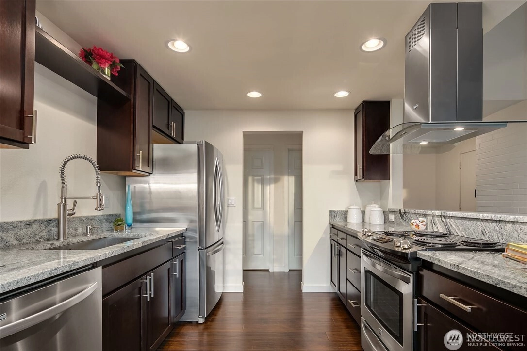 Great entry into homeownership, a rare two-bedroom, top-floor condo in Heatherstone with vaulted ceilings and a spacious balcony, move-in ready for a first home. Well-located condo in a sought-after community. Fresh paint from ceilings to walls; 2 bedrooms with walk-in closets; an open kitchen with granite countertops; a spacious living room; 2 baths; a large utility room; and a storage space. assigned parking and ample visitor parking for guests. Great amenities, outdoor swimming pool, exercise room, and clubhouse. The HOA covers utility and common-area maintenance. Walking distance to Crossroads Mall, minutes drive to DT Bellevue, Microsoft, and freeways I-90 and I-405. Sought-after Bellevue schools
