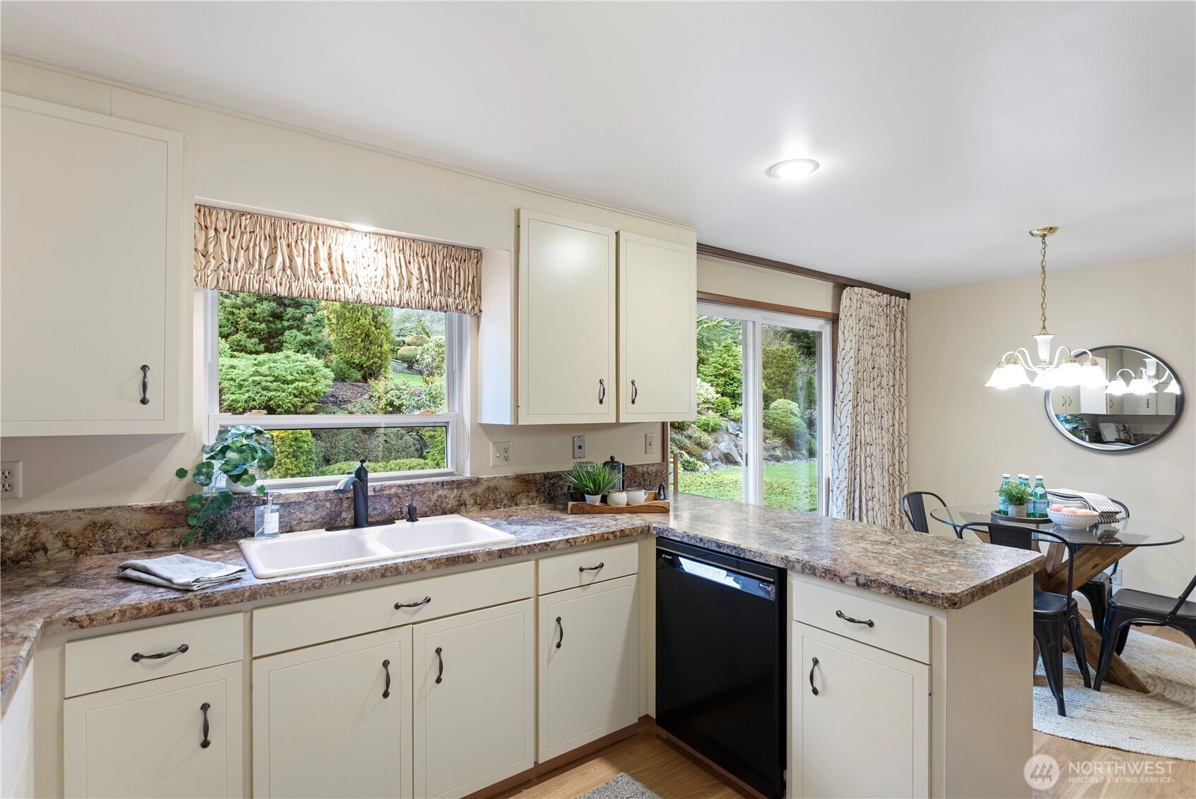 Nestled on a peaceful and quiet cul-de-sac in Lake Forest Park. A meticulously maintained and timeless mid-century classic blends elegance with natural beauty. This 5 bedroom, 2.25 bathroom is anchored by a big living room. You can sit at the huge window with built-in seat that bathes the interior in sunlight and frames views of the mature gardens. Dining room with views of the stunning backyard. Kitchen with effortless indoor-outdoor flow.  A primary suite featuring a walk-in closet and views of the backyard. Central air conditioning! Hardwood flooring under carpet. The landscaping offers a level of tranquility and privacy that is very special. Whether you’re hosting summer parties or enjoying a quiet morning coffee surrounded by greenery, this home celebrates a Northwest lifestyle. A massive 700 sf garage and adjacent flat RV parking are also a huge plus. Sellers purchased this home when it was brand new-it is a one owner home. Come home, feel comfortable and relaxed in your beautiful oasis!