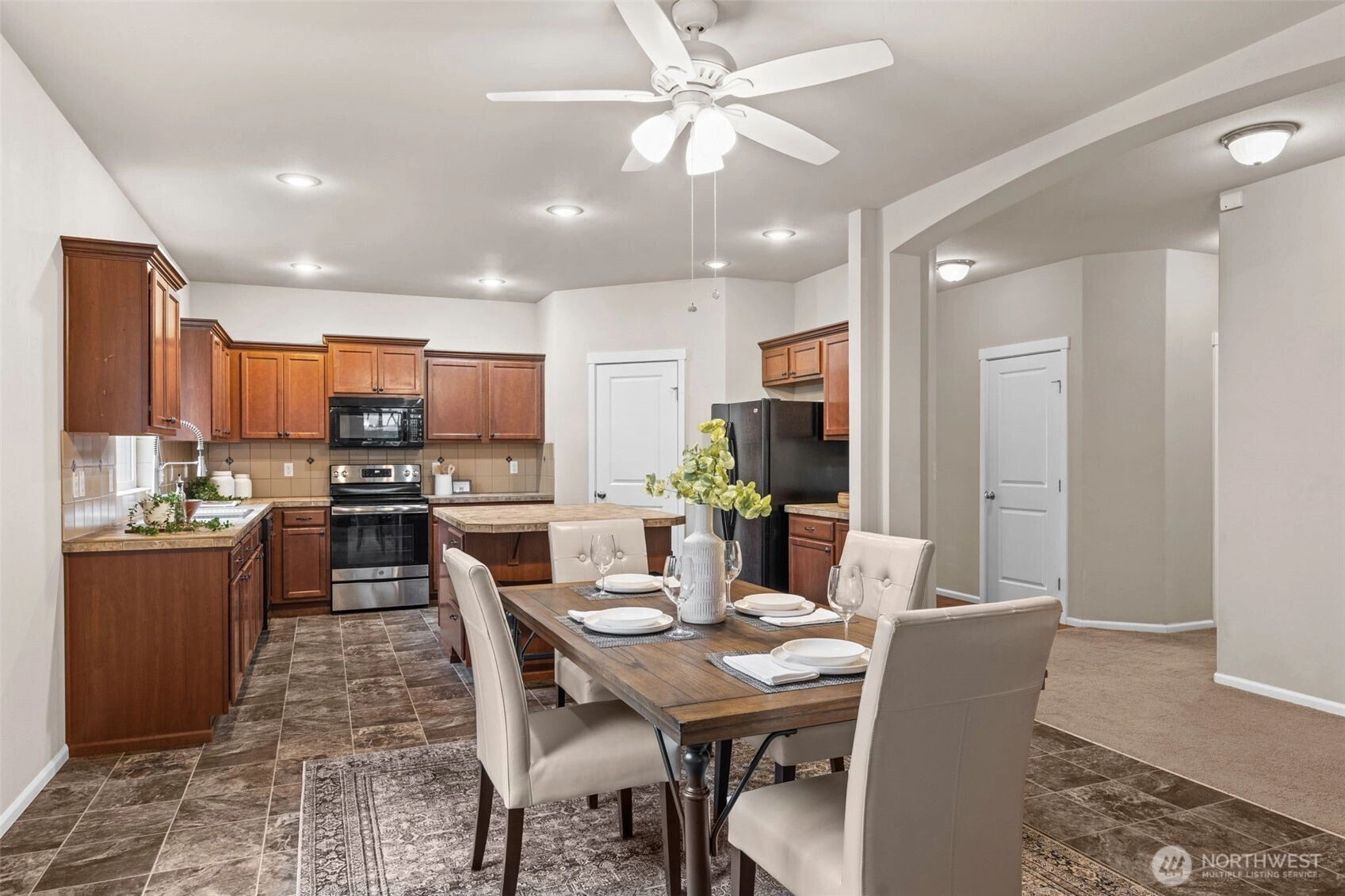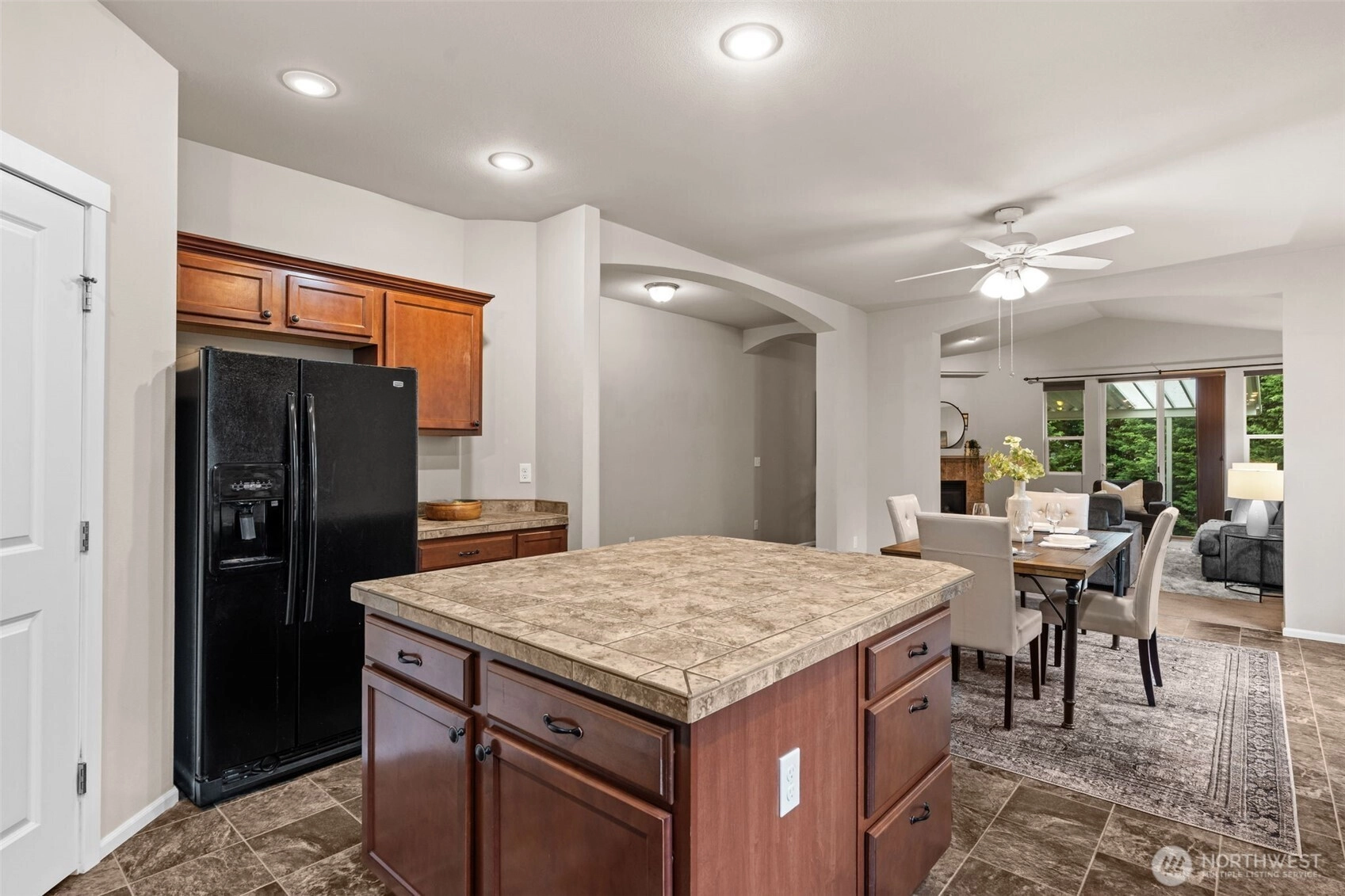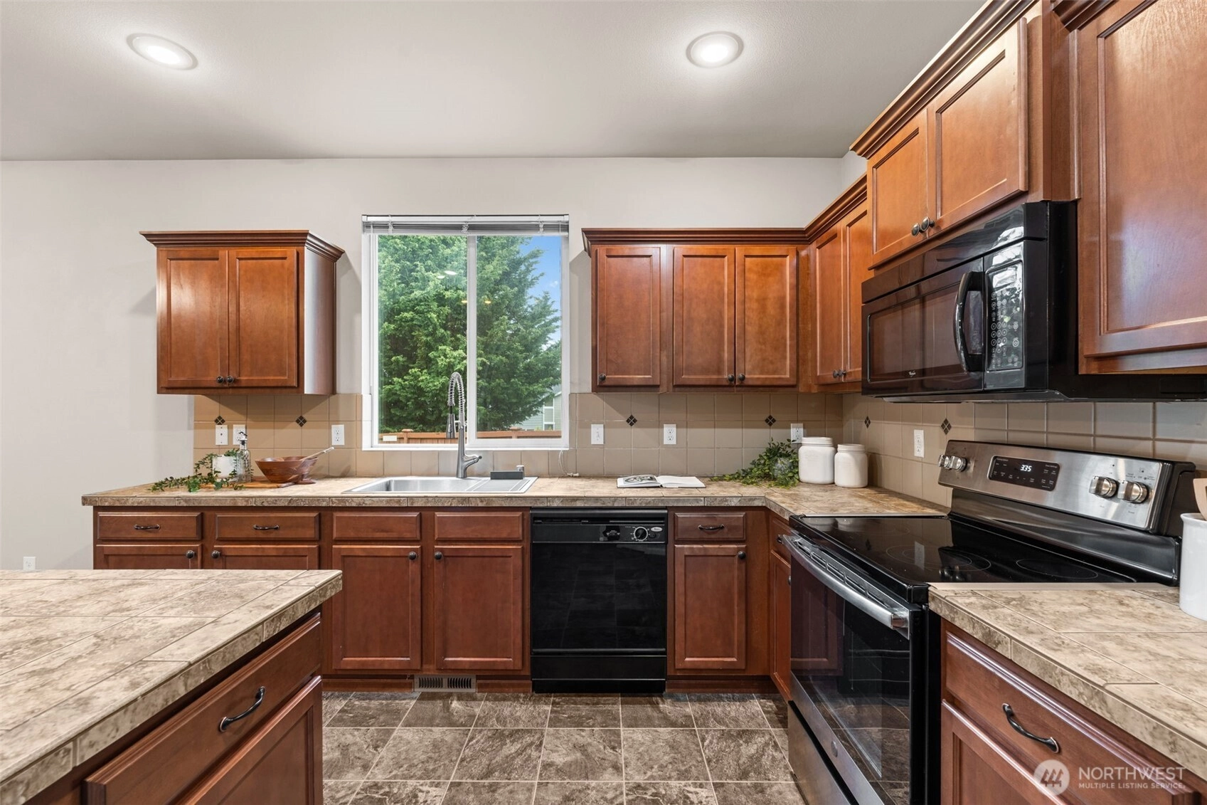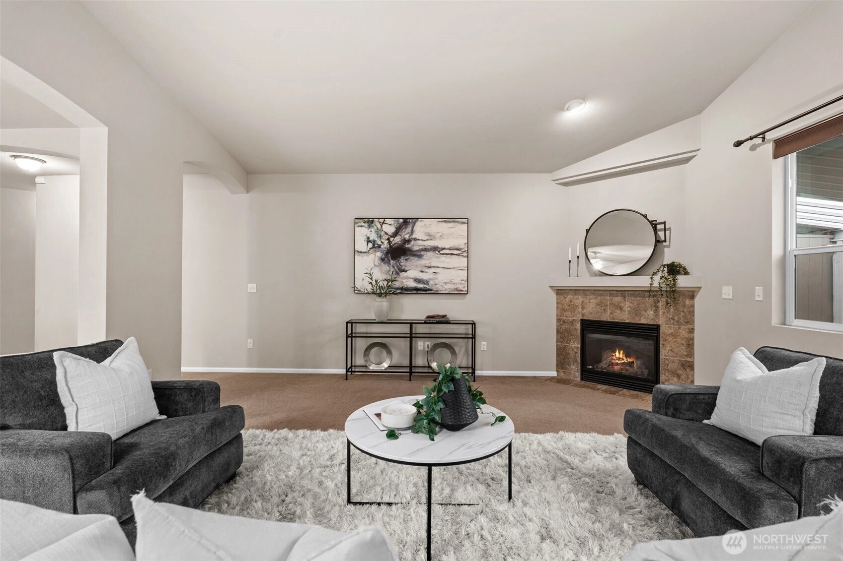 Welcome to this well-maintained 4 bed, 2 bath rambler tucked away at the end of a quiet cul-de-sac in Spanaway! Offering 1,812 sq ft of single-level living, this home delivers both functionality and comfort in a highly desirable layout. As you step inside, you’re greeted by an open-concept living space with vaulted ceilings that create an airy, inviting feel—perfect for both everyday living and entertaining. The kitchen flows seamlessly into the dining and living areas, making it easy to stay connected whether you're hosting guests or enjoying a quiet night in. The primary suite offers a private retreat with its own en-suite bath, while three additional bedrooms provide flexibility for guests, office space, or growing households. Situated on a spacious lot at the end of the cul-de-sac, you’ll enjoy added privacy, minimal traffic, and room to relax or entertain outdoors. Whether it’s summer BBQs, pets, or play, this backyard delivers! In the community, enjoy the playground and basketball court that's great for community gatherings and summertime fun. Conveniently located near JBLM, shopping, and major commuting routes, this home checks all the boxes for comfort, convenience, and long-term value.