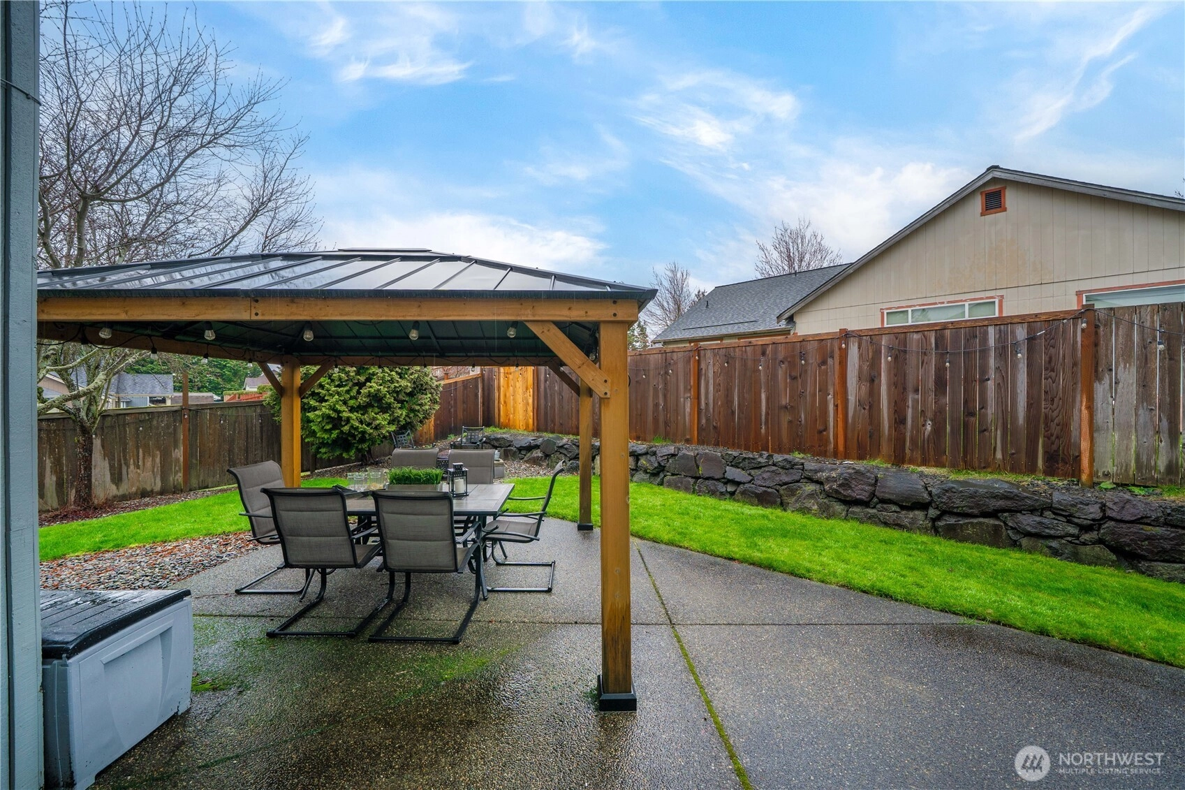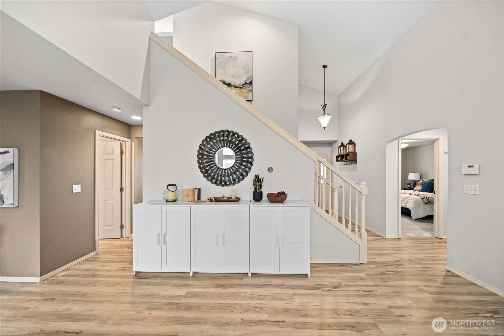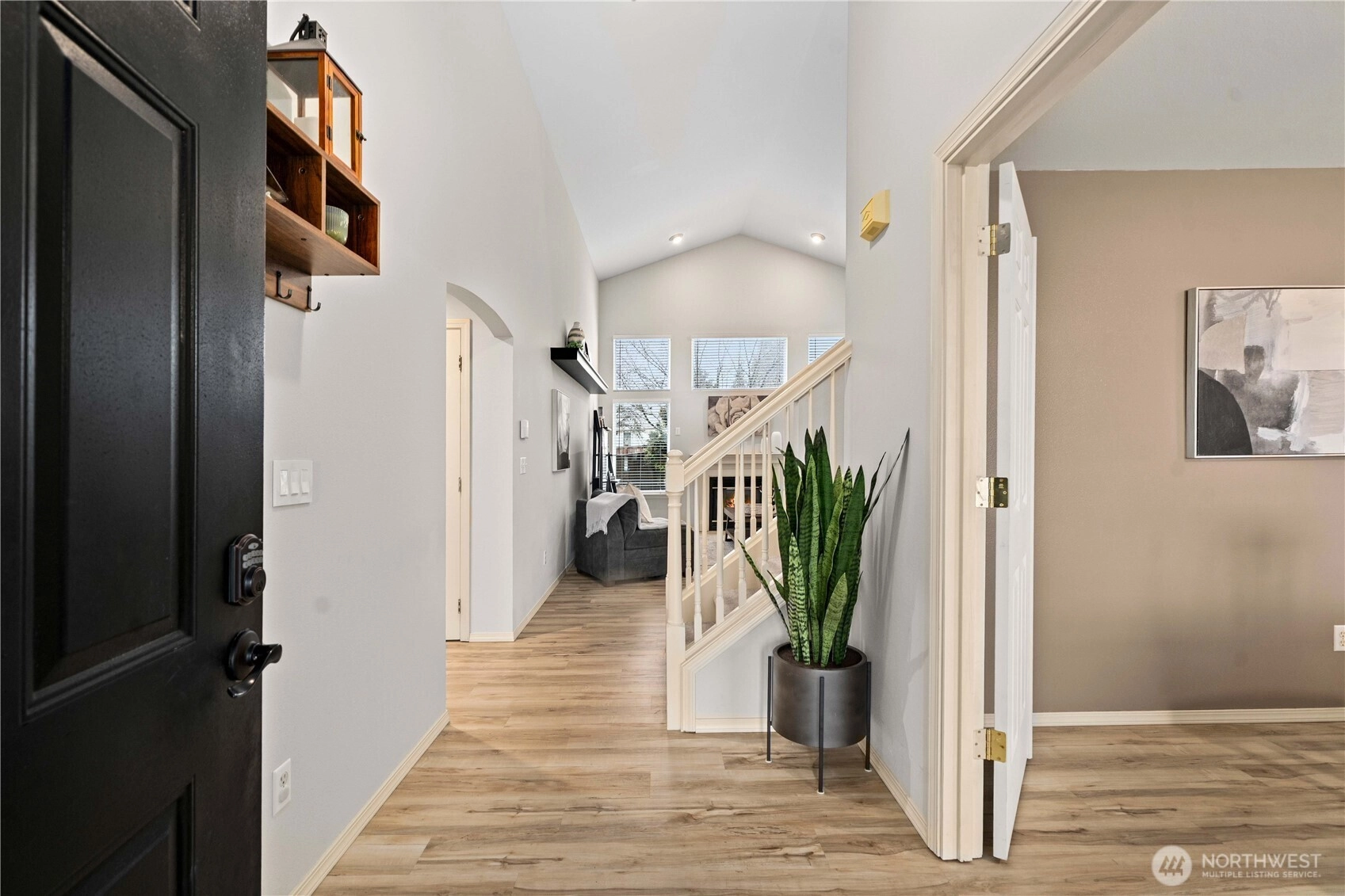 Welcome to Summer Glen, a charming community in the heart of Enumclaw, ideally located near Griffin Avenue with convenient access to local shopping, parks, and everyday amenities. This well maintained home lives large with soaring vaulted ceilings and a dramatic two-story great room feel, where walls of windows fill the living space with natural light. The open kitchen flows easily into the main living area, creating an ideal setting for both daily living and entertaining. Enjoy granite countertops, stainless steel appliances, double ovens, and newer laminate flooring throughout the main floor. The refrigerator and appliances stay, making this truly move-in ready. A mudroom and laundry area just off the garage add convenience and practical storage. A rare main floor primary suite offers comfort and privacy, featuring a beautiful bath with white cabinetry, granite counters, tile flooring, and a designer walk-in shower with frameless glass. The spacious walk-in closet includes built-ins. Upstairs you'll find oversized secondary bedrooms and a full bath. One bedroom is large enough to serve as a bonus space. Outside, enjoy the peaceful backyard complete with a gazebo and storage shed that both stay with the home, creating the perfect setting for outdoor relaxation. Valuable upgrades include a newer roof (2020), furnace, A/C, and water heater (2020), updated insulation, newer appliances including range (2021) and dishwasher (2025). A wonderful opportunity in desirable Enumclaw!