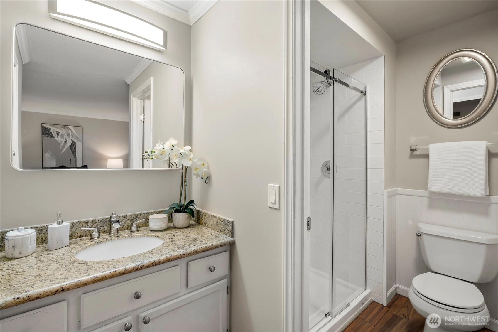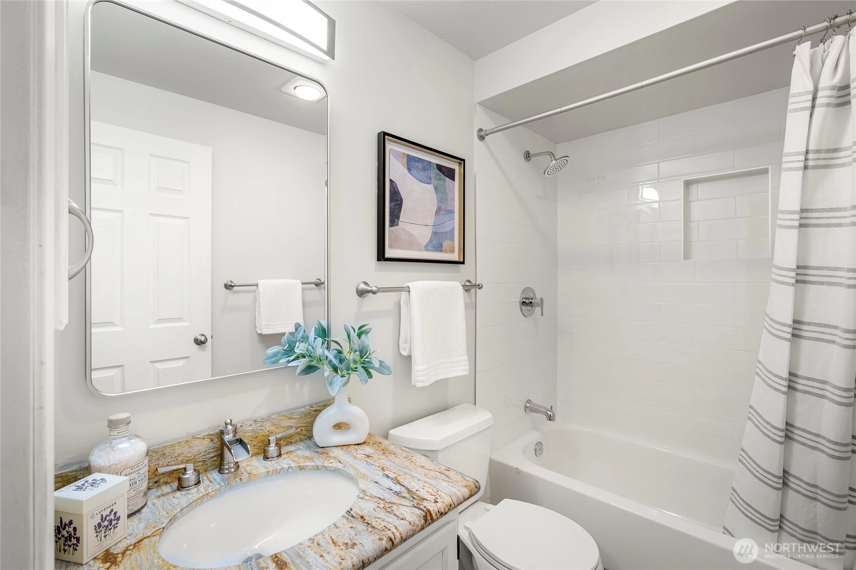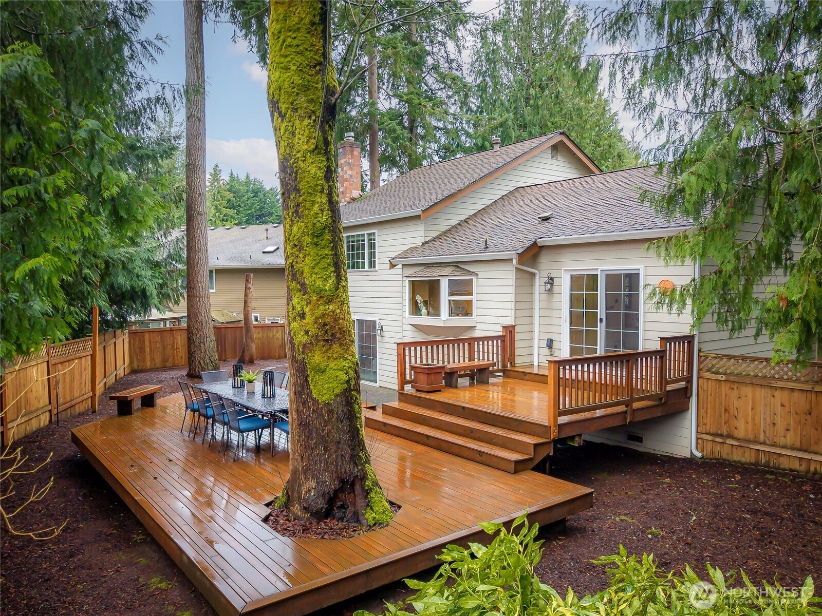 Some homes are on English Hill. Others feel like they were made for it. Set among quiet streets and towering evergreens in the coveted Northshore School District, this beautifully maintained home offers the kind of updates and comfort buyers hope to find already done. Rich hardwood floors bring warmth to the main living spaces, while tile and new carpet adds comfort underfoot. The kitchen features Silestone countertops, an easy flow into the surrounding gathering spaces, and a charming garden window—the perfect sunny spot for herbs, houseplants, or simply enjoying views of the backyard while you cook. When Northwest evenings turn cool, a cozy gas fireplace insert creates the perfect place to unwind. Upstairs, two newly remodeled bathrooms bring a fresh, modern touch, while a brand-new furnace provides year-round comfort and peace of mind. Step outside and the lifestyle continues. A stunning ironwood deck—both beautiful and incredibly durable—overlooks the landscaped and fully-fenced yard and invites outdoor living all season long. All of this in this sought-after neighborhood, where generous lots, mature trees, and access to the Northshore School District combine with easy proximity to Redmond’s tech campuses, Woodinville wine country, and everyday amenities.