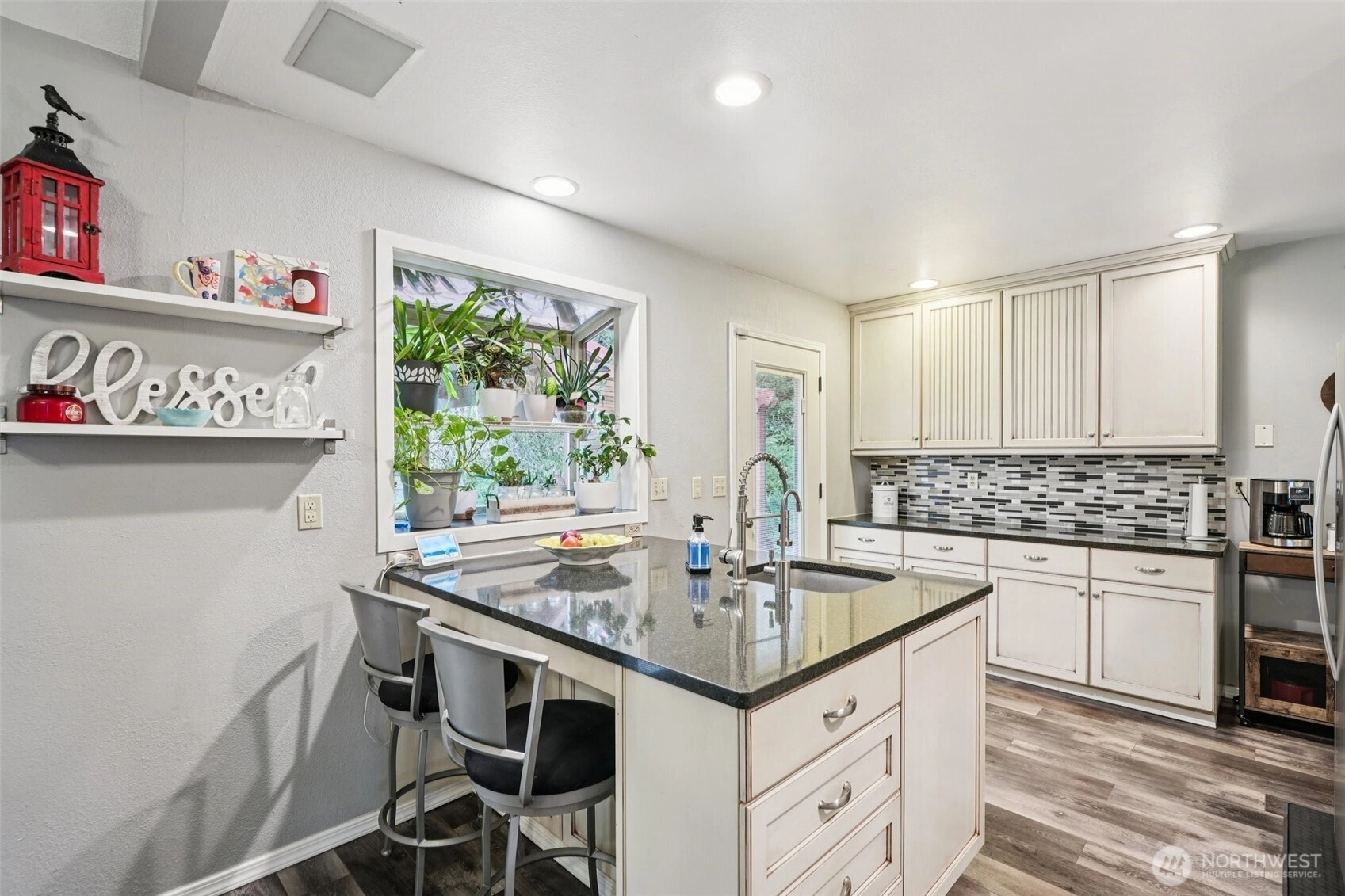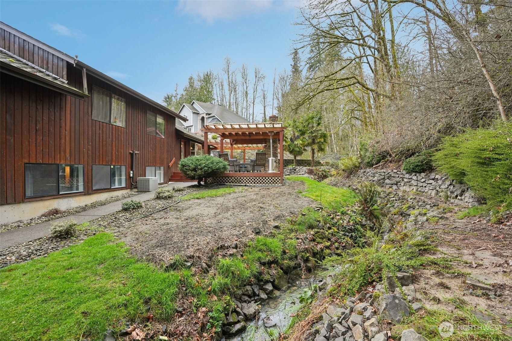 Welcome to this beautifully remodeled NW Contemporary tri-level home in Longview! Well-maintained home features 4 bedrooms and 2 baths, with soaring vaulted ceilings in the living/dining area. The main living room features a gas fireplace and ample natural light. Updated kitchen with newer appliances, gas cooktop, built-in oven, quartz counters, and garden window. The primary suite has a cozy gas stove, a built-in bookcase, and desk/sitting area. Great room downstairs with a gas stove is a perfect media room, bring the popcorn! Lovely bath with soaking tub and walk-in shower. Newer carpet/LVP. New roof in 2018, new furnace in 2016. Stunning outdoor entertainment area with gorgeous rock fireplace, large covered deck, and pond! Covered RV area. Too many features to list, this home is a must-see!