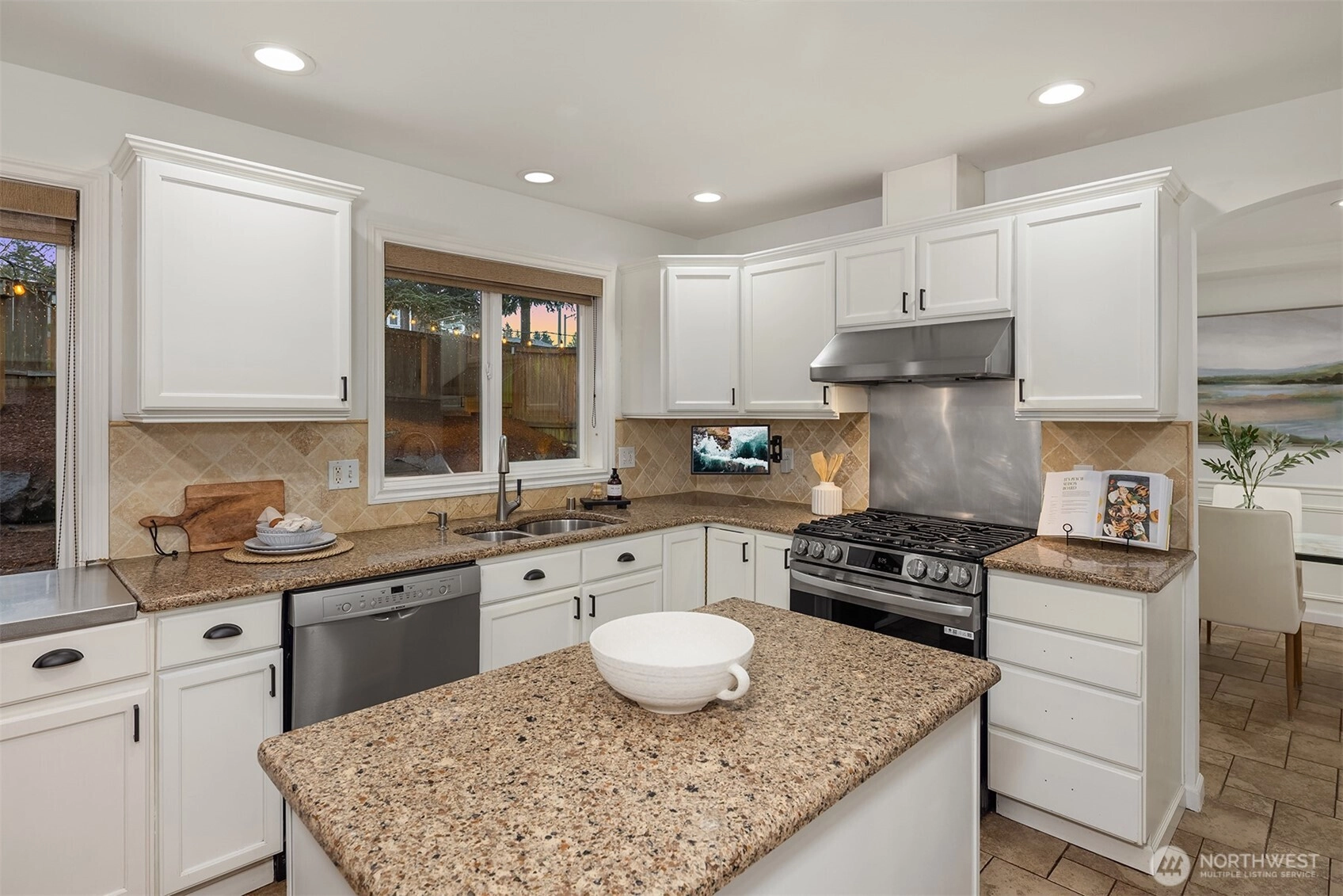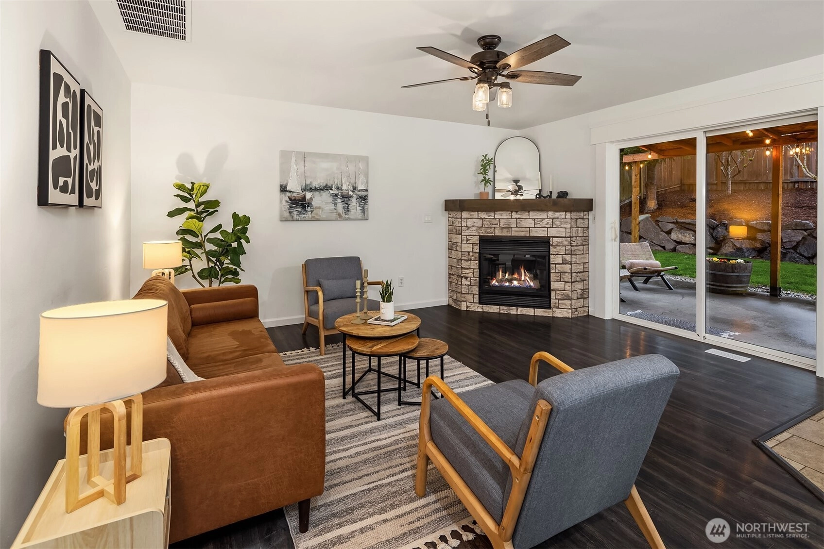 Welcome to Heartland Estates! Located within the coveted Lake Stevens School District, this beautifully updated home is situated just north of Soper Hill. Recent updates include fresh interior paint, new LVP flooring, a newer heat pump system, and a recently replaced roof. The main level features vaulted ceilings, formal dining room, spacious family room with gas fireplace, and kitchen with eating nook, granite counters, stainless steel appliances, and custom coffee bar. Upstairs, the primary suite offers western-facing views of the Olympics and Puget Sound along with a recently remodeled 5-piece bath featuring a two-person shower. Fully fenced backyard includes covered patio and custom fireplace. Pre-inspected and truly turnkey with easy access to nearby shopping, dining, and the new Everett Clinic.