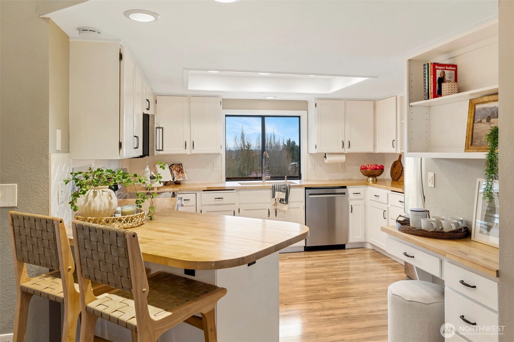 Enjoy amazing territorial and sunset views from this thoughtfully updated home, perfectly nestled among the trees on a quiet cul-de-sac in the desirable Mt. Vista area. Situated on a generous ¼-acre lot, this property offers both privacy and space. The kitchen features butcher block countertops, white cabinetry, stainless steel appliances, and a convenient pantry. The spacious primary suite includes double closets, an updated ensuite bathroom, and direct access to the backyard deck—perfect for relaxing or entertaining. The large backyard provides a private retreat with plenty of room to enjoy the outdoors. Ideally located near medical facilities, shopping, restaurants, and with easy freeway access, this home combines comfort, style, and convenience.
