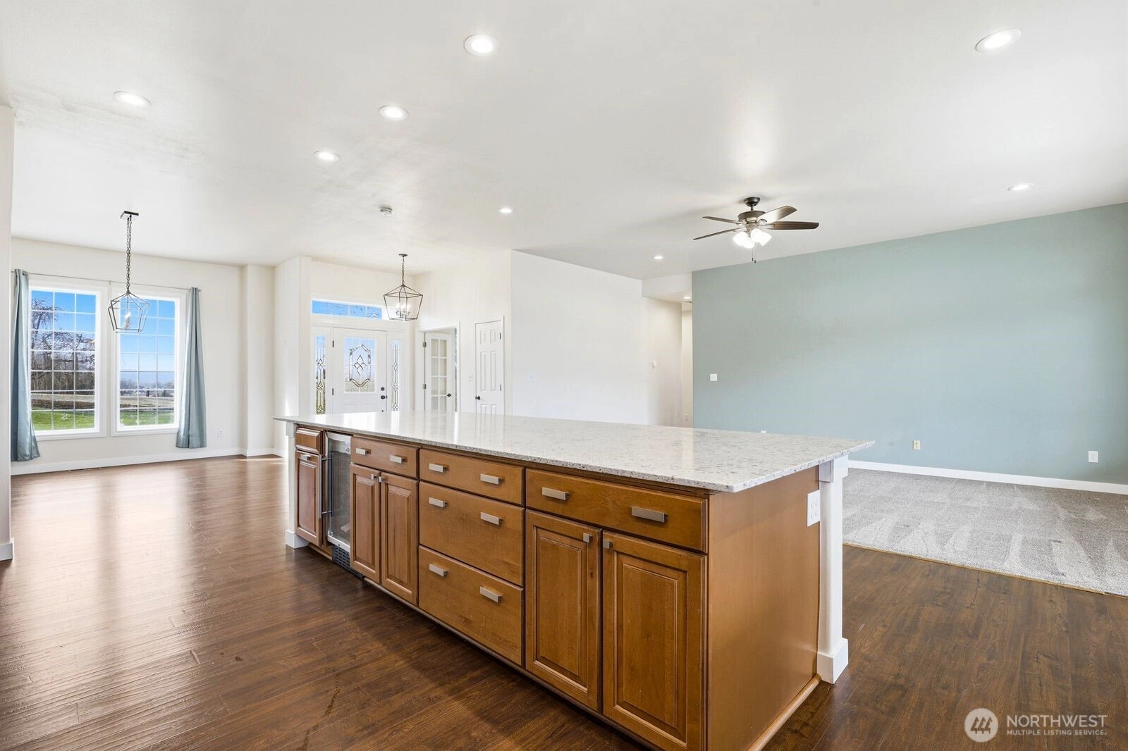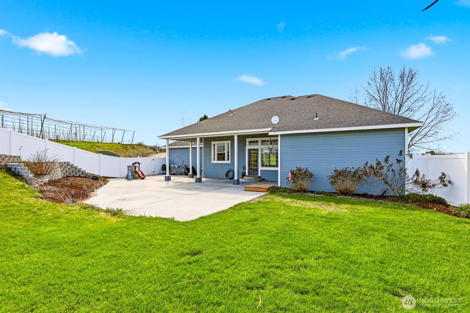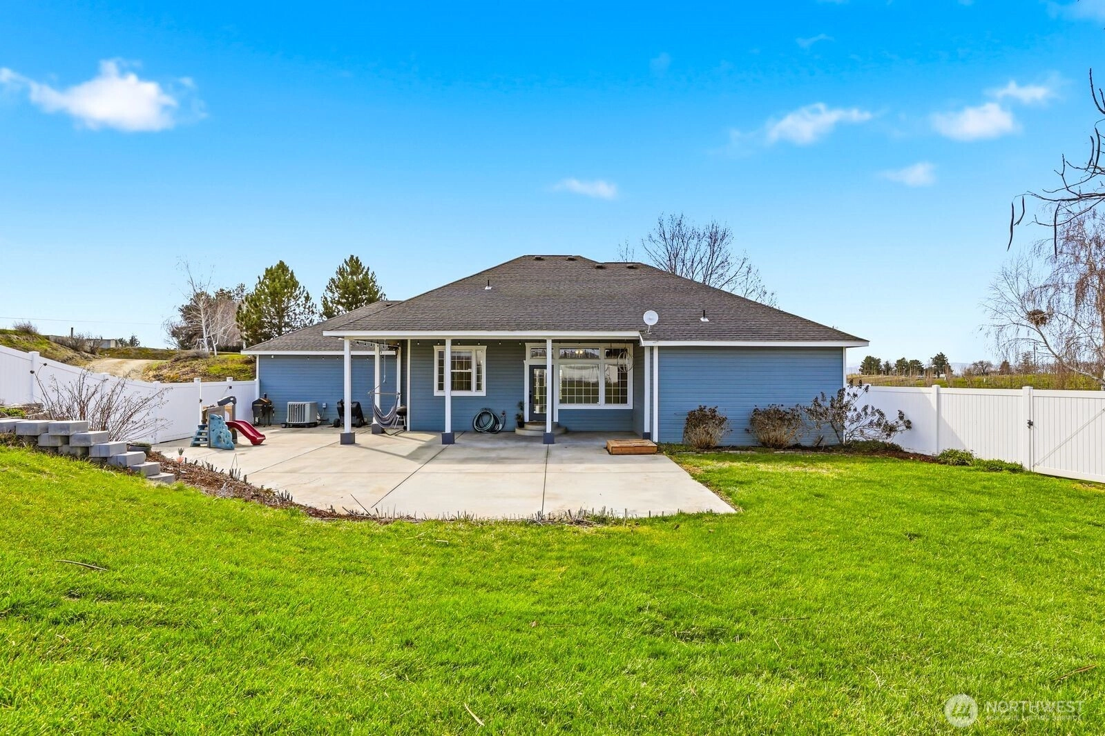 Countryside beauty in Zillah! This light-filled home features soaring ceilings and 2+ bedrooms. A spacious third room with French doors offers the perfect option for an office, guest room, or flexible living space. The kitchen and main living area have been recently remodeled and showcase a stunning oversized quartz island, new appliances, a wine fridge, and fresh interior paint. Situated on a full acre, the property includes a 2-car garage, new pressurized well pump, reverse osmosis water filter, water softener, fenced dog run or garden area, and a covered paver patio--ideal for relaxing, entertaining, and taking in peaceful country views and wide-open skies.