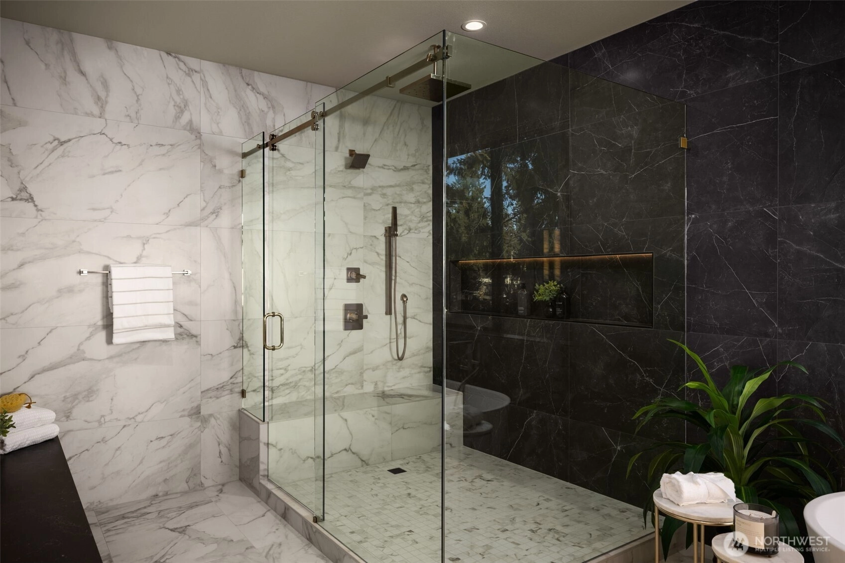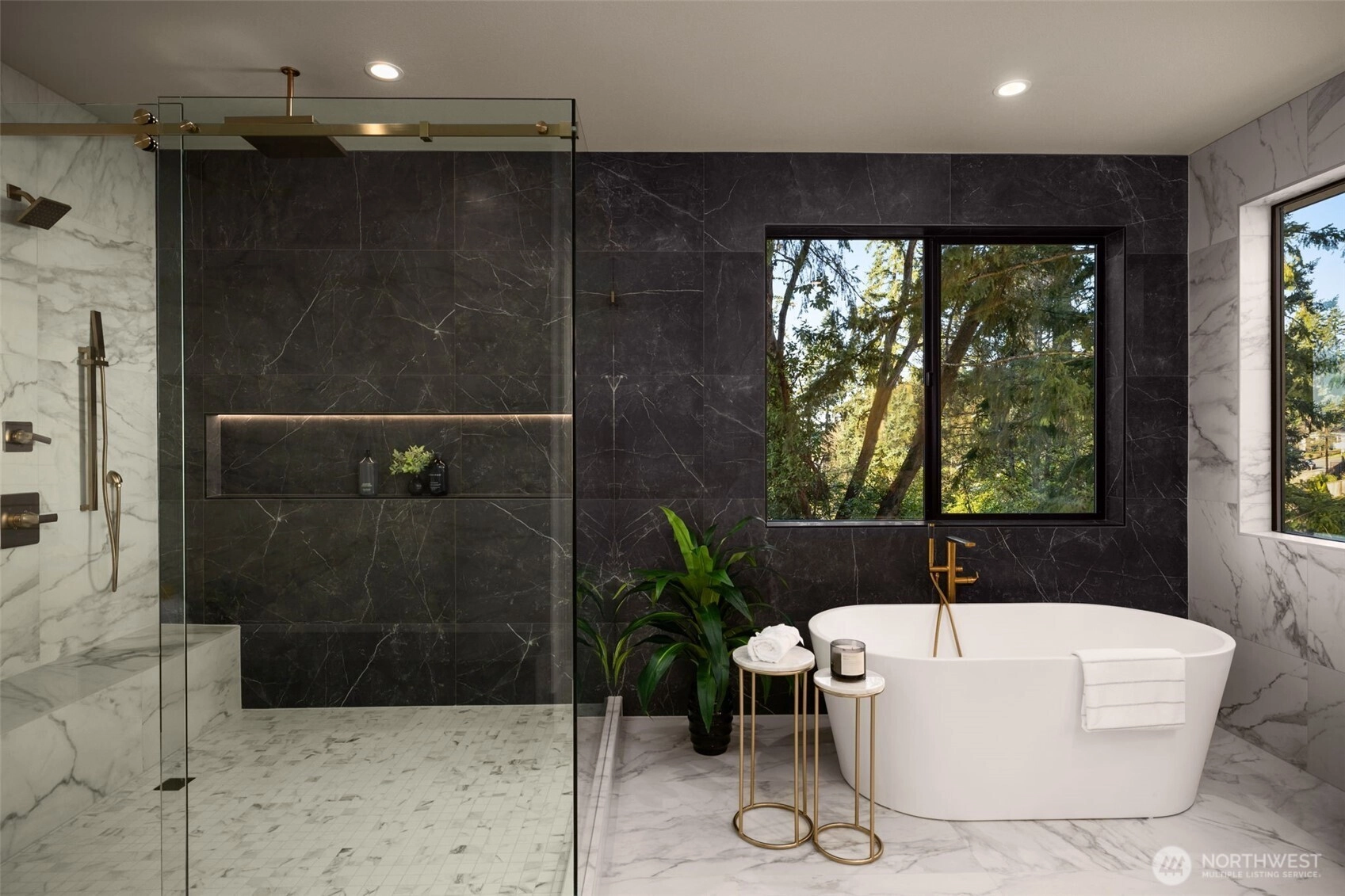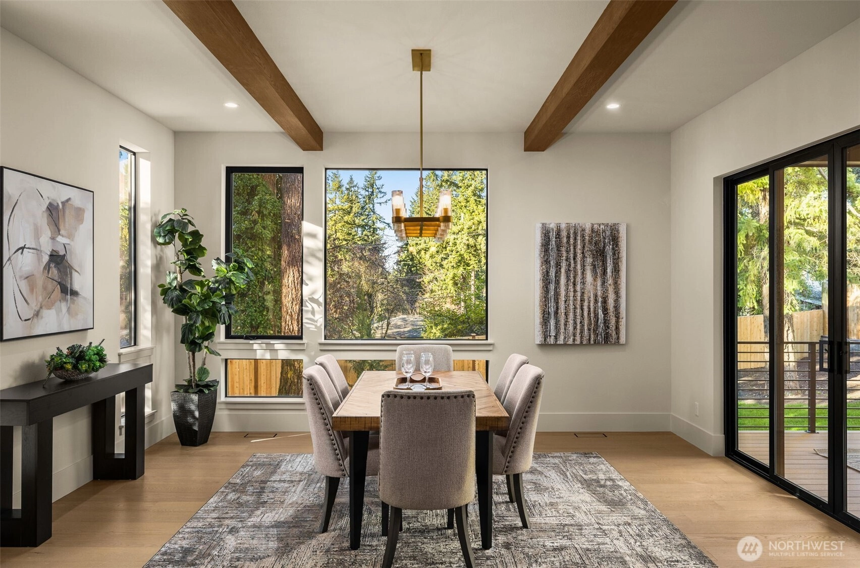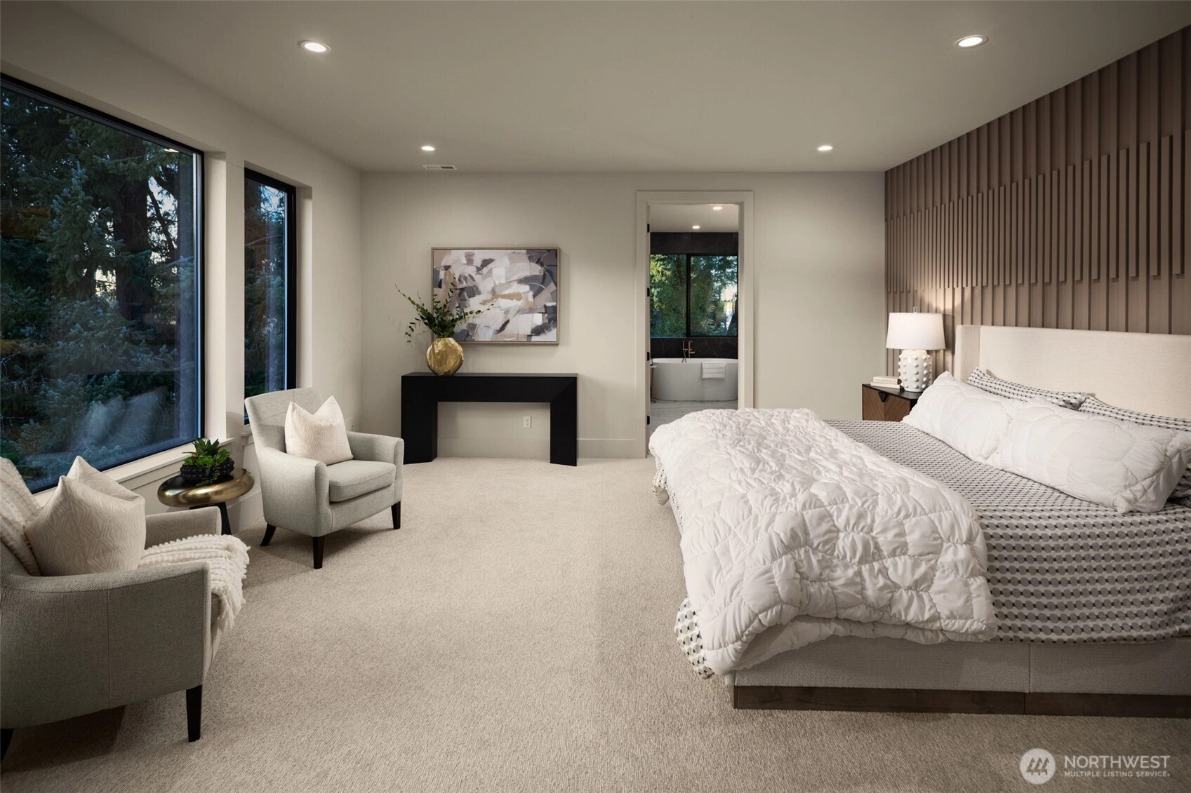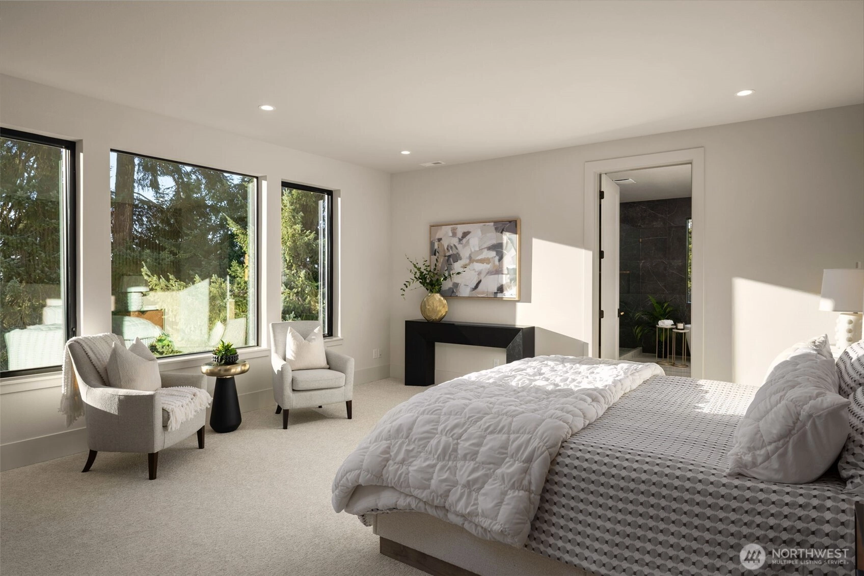 Experience luxury living in this newly completed Northwest Contemporary home by Belle Crown Homes, ideally located on a large, private lot within the boundaries of award-winning Newport High School. Thoughtfully designed with high-end finishes and modern smart features, this home offers an open, light-filled floor plan perfect for both everyday living and entertaining. The main level includes a private guest suite, a chef’s kitchen with custom wood cabinetry, dual dishwashers, and a dramatic two-story great room. Covered outdoor living includes Sonos built-in speakers, electric heaters, and custom decking, all overlooking a spacious backyard. Luxurious primary suite features a stunning spa like bath, perfect for relaxation. Additional highlights include heated tile floors, Brizo Litze instant hot water, and carefully selected designer fixtures throughout. Sustainable features such as solar panels, dual heat pumps, and spray foam insulation enhance efficiency, while the expansive four-car garage with epoxy floors and finished walls provides abundant space for vehicles, storage, or hobbies. Conveniently located near Bellevue parks, shopping, trails, and amenities, this exceptional home blends sophistication, comfort, and modern functionality.