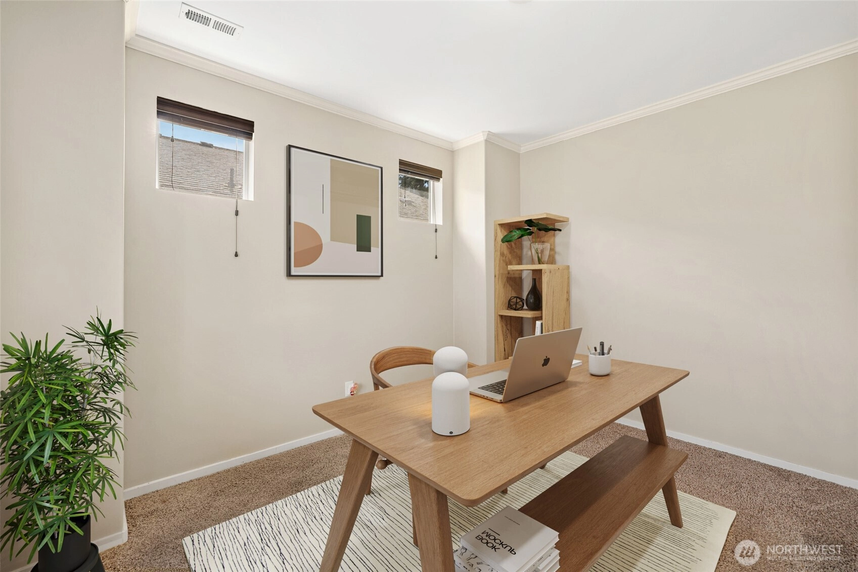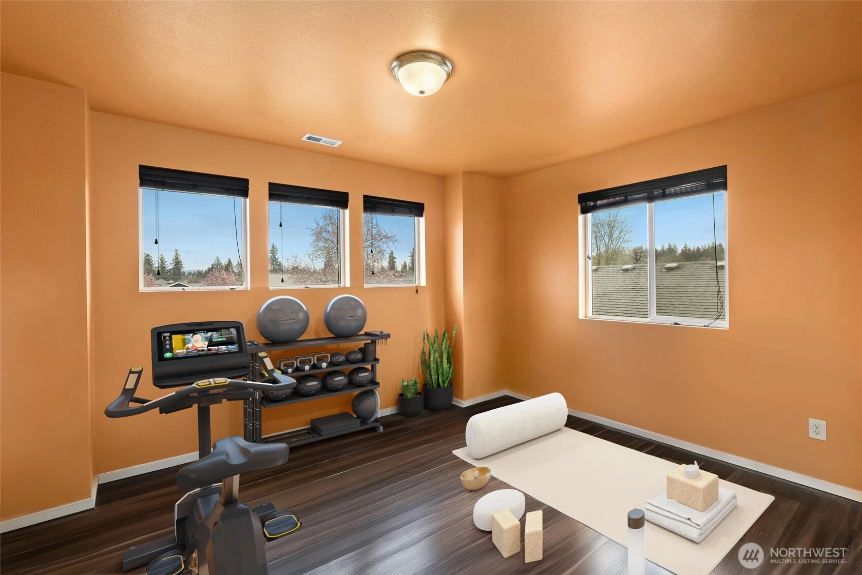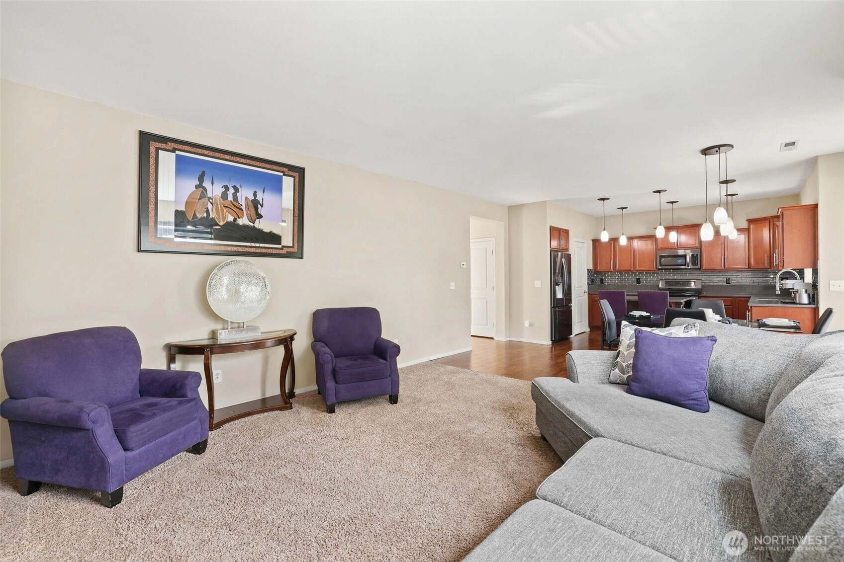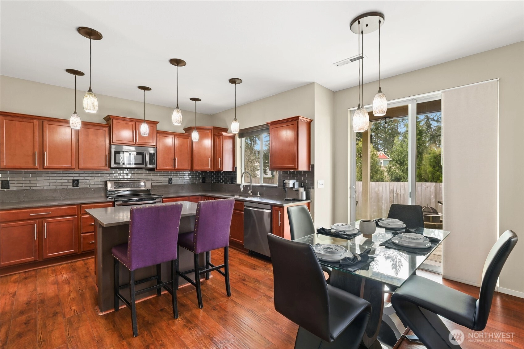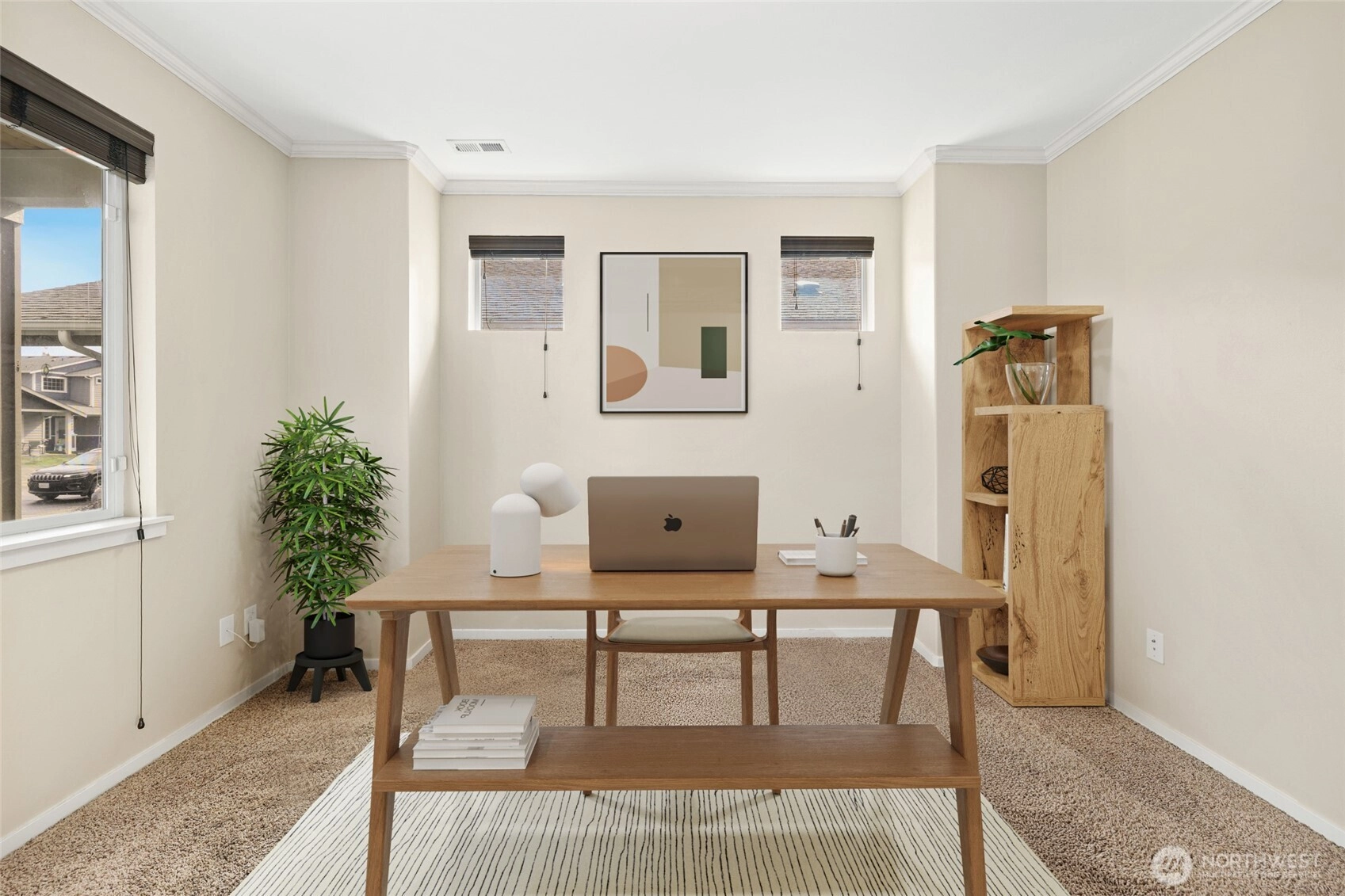 Built in 2013 and impeccably maintained by its original owner, this turnkey Spanaway home offers space, style, and functionality! Featuring 4 bedrooms + office & 2.5 baths, there’s room for everyone to live comfortably. The main level features an updated kitchen with quartz countertops, tiled backsplash, and a newer stainless steel appliance package, all flowing seamlessly into the open-concept living room anchored by a striking fully tiled fireplace. An additional main-floor room provides flexibility for a home office, playroom, or guest bedroom. Upstairs, unwind in a truly expansive primary retreat — double the size of most — complete with two closets and a private en-suite bath with soaking tub. Three additional bedrooms, a full bath, and a dedicated laundry room complete the upper level. Enjoy summer evenings on the extended covered patio overlooking a fully fenced backyard, with low-maintenance turf in both the front and back for year-round ease. Conveniently located near JBLM, shopping, dining, and everyday amenities, this move-in-ready home blends comfort, convenience, and thoughtful updates throughout.