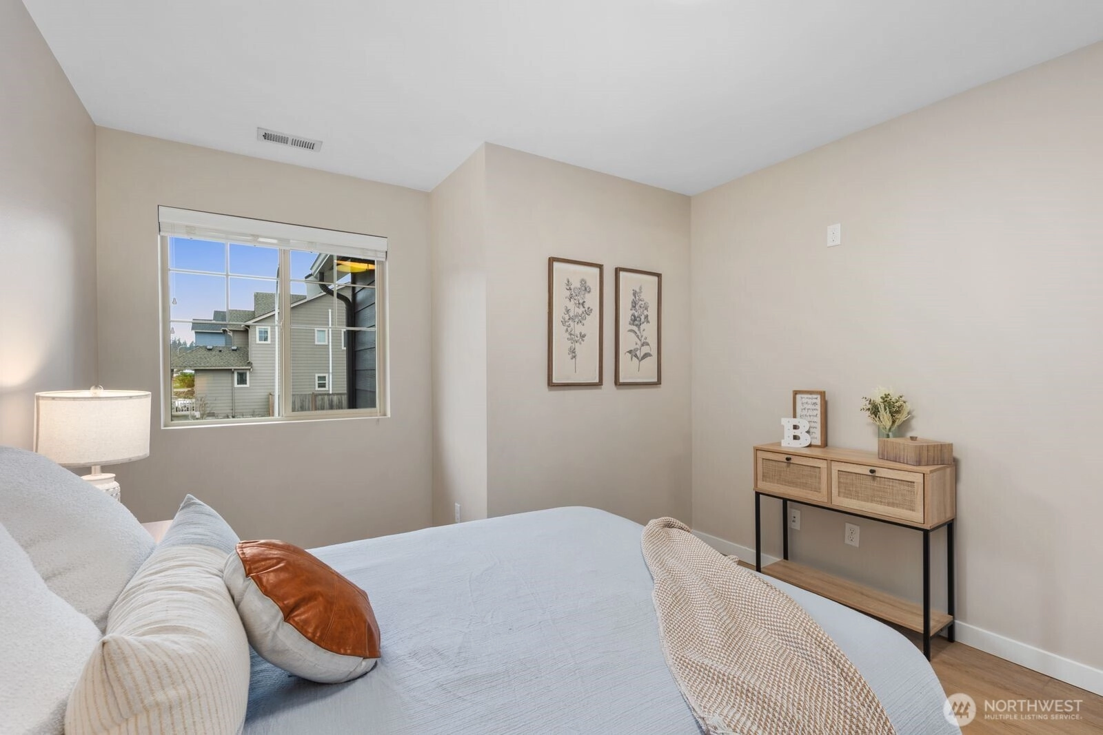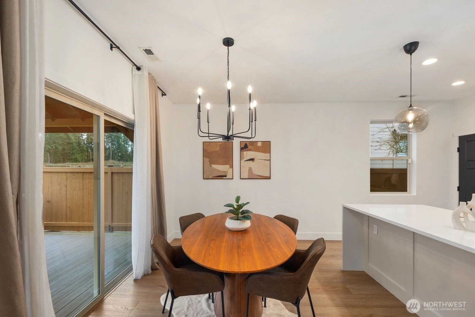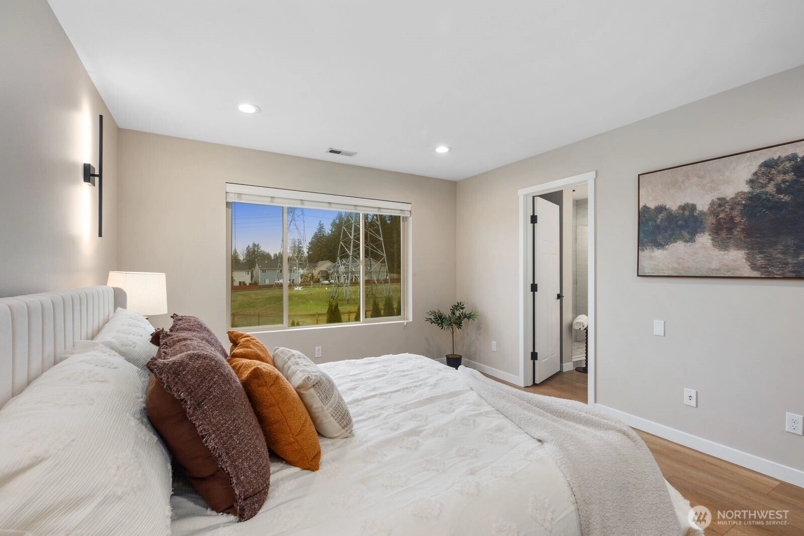 Upgraded inside and out! This Lakeland Hills home built in 2014, offers 3-bedrooms and 1,813 sq ft in the Ridge at Bowman Creek community. The 4,000 sq ft lot backs to green space with no direct rear neighbor. Main level features updated SPC waterproof flooring, an electric fireplace also stubbed for gas, with floor to ceiling stone work perfect alongside this open-concept layout. Kitchen includes new appliances, a large walk-in pantry, and gorgeous cabinetry. Primary suite includes a remodeled bath with a luxurious rain shower head. Laundry room is located upstairs with all three bedrooms. Additional features include air conditioning, tankless water heater, and an attached 2-car garage with upgraded electrical panel. Outdoor upgrades include a Trex deck, poured concrete patio pad with hot tub hookup, multiple exterior gas stubs for BBQ or future generator setup, and pre-plumbed lines for landscaping. Exterior and interior paint also recently updated. Located approximately 0.3 miles to neighborhood park and playground, with convenient access to Auburn amenities and commuter routes.Vacant and ready for its next owner.