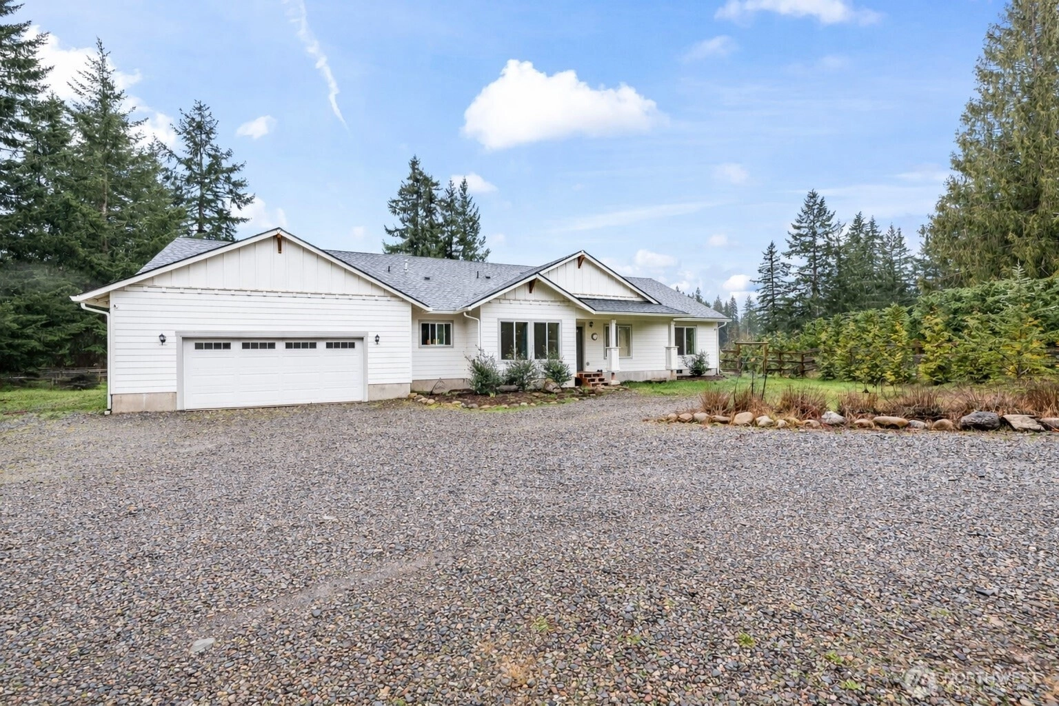 Modern 5-Acre Estate with Mountain Views, Private Pond & Gated Entry in Rainbow Ridge Estates Orting. Welcome to 23210 188th St E, Orting, WA—a rare opportunity to own a 2021-built rambler rambler on 5 acres overlooking a year-round pond with naturally spawning fish and panoramic Mt. Rainier views. This 4-bedroom + office, 2-bath, 2,676 sq ft home offers spacious single-level living with an open-concept layout, large living area, and a functional kitchen designed for everyday living and entertaining. The primary suite provides a private retreat with a full bath, while additional bedrooms offer flexibility for guests, or multi-generational living. • 24x36 three-stall barn with hay storage—ideal for equestrian use or hobby farming. • Private pond with freshwater trout + scenic mountain views. • Gated entry for privacy and security. • RV parking • Quiet cul-de-sac location. Built with cement plank siding, forced air heating, and central A/C. Conveniently located just minutes from downtown Orting, this property offers the perfect balance of rural living with easy access to amenities, schools, and commuter routes. This is a rare opportunity to own a scenic property at a compelling price. Priced below market to reflect cosmetic updates needed (flooring, trim, paint, landscaping), allowing buyers to build instant equity and personalize finishes. ***Receive a $10,000 Lender Credit towards the purchase of this home with our preferred lender!**