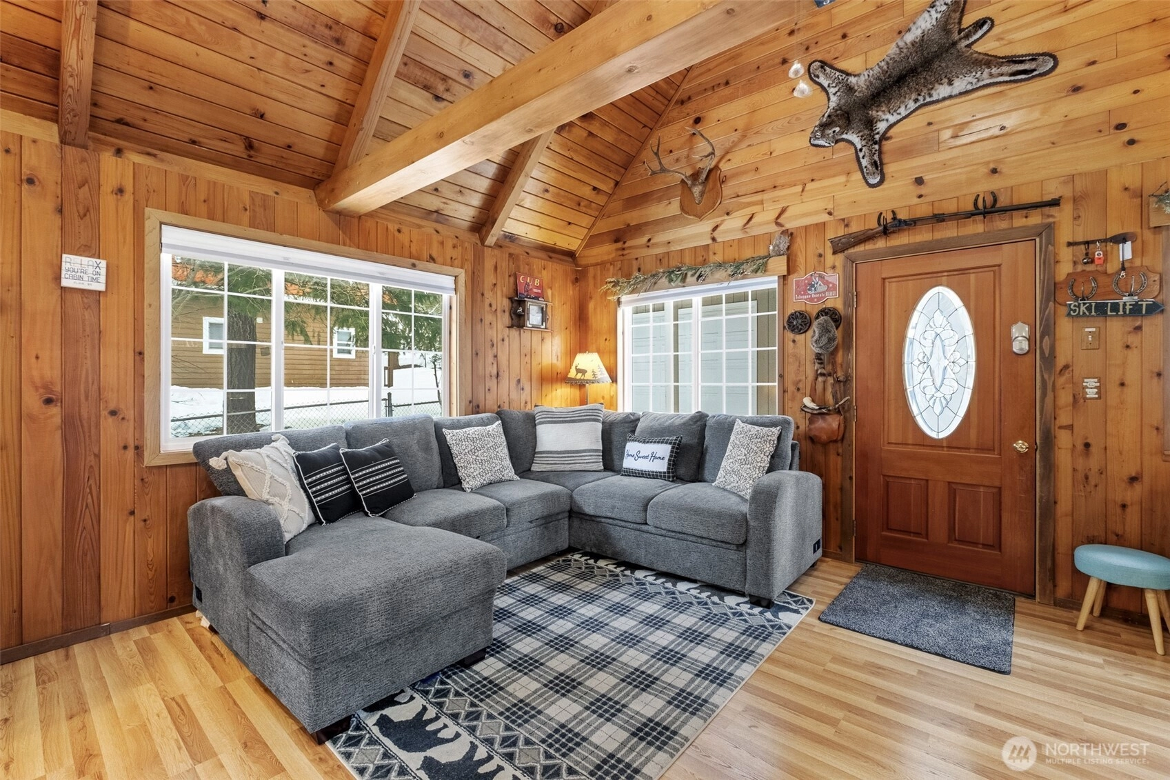 Tucked away in the charming mountain community of Plain, this inviting 2-bedroom, 1.5-bath cabin offers the perfect blend of comfort, recreation, and extra space for guests or hobbies. The home features a newly remodeled bathroom, open concept living area and an extra loft upstairs provides the perfect space for extra sleeping quarters. Ideally located on a dead end street just down the road from the Ponderosa Estates community clubhouse, river access, playground, and pickleball court, you’ll enjoy easy access to neighborhood amenities while still feeling surrounded by nature. Step outside and you’ll find a large detached garage/shop—perfect for projects, gear storage, or outdoor toys—with a finished bunkroom above that providing a great spot for guests, overflow sleeping, or a home office. The shop also includes a full bathroom, offering excellent potential for a future guest suite or possible ADU conversion (buyer to verify with county). A detached two-car carport with storage above adds even more versatility, offering plenty of covered parking and room for seasonal equipment. Situated 25 min from Downtown Leavenworth, 35 min from Stevens Pass Ski Resort and only 10 min from Lake Wenatchee State Park, you can enjoy all of the recreational activities that the Leavenworth area has to offer!