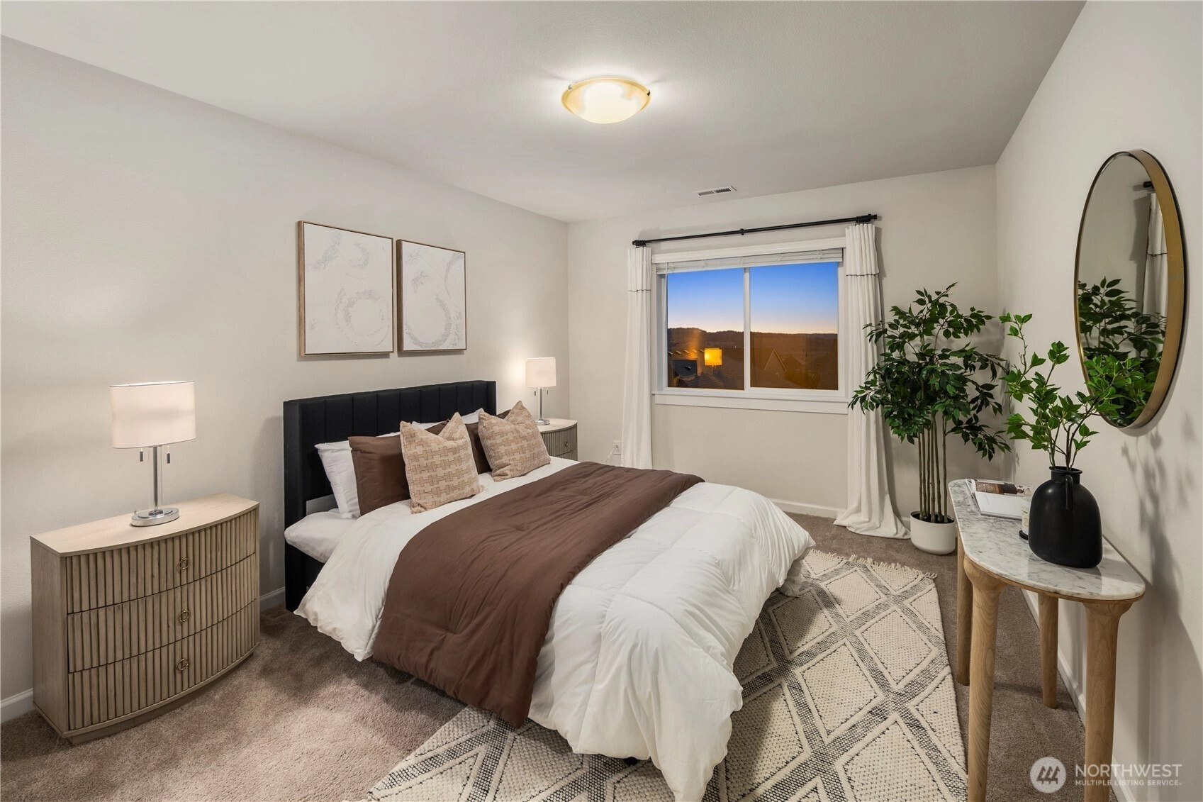Better than new construction, with the upgrades already in place and nothing left to finish.The home strikes a clean, modern tone with natural light, nine foot ceilings, and a layout that feels both open and practical. A main level bedroom or office adds flexibility, while the kitchen is thoughtfully finished with quartz countertops and stainless steel appliances, designed for everyday living without excess.Upstairs, newer hardwood floors lead to a well appointed primary suite with dual closets and a spa style bath. Three additional bedrooms and a spacious bonus room offer room to grow, with mountain views that carry through the upper level.Outside, the difference is immediate. A fully retained yard creates rare, usable flat space, paired with Trex decking and low maintenance turf. Blinds, solar panels, and other finishing touches are already installed, giving the home a level of completeness that’s hard to find.It offers the feel of new construction, without the unfinished details that usually come with it.