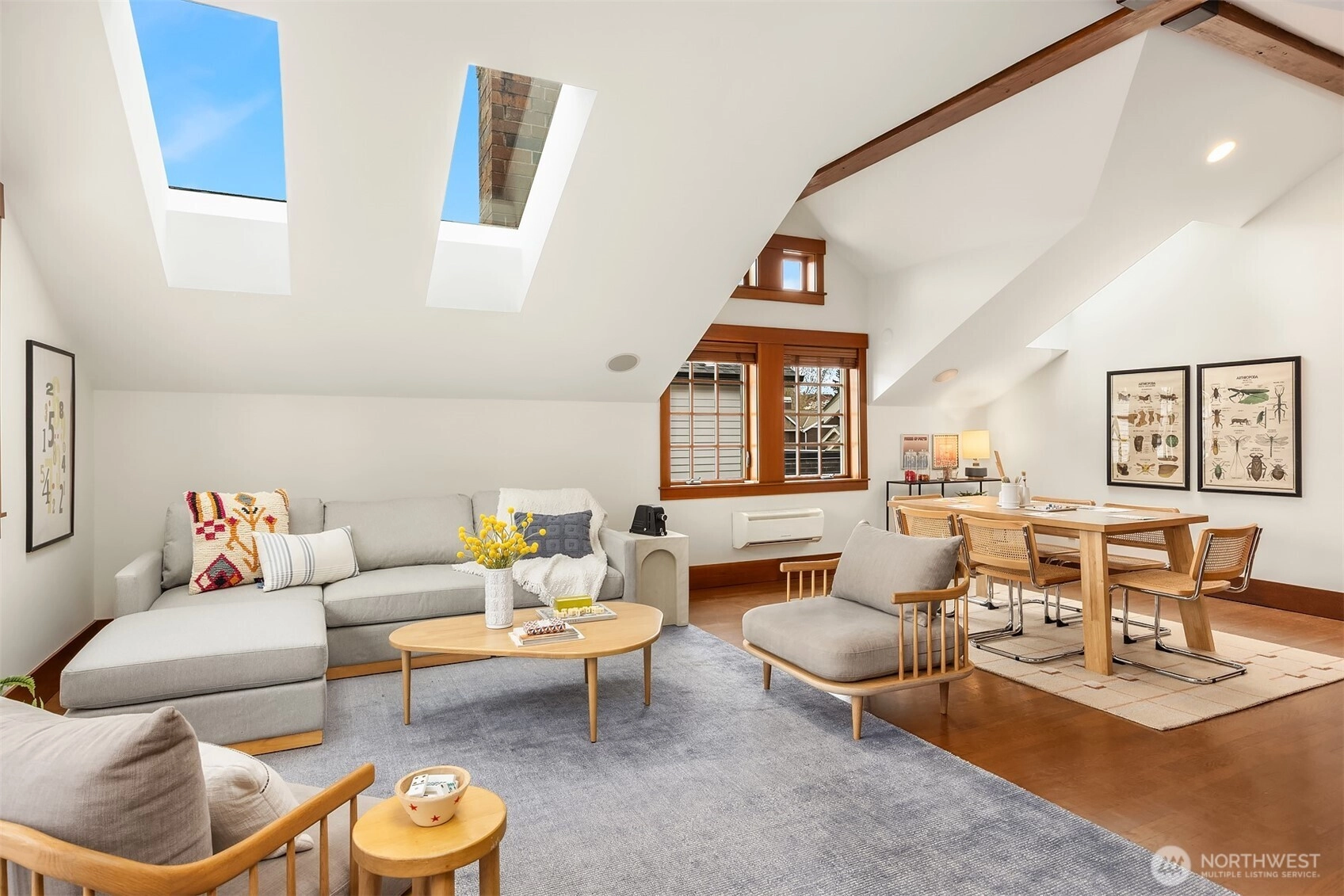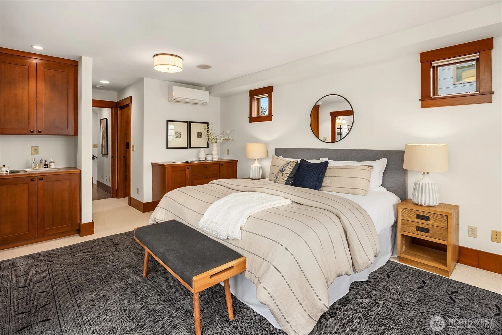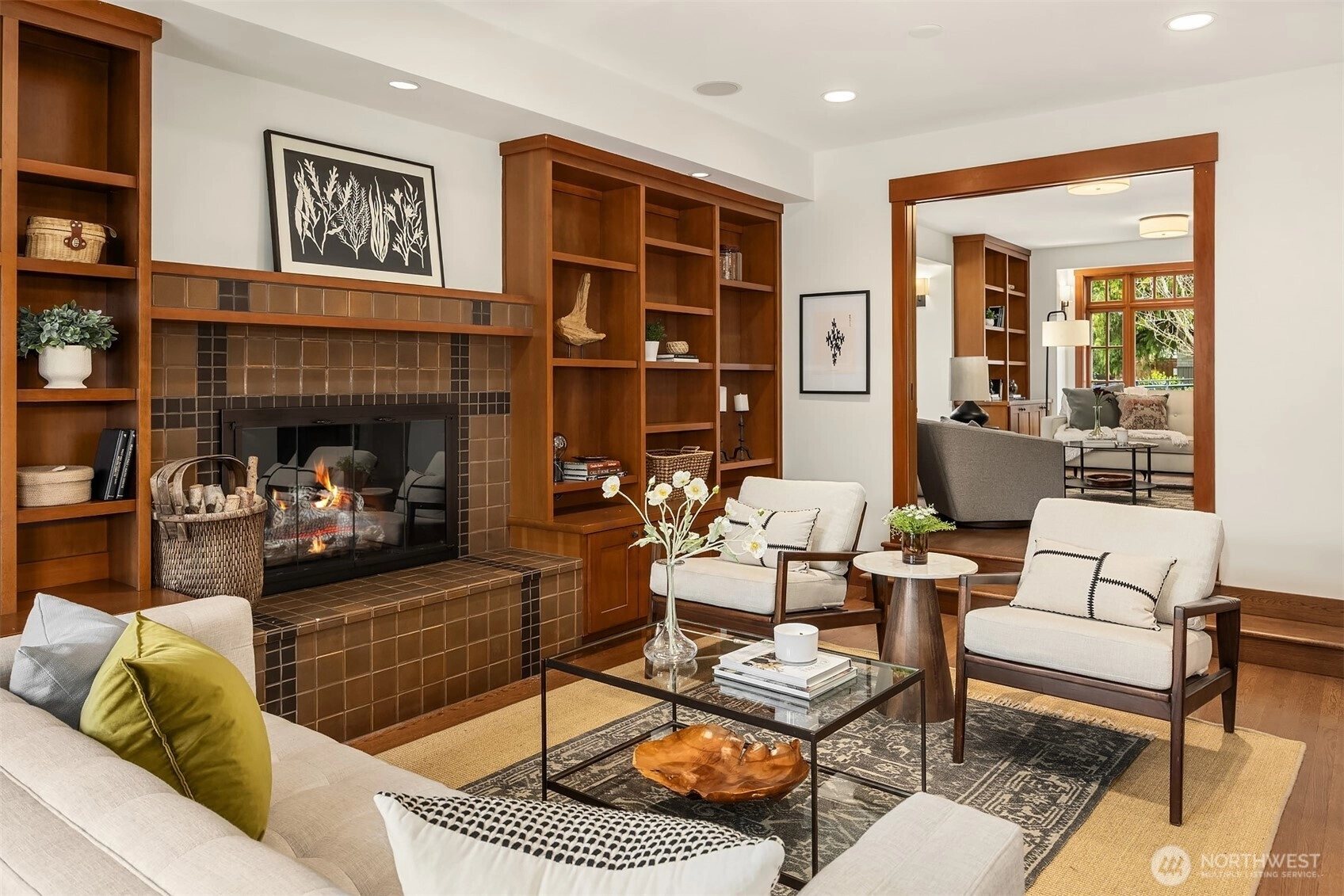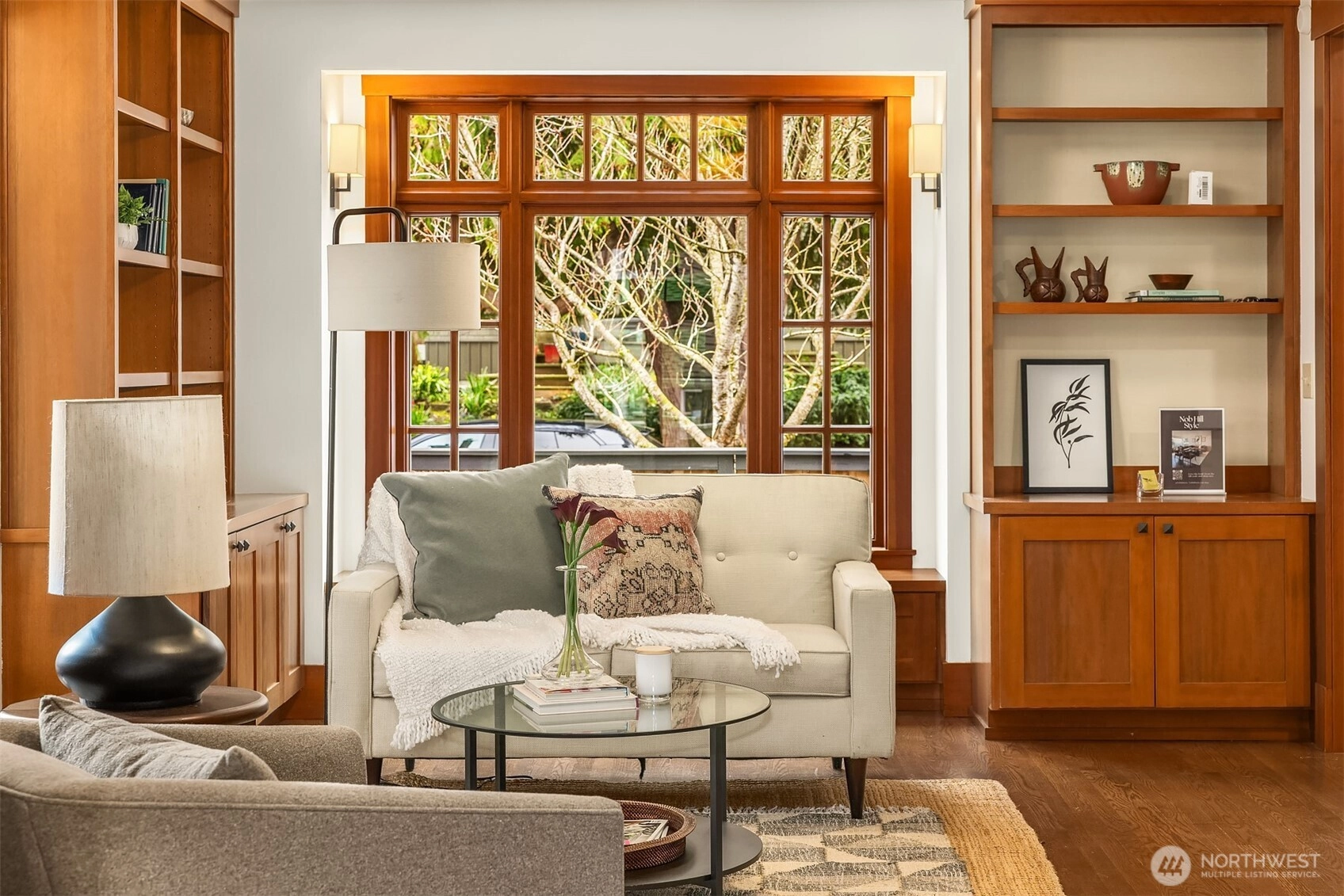 Fabulous, like-new shingled Madrona home in superb condition nestled atop the hill- Stylish residence with Beautiful finish work throughout found in all rooms and sophisticated, elegant floor plan. Kitchen-family room offers outdoor dining, cozy fireplace, as well as top of the line appliances including new Wolf range-oven. Large kitchen island, pretty dining room. Gucci-papered powder room! Expansive primary suite with balcony, and sun-filled bath. Two additional bedrooms on second level, each quite spacious, and a bedroom/ bath on third floor adjacent to the rare and inviting top floor bonus room. Spacious deck with "bridge to bridge" panoramic Lake Washington and Cascade views. The very special detached studio space is ideal for home office, exercise, retreat or playroom! Quality construction with oak floors, excellent wood windows and French doors. EV Car Charger. Two-car tandem garage. Gas furnace and mini-splits with AC. Friendly neighborhood locale close to the best of popular Madrona- quaint shops, restaurants, coffee shops and galleries as well as City library and transportation. SF includes 306 sf finished detached studio.