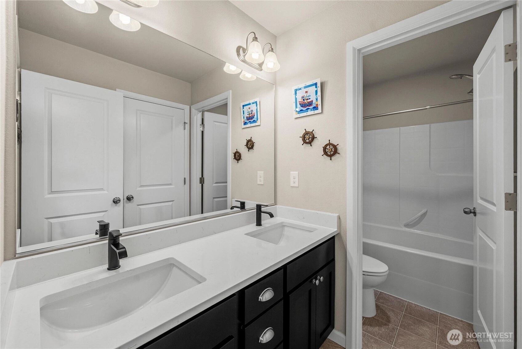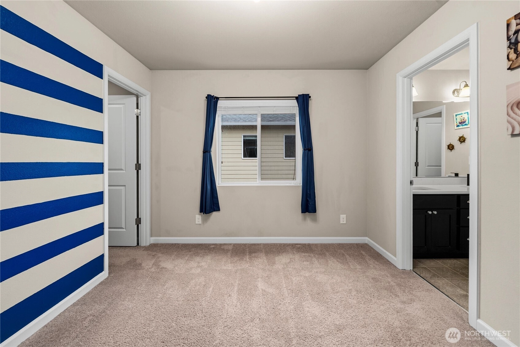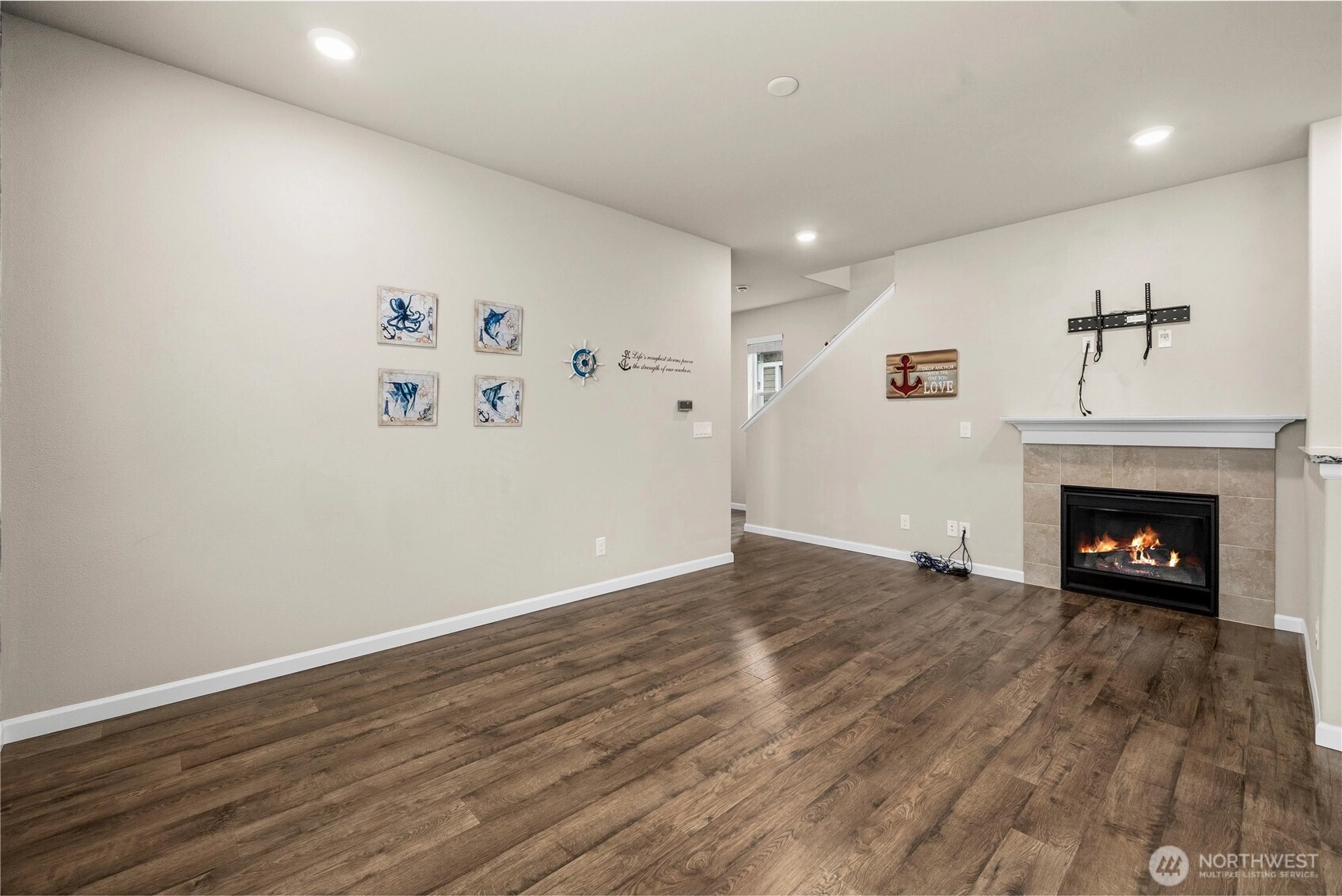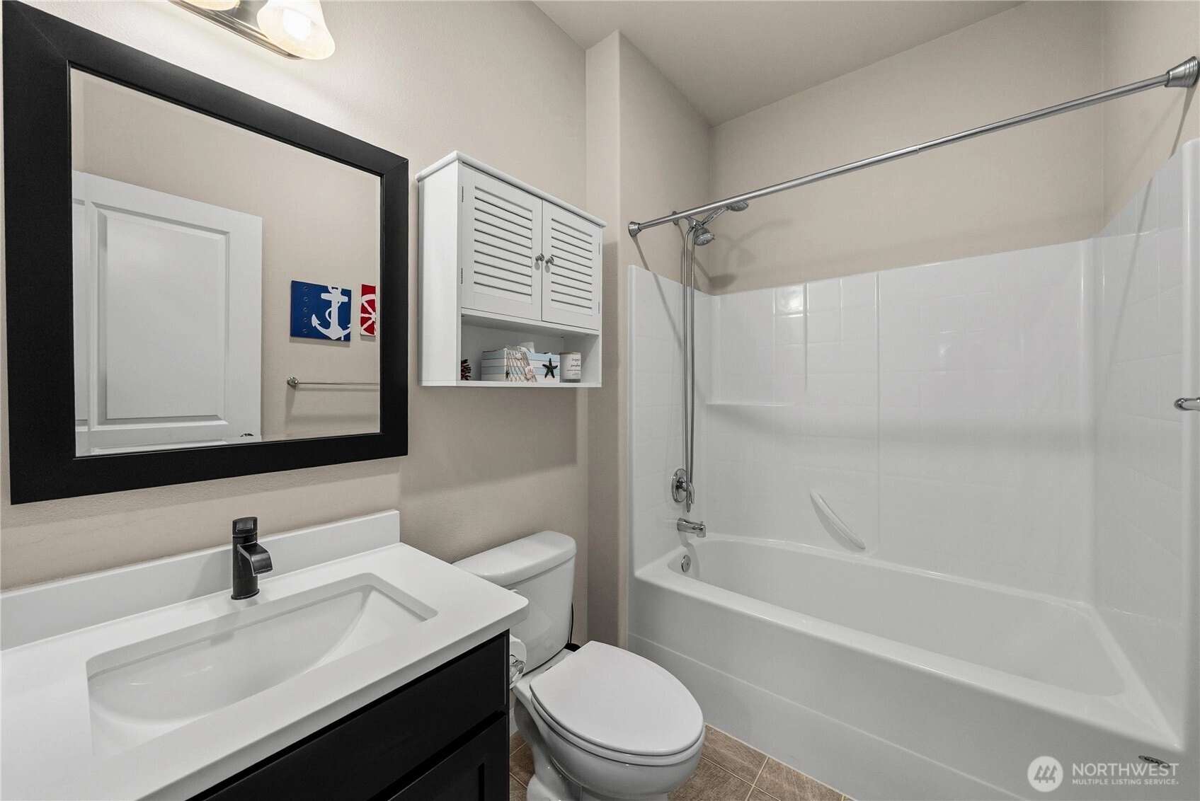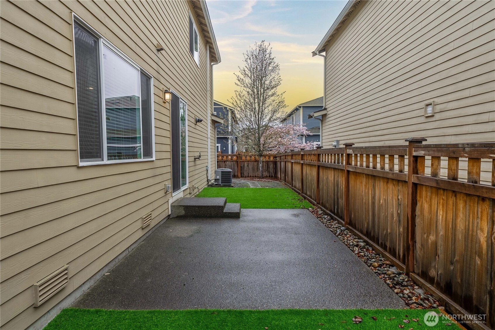 This stunning home welcomes you with rich laminate hardwood floors that flow seamlessly throughout the main level, creating a warm and inviting atmosphere from the moment you step inside. A main-floor bedroom and full bath offer the perfect setup for guests, multigenerational living, or a private home office. The open-concept living and dining areas are designed for comfort, filled with natural light and anchored by a spacious layout that makes everyday living and entertaining effortless. The gourmet kitchen features stainless steel appliances, abundant cabinetry, generous counter space, and a layout that keeps you connected to the heart of the home while hosting. Upstairs, retreat to the primary suite—a peaceful haven complete with a luxurious ensuite bath offering dual sinks, a soaking tub, a walk-in shower, and an oversized walk-in closet. Two additional well-sized bedrooms, a convenient utility room, and abundant natural light throughout the upper level complete the space. Step outside to a fully fenced backyard designed for low-maintenance living, featuring artificial turf that stays green year-round—perfect for relaxing, entertaining, or play without the upkeep. Ideally located near I-5 and JBLM, this home offers easy commuting while keeping you close to shopping, dining, and everyday conveniences. Enjoy the added benefit of being within walking distance to schools, parks, and scenic trails, making this home the perfect blend of comfort, convenience, and lifestyle.