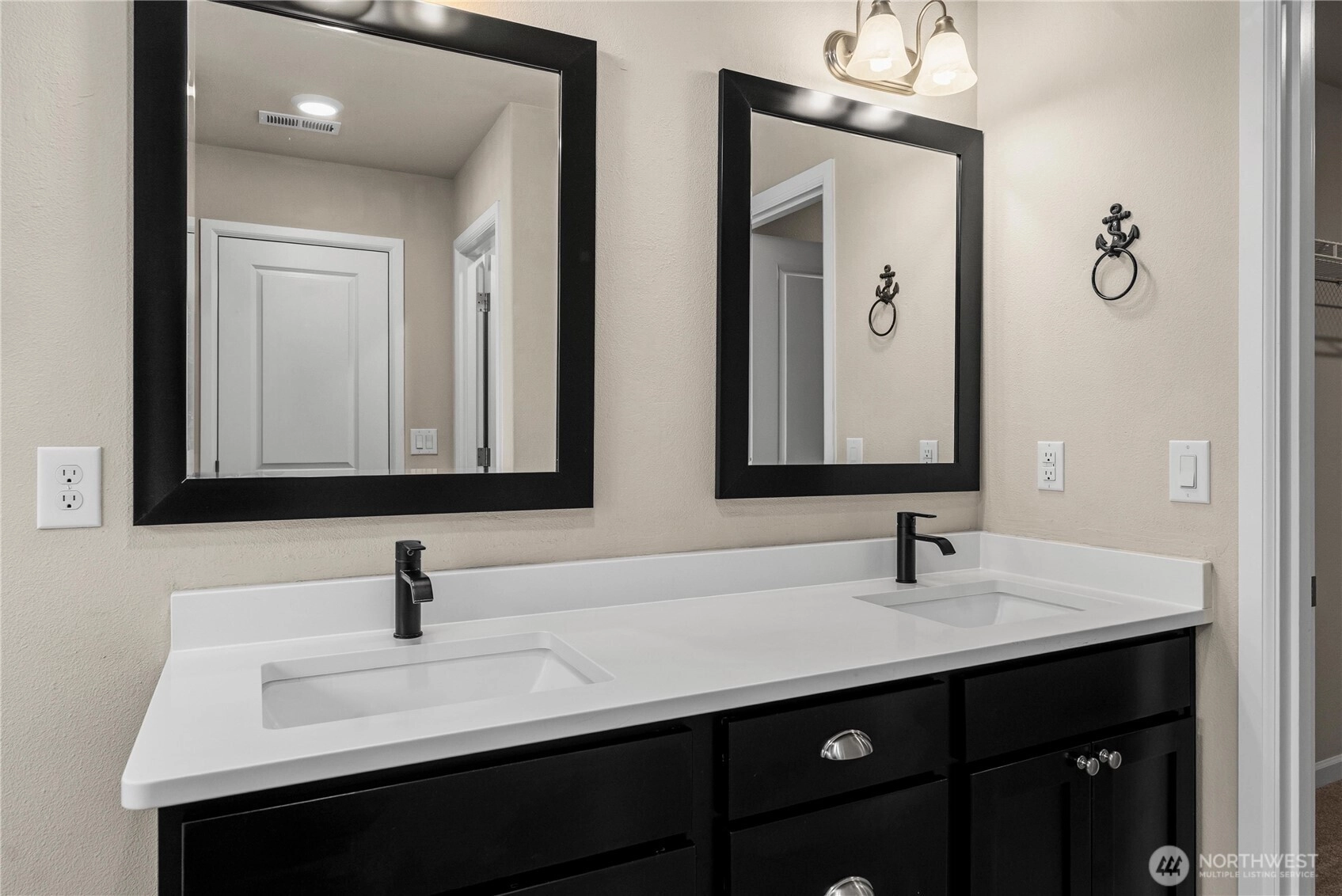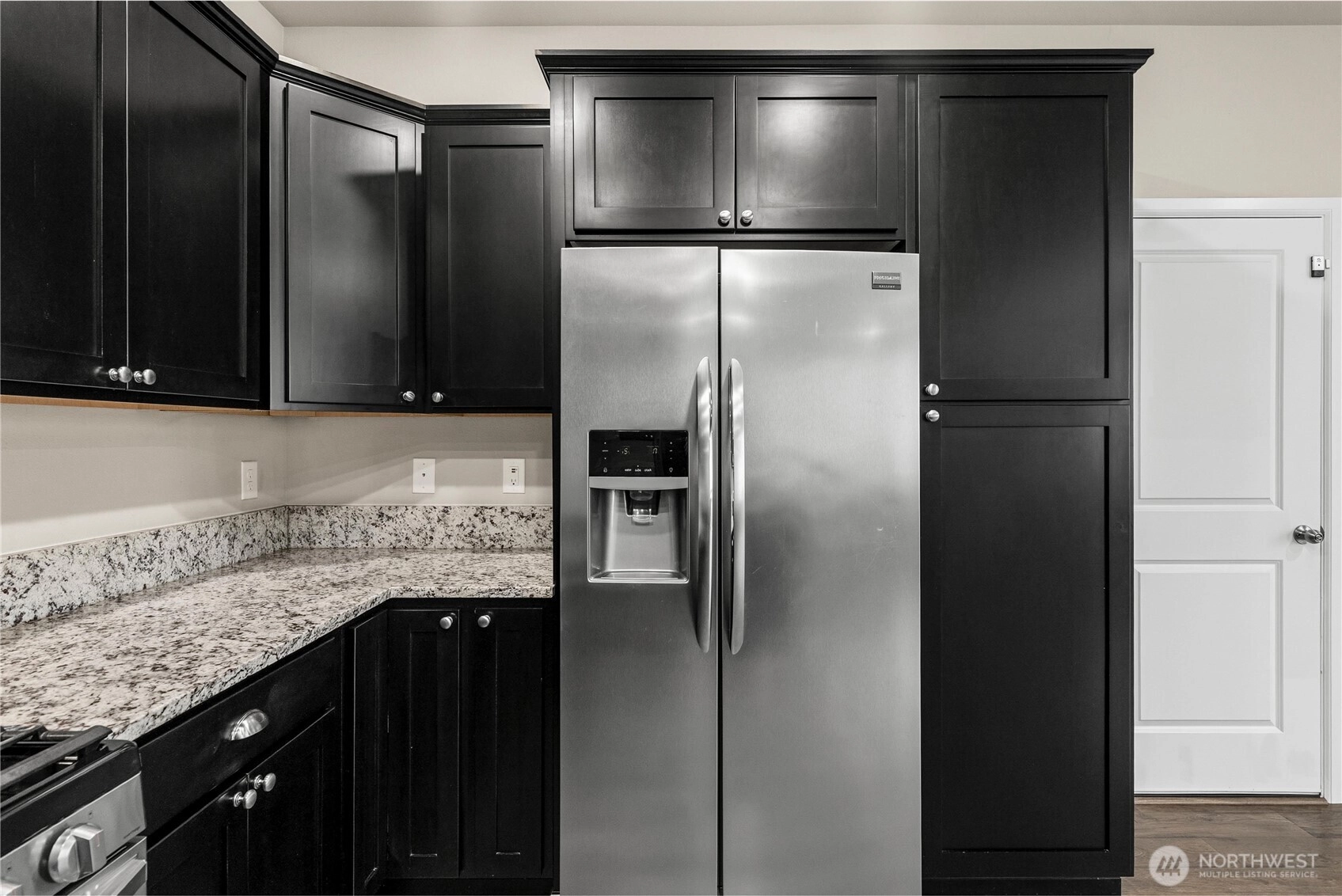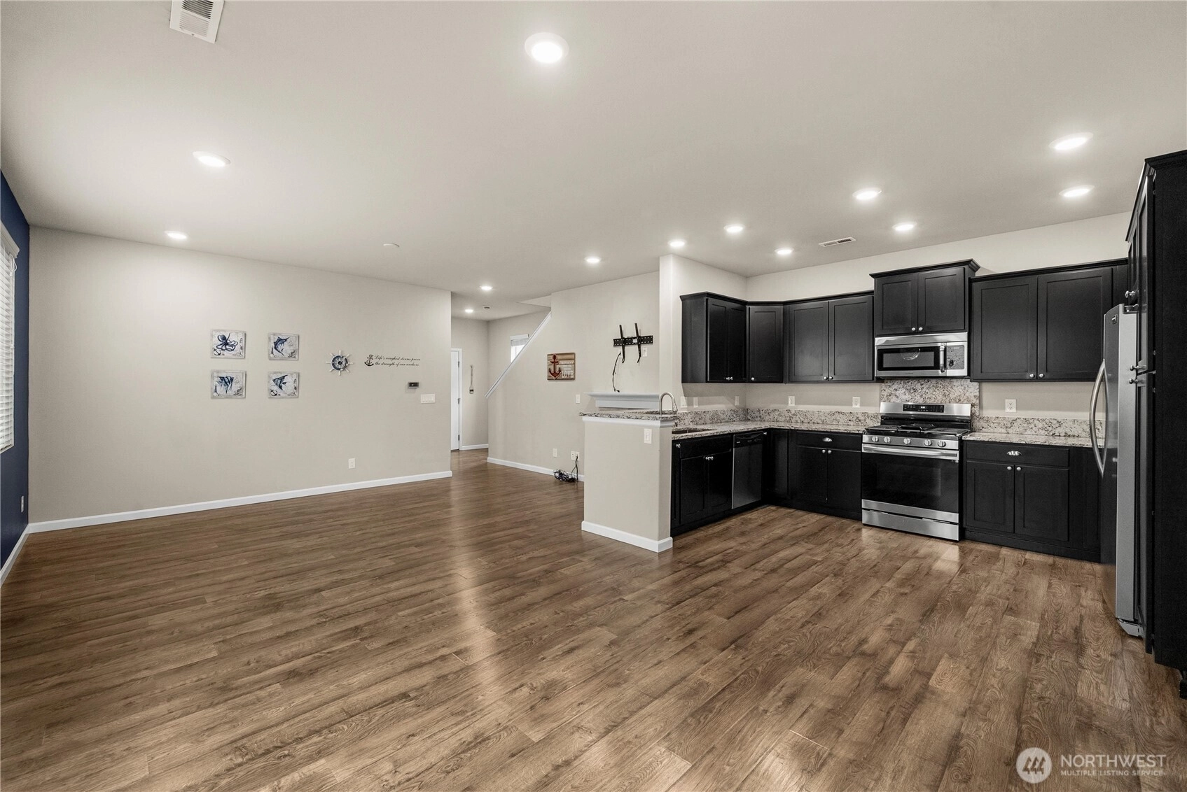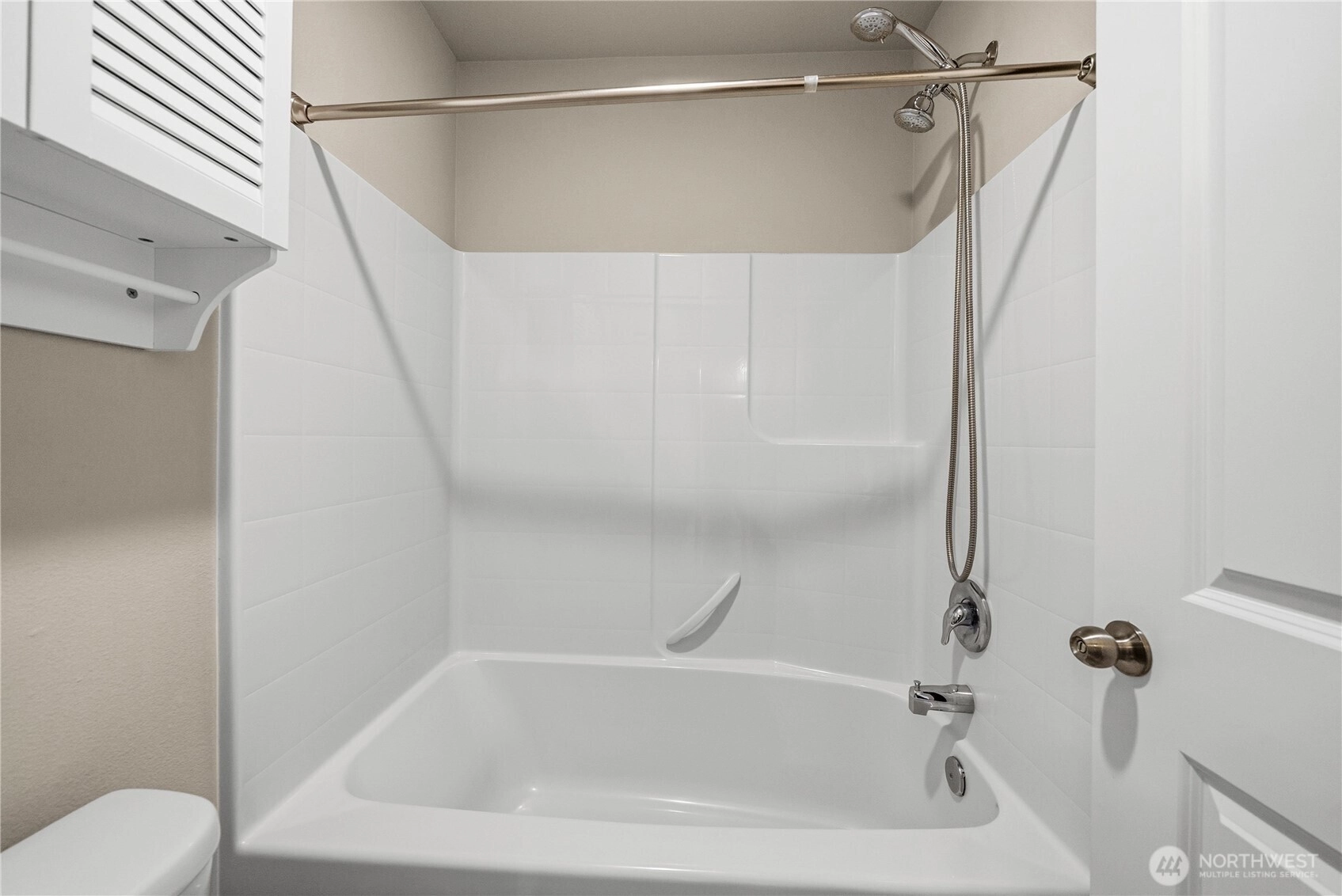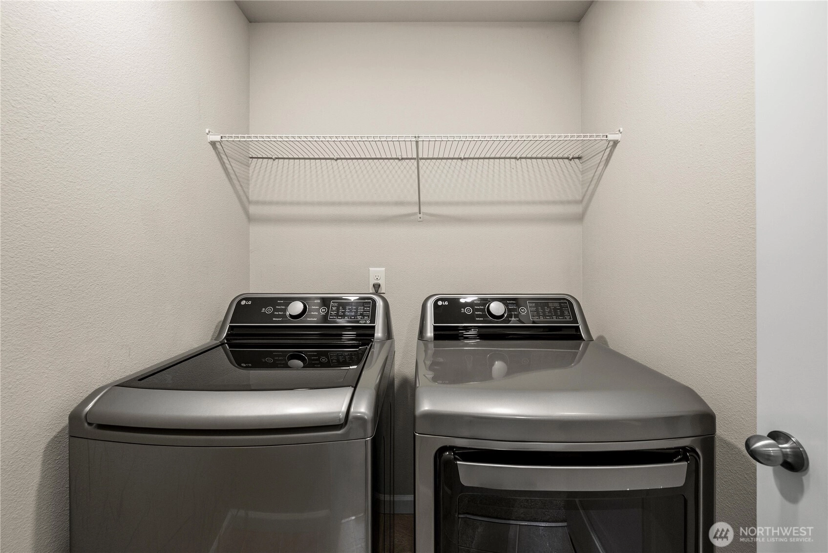 This stunning home welcomes you with rich laminate hardwood floors that flow seamlessly throughout the main level, creating a warm and inviting atmosphere from the moment you step inside. A main-floor bedroom and full bath offer the perfect setup for guests, multigenerational living, or a private home office. The open-concept living and dining areas are designed for comfort, filled with natural light and anchored by a spacious layout that makes everyday living and entertaining effortless. The gourmet kitchen features stainless steel appliances, abundant cabinetry, generous counter space, and a layout that keeps you connected to the heart of the home while hosting. Upstairs, retreat to the primary suite—a peaceful haven complete with a luxurious ensuite bath offering dual sinks, a soaking tub, a walk-in shower, and an oversized walk-in closet. Two additional well-sized bedrooms, a convenient utility room, and abundant natural light throughout the upper level complete the space. Step outside to a fully fenced backyard designed for low-maintenance living, featuring artificial turf that stays green year-round—perfect for relaxing, entertaining, or play without the upkeep. Ideally located near I-5 and JBLM, this home offers easy commuting while keeping you close to shopping, dining, and everyday conveniences. Enjoy the added benefit of being within walking distance to schools, parks, and scenic trails, making this home the perfect blend of comfort, convenience, and lifestyle.