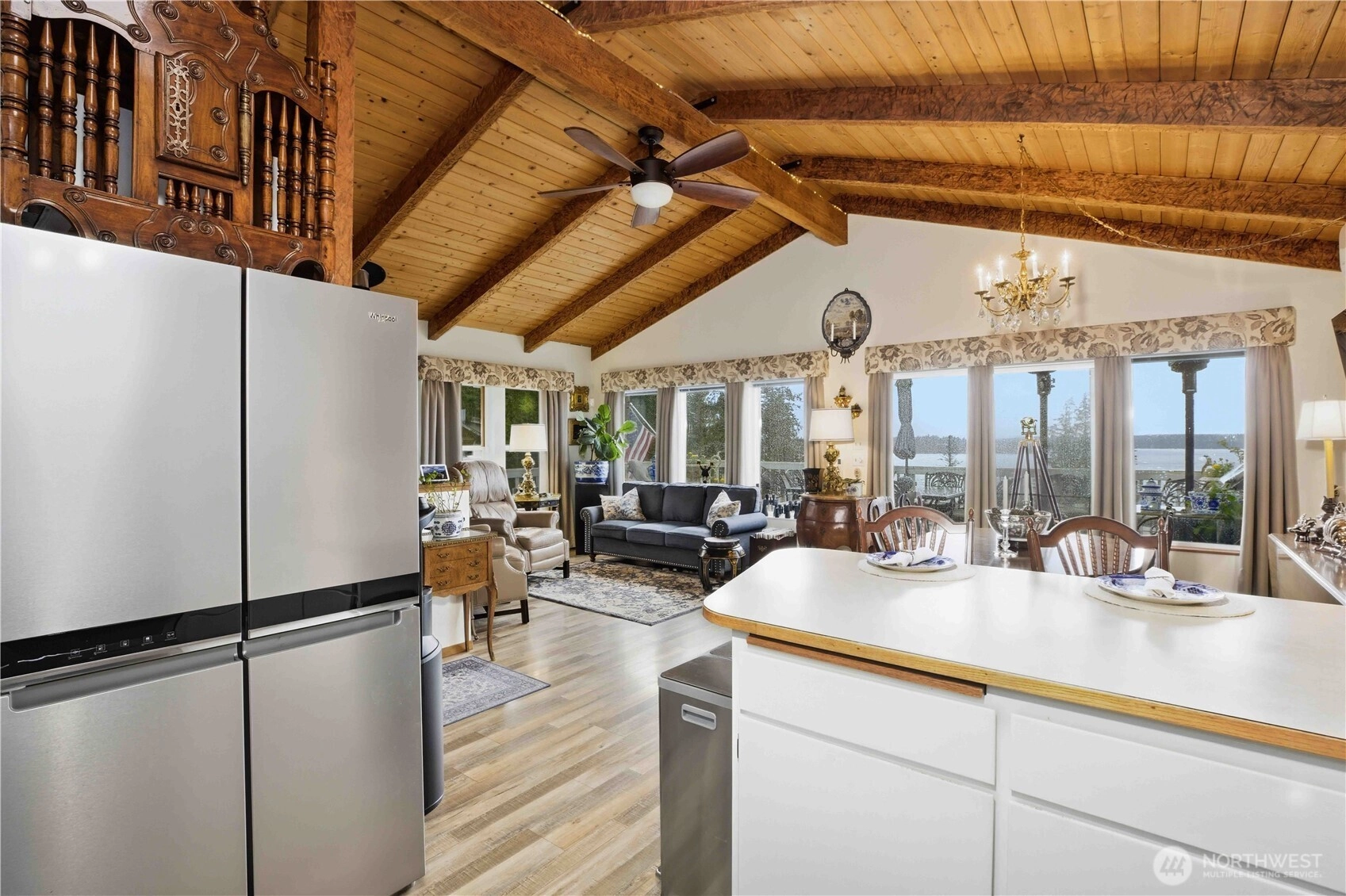Take in a breathtaking sunset, enjoying sweeping water views of Taylor Bay, Nisqually Reach, and Harstine Island from this inviting three-bedroom, 1.75-bath home located in the desirable gated community of Taylor Bay. Set against a beautiful coastal backdrop, this home blends peaceful surroundings with modern comfort. Designed for year-round enjoyment, it features newer mini-split systems for efficient heating and cooling, a brand-new pellet stove for cozy evenings, and a new refrigerator and dishwasher. All appliances convey, creating a move-in-ready opportunity. The open and welcoming living spaces provide the perfect setting to take in ever-changing water views, whether enjoying quiet mornings or hosting friends. Natural light enhances the connection between indoor living and the scenery outside. The renovated private bathroom showcases modern finishes and unique design elements, adding comfort and character. Step outside and enjoy private community beach access with boat launch, ideal for beachcombing, kayaking, or simply relaxing in the tranquility of Puget Sound living. Located in a secure, gated neighborhood known for its natural beauty and strong sense of community, this home offers a rare blend of scenic views, thoughtful updates, and lifestyle amenities—perfect as a full-time residence or serene retreat. HOA dues include water and sewer!