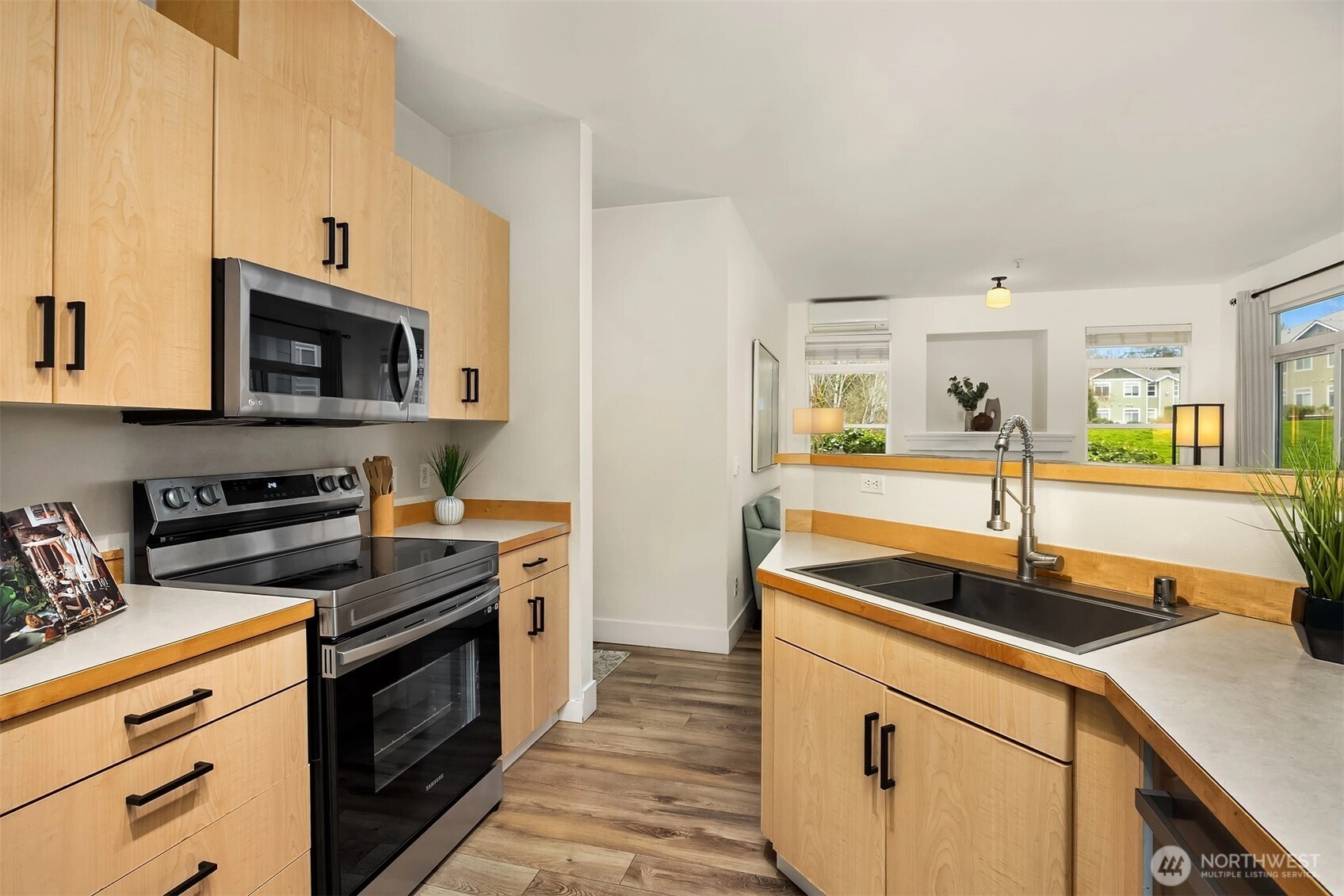 Rare opportunity to own a highly sought-after 3-bedroom, 2-bath ground-floor unit in the desirable Cameray community of Sammamish. Backing to a beautiful green space, this light-filled residence offers peaceful, private views and a quiet setting that is hard to find. Thoughtfully designed with seamless single-level living, the open-concept layout features generous living and dining areas with large windows that frame lush greenery and fill the home with natural light. The well-appointed kitchen flows effortlessly into the main living space, perfect for both everyday living and entertaining. The private primary suite includes ample closet space and an en-suite bathroom, while two additional bedrooms provide flexibility for guests, a home office or hobbies. Enjoy easy ground-floor access and a private patio overlooking serene open space, ideal for morning coffee or relaxing evenings surrounded by nature. Set within a beautifully maintained community with walking trails, pool, and clubhouse amenities. Conveniently located near parks, shopping, dining, and top rated schools, with easy access to Redmond and Issaquah. Homes with this combination of space, setting, and privacy rarely come available - don't miss it!