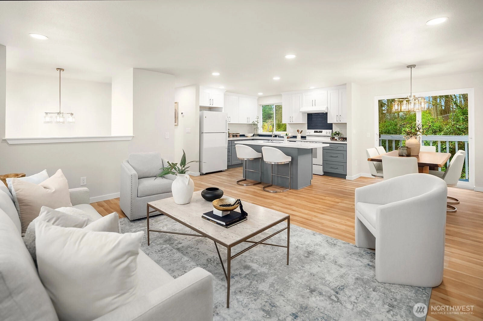 Stunning renovated model home in the highly desirable Fairwood community in Renton! This move-in ready 4 bed, 2 bath home features beautiful hardwood floors throughout and a warm, inviting layout. Spacious bonus/entertainment room offers flexible living—ideal as a media room, guest suite, or potential 2nd primary (lives like a 5-bed). Fully updated kitchen with brand-new appliances. New energy-efficient windows provide abundant natural light and year-round comfort. Originally built as a showcase model with high-performance green energy features for enhanced efficiency and savings. Enjoy the rare benefit of a community park right next door—perfect for outdoor living and relaxation. Conveniently located near shopping, dining, schools, and major commuting routes. A must-see!