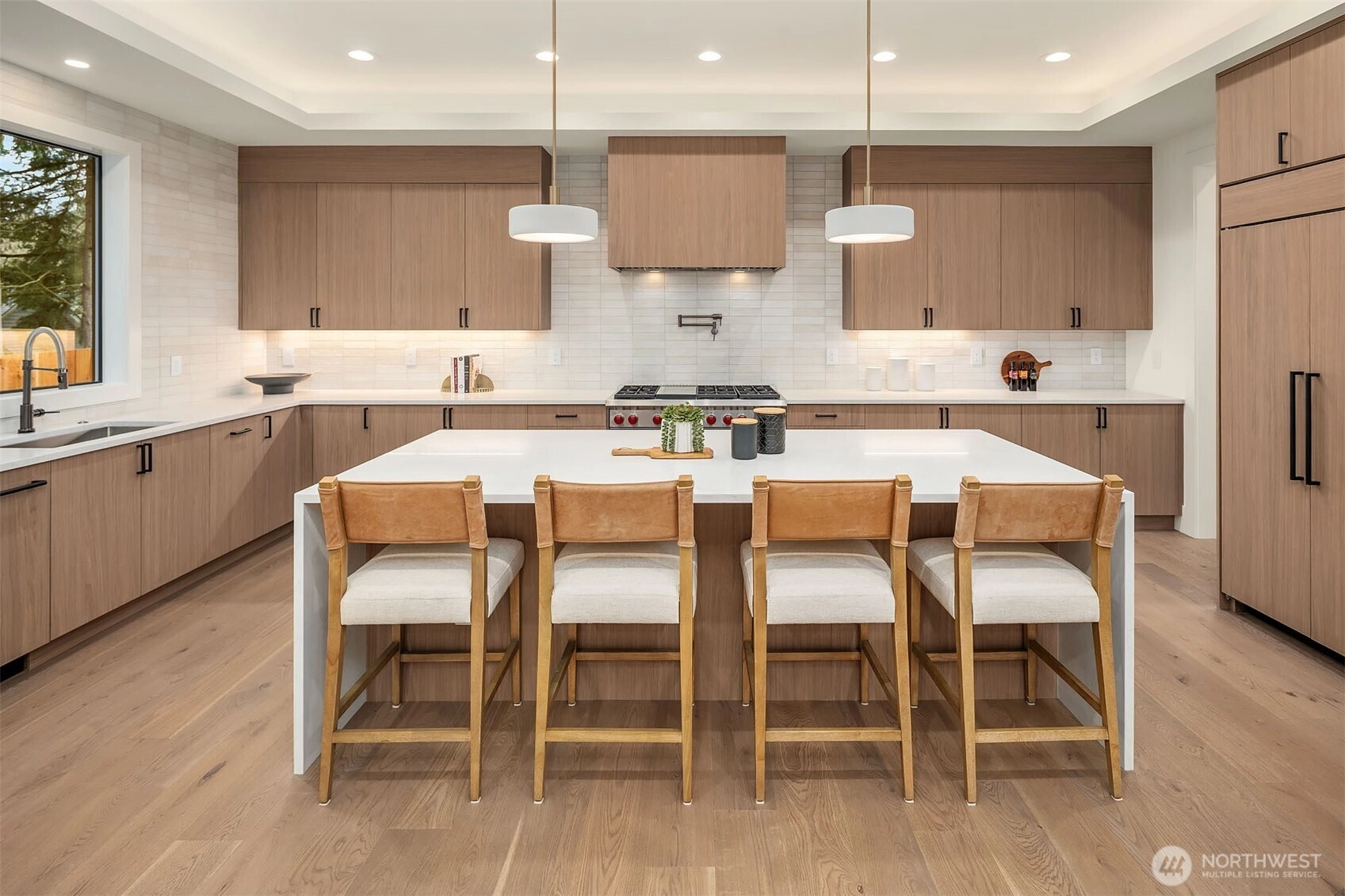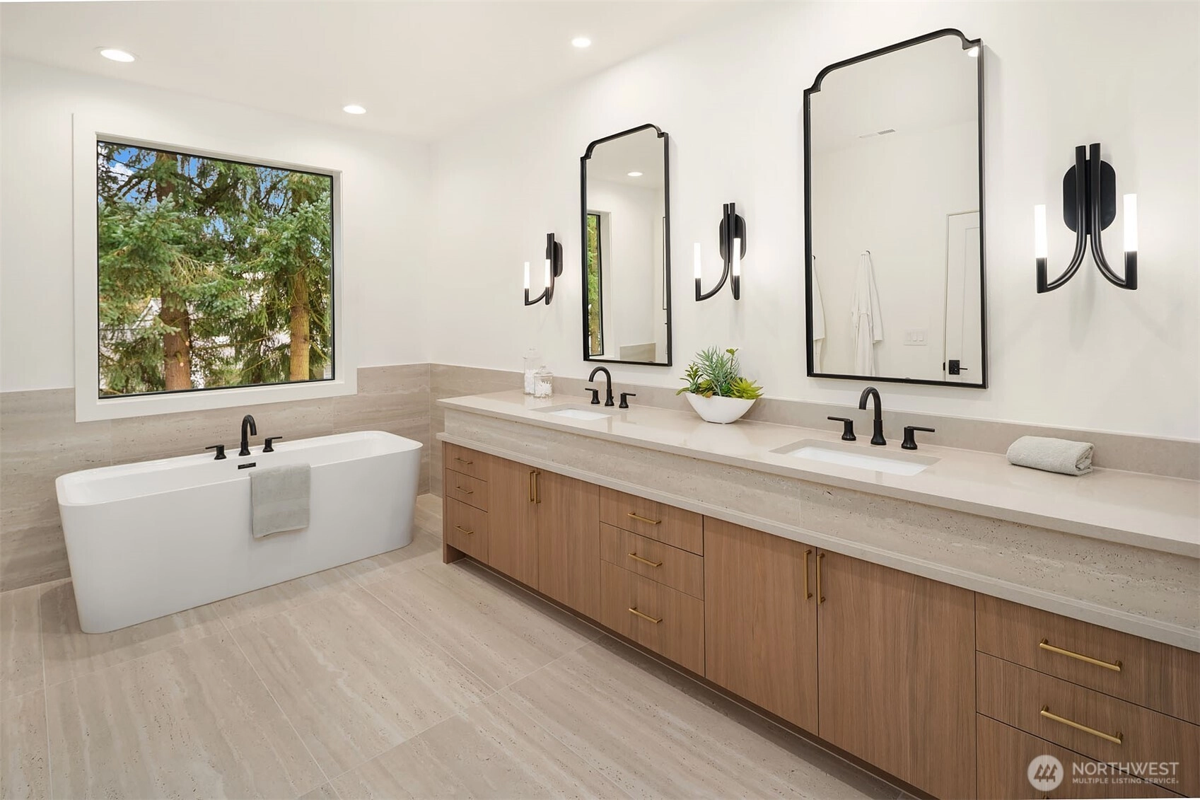 MN Custom Homes releases a transitional design in sought after Eastgate. East facing front door. Chef's kitchen with high-end appliances and entertaining island seamlessly connects to the two story great room. Private main floor guest retreat. Primary suite with stunning 5-piece bath & heated floors. Outdoor covered living space with fireplace. Smart Home and green features throughout including solar panels. 3 car wide garage. Nationally ranked Bellevue Schools including Newport HS and Tyee MS. Conveniently location, close to schools, shopping, I-90 & DT Bellevue.