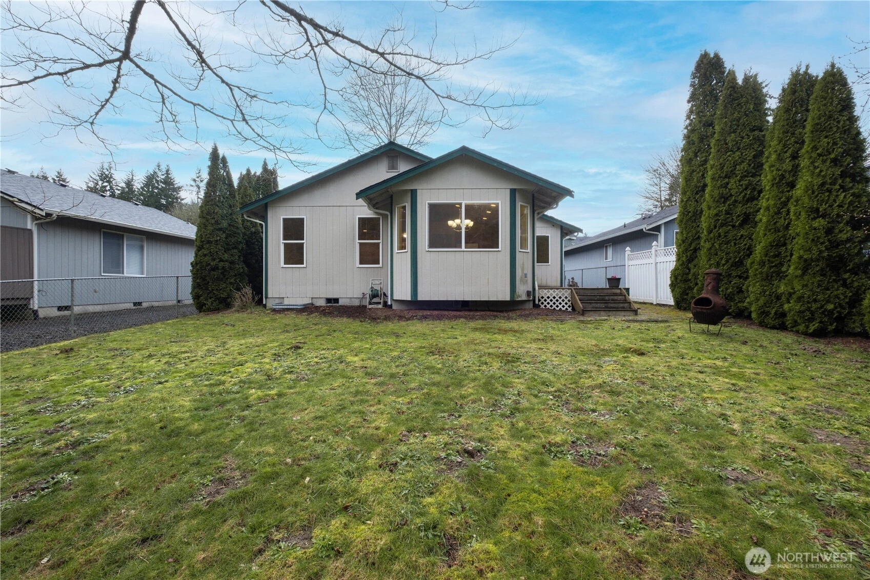 Welcome home to this charming Craftsman-style rambler tucked away on a quiet dead-end street in South Kitsap. Built in 2000, this well-maintained 3-bedroom, 1.75-bath home offers 1,270 sq ft of comfortable, single-level living on a level lot. Step inside to vaulted ceilings and a light-filled layout that creates an open, airy feel throughout the main living spaces. The kitchen features ample cabinetry, a functional layout with eating space, and seamless flow into the dining and living areas—perfect for everyday living and entertaining. French doors lead to a back deck overlooking a spacious yard with room to garden, play, or relax. The primary suite includes a private bath, while two additional bedrooms offer flexibility for guests, home office, or hobbies. Additional highlights include double-pane windows, ceiling fans, forced air heating, and an attached 2-car garage with extra driveway parking. Conveniently located near local amenities, schools, and commuter routes! This move-in ready home is ready for you to make it your own, and offers the perfect blend of comfort, functionality, and location.