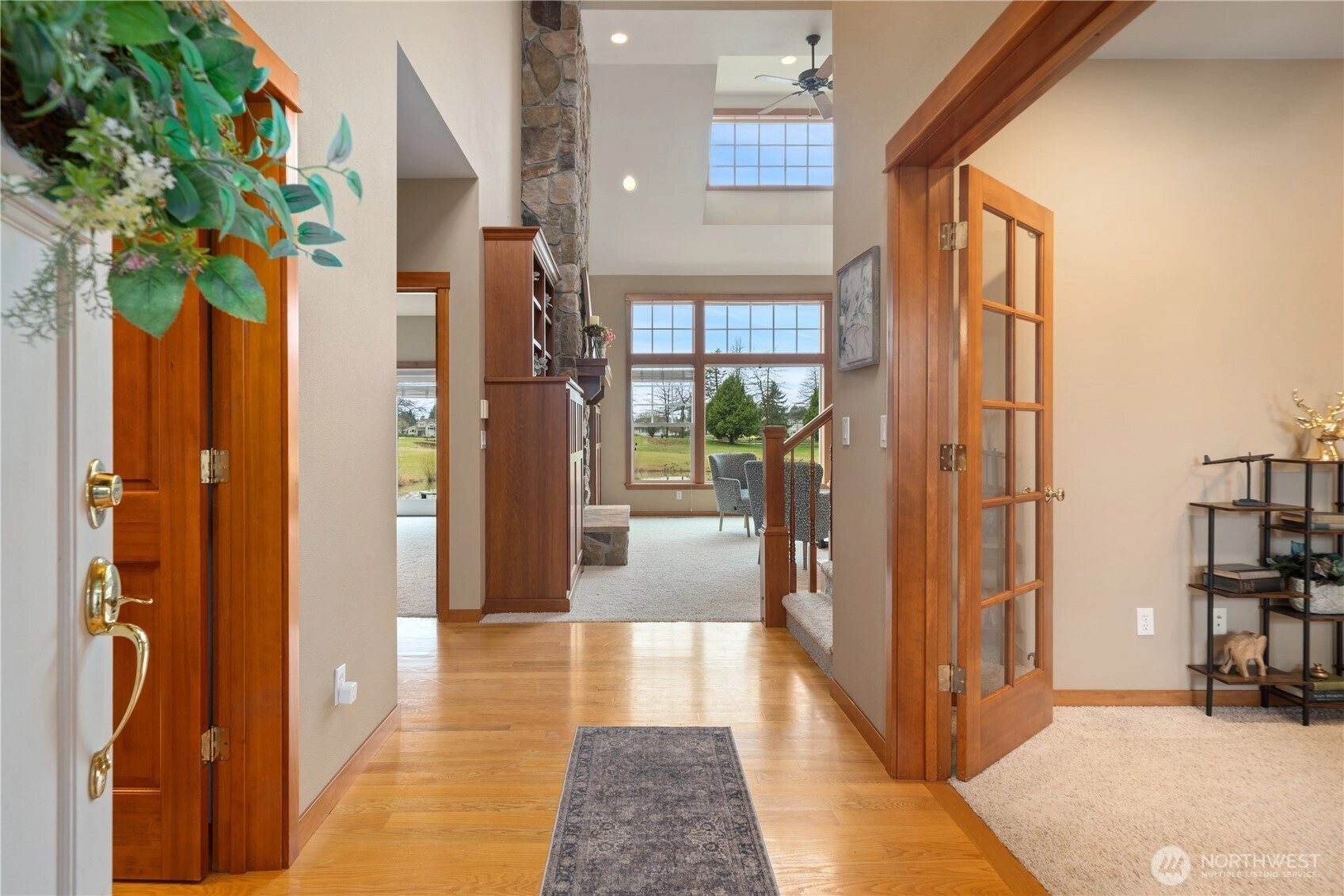 Discover a beautifully positioned home in the Homestead community, offering a peaceful setting with expansive territorial views, including a pond and open green space behind the property. A spacious deck spans the entire back of the home, creating an ideal space to relax, entertain, and take in the surrounding scenery. Inside, soaring vaulted ceilings add a sense of openness and light, while the main floor primary suite provides comfort and convenience. A dedicated main floor office offers flexibility for work or creative space, and the upstairs bonus room adds even more versatility. Tucked away on a quiet cul-de-sac, this home offers a rare combination of space, setting, and versatility in a classic Lynden neighborhood.