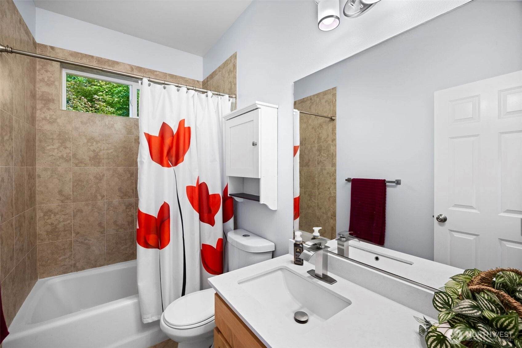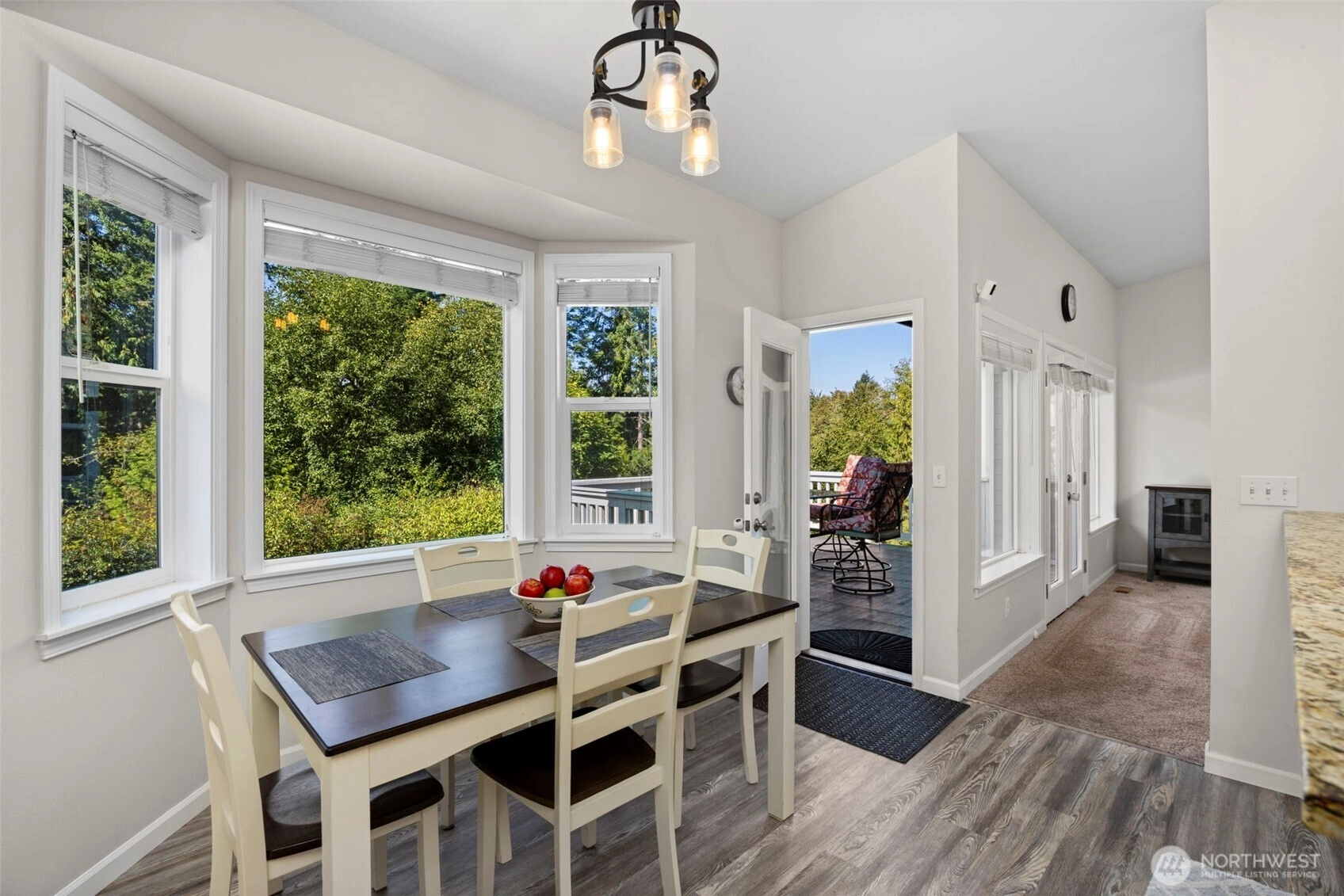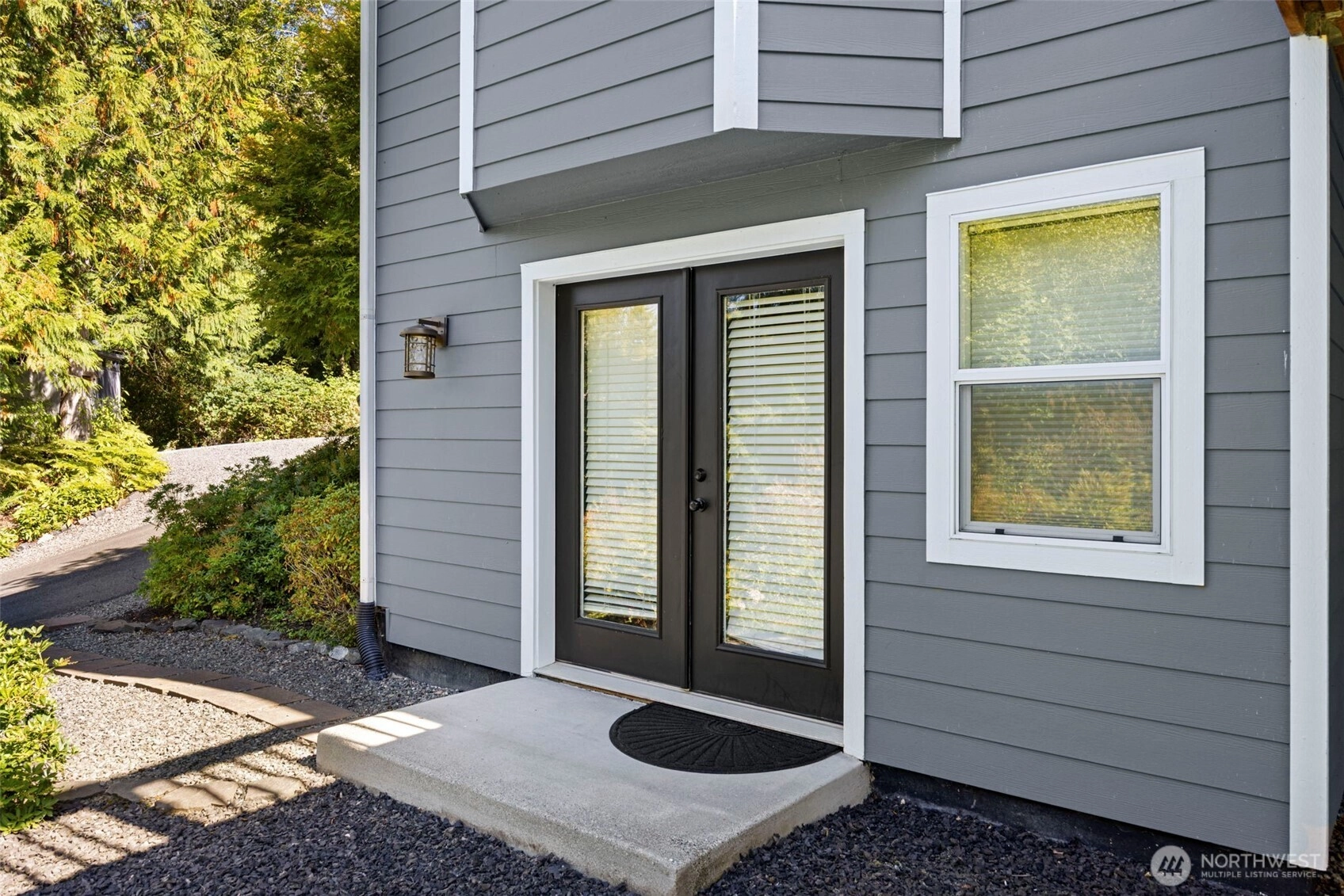Beautiful, bright & airy 3 BR + Large Bonus, provides complete Main Level living + separate multi generational studio apartment. This home offers a thoughtful welcoming layout w/ vaulted ceilings on most of main floor. Sunny west facing Kitchen w/ granite counters, stainless appliances & skylights. Spacious living room w/gas fireplace & sun deck. Huge primary retreat w/ valued ceilings & private deck. Bright ensuite w/ gorgeous newly updated custom shower, soaking tub, substantial dual closets & skylight. Lower level family room w/ gas fireplace + 3rd BR & full bath. Studio Apartment with private entrance - Kitchen, 3/4 bath & laundry. Huge storage area on lower level. Large fenced dog run. A/C for warm summer days. Enjoy salt air breezes from this gorgeous wooded acre (cocooned by 3 acres of open space), just mins from Hood Canal, Seabeck marina & Silverdale amenities. Award winning CK Schools.