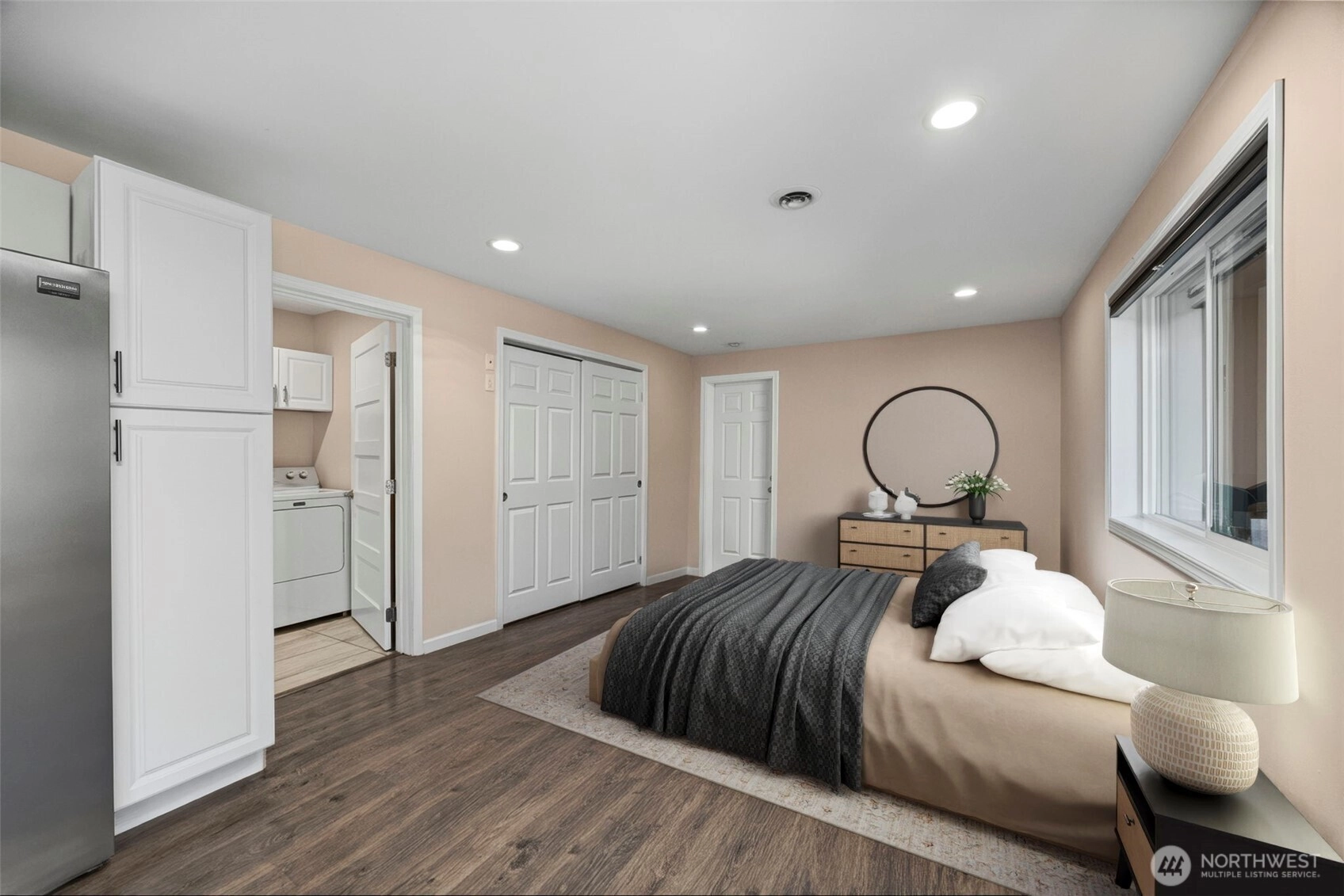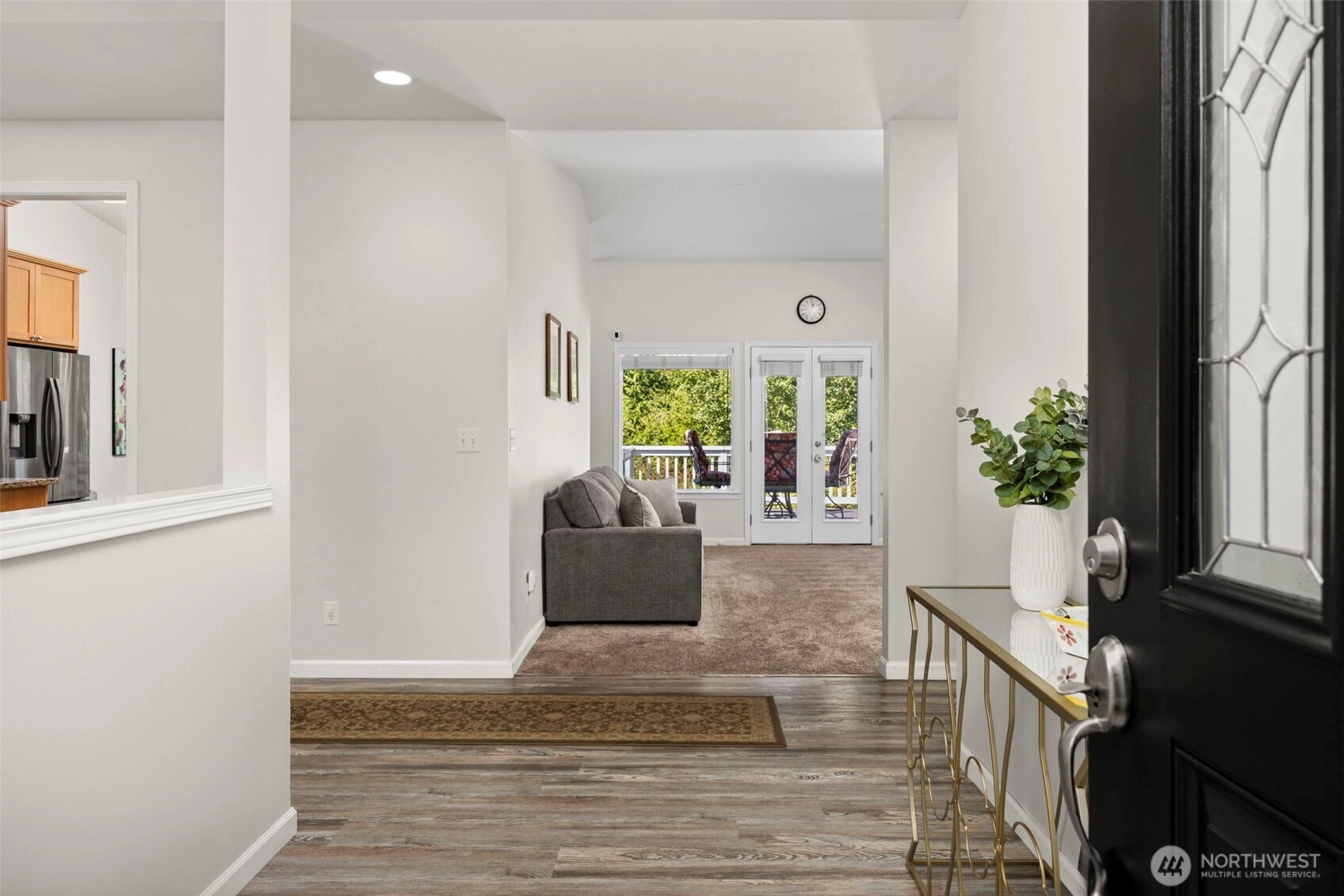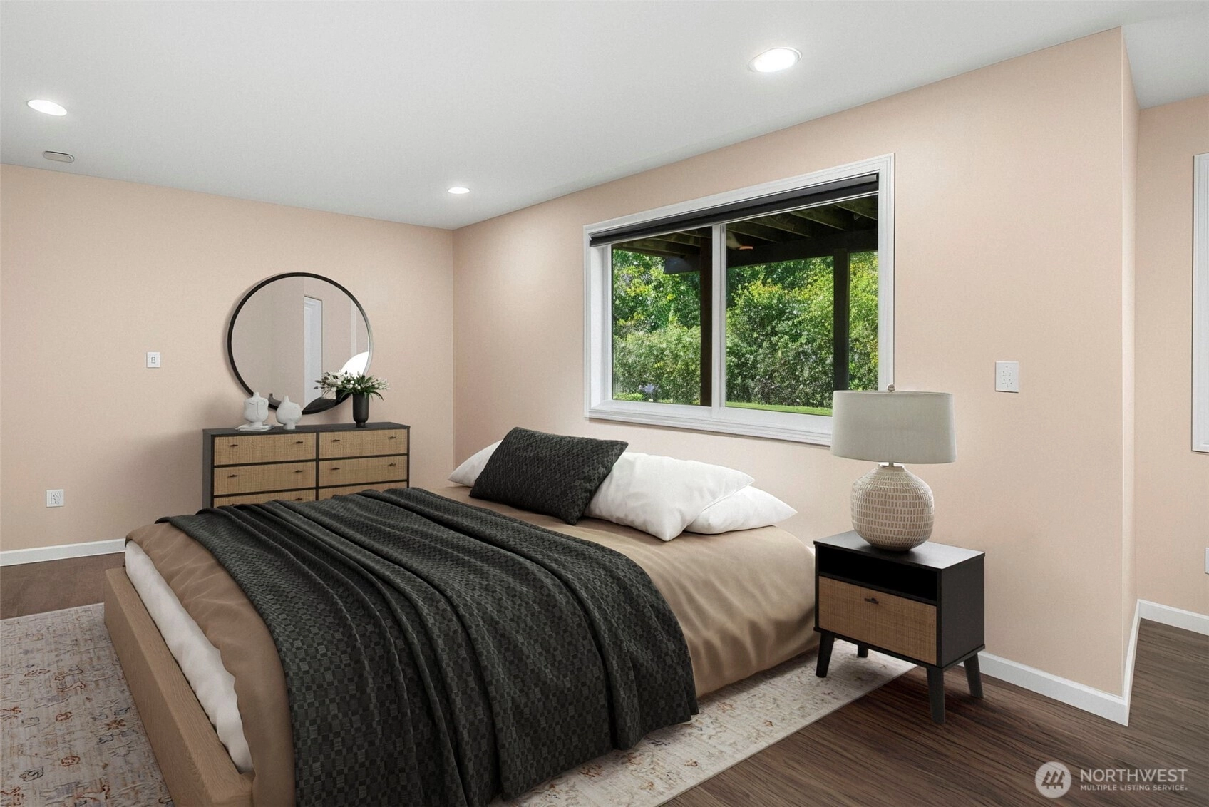 Beautiful, bright & airy 3 BR + Large Bonus, provides complete Main Level living + separate multi generational studio apartment. This home offers a thoughtful welcoming layout w/ vaulted ceilings on most of main floor. Sunny west facing Kitchen w/ granite counters, stainless appliances & skylights. Spacious living room w/gas fireplace & sun deck. Huge primary retreat w/ valued ceilings & private deck. Bright ensuite w/ gorgeous newly updated custom shower, soaking tub, substantial dual closets & skylight. Lower level family room w/ gas fireplace + 3rd BR & full bath. Studio Apartment with private entrance - Kitchen, 3/4 bath & laundry. Huge storage area on lower level. Large fenced dog run. A/C for warm summer days. Enjoy salt air breezes from this gorgeous wooded acre (cocooned by 3 acres of open space), just mins from Hood Canal, Seabeck marina & Silverdale amenities. Award winning CK Schools.