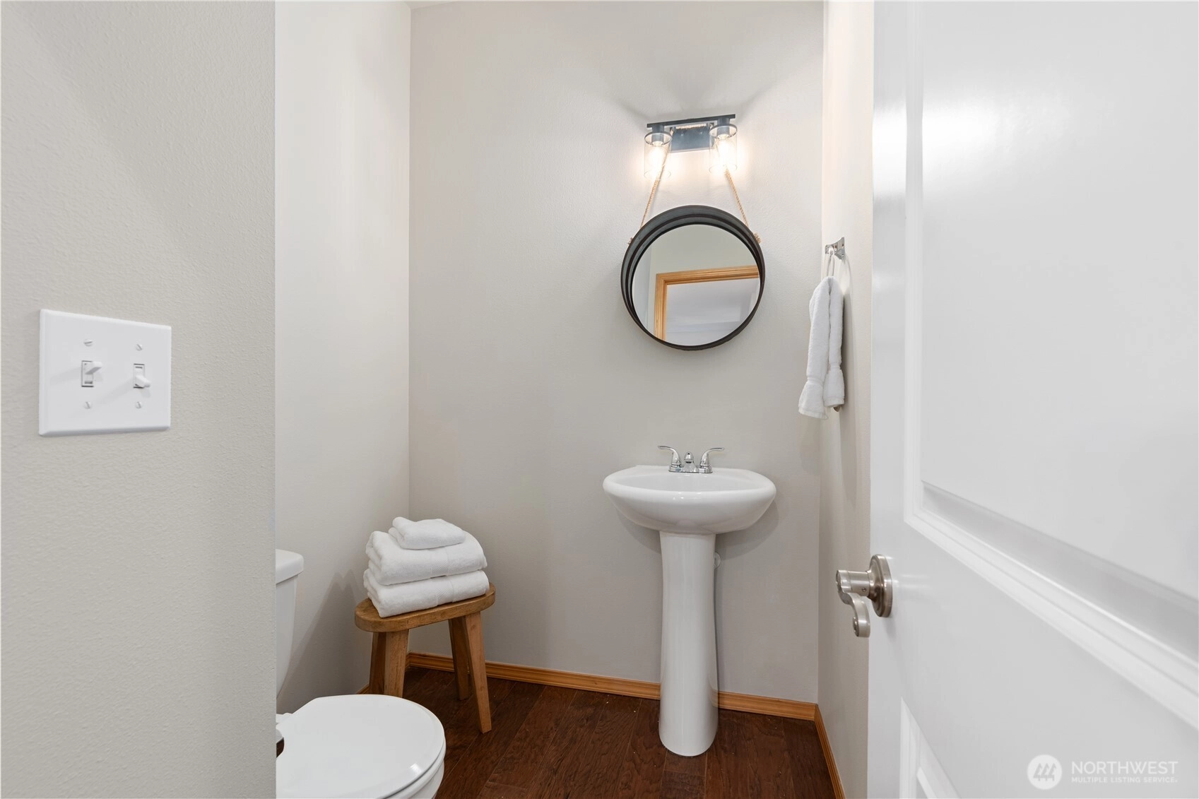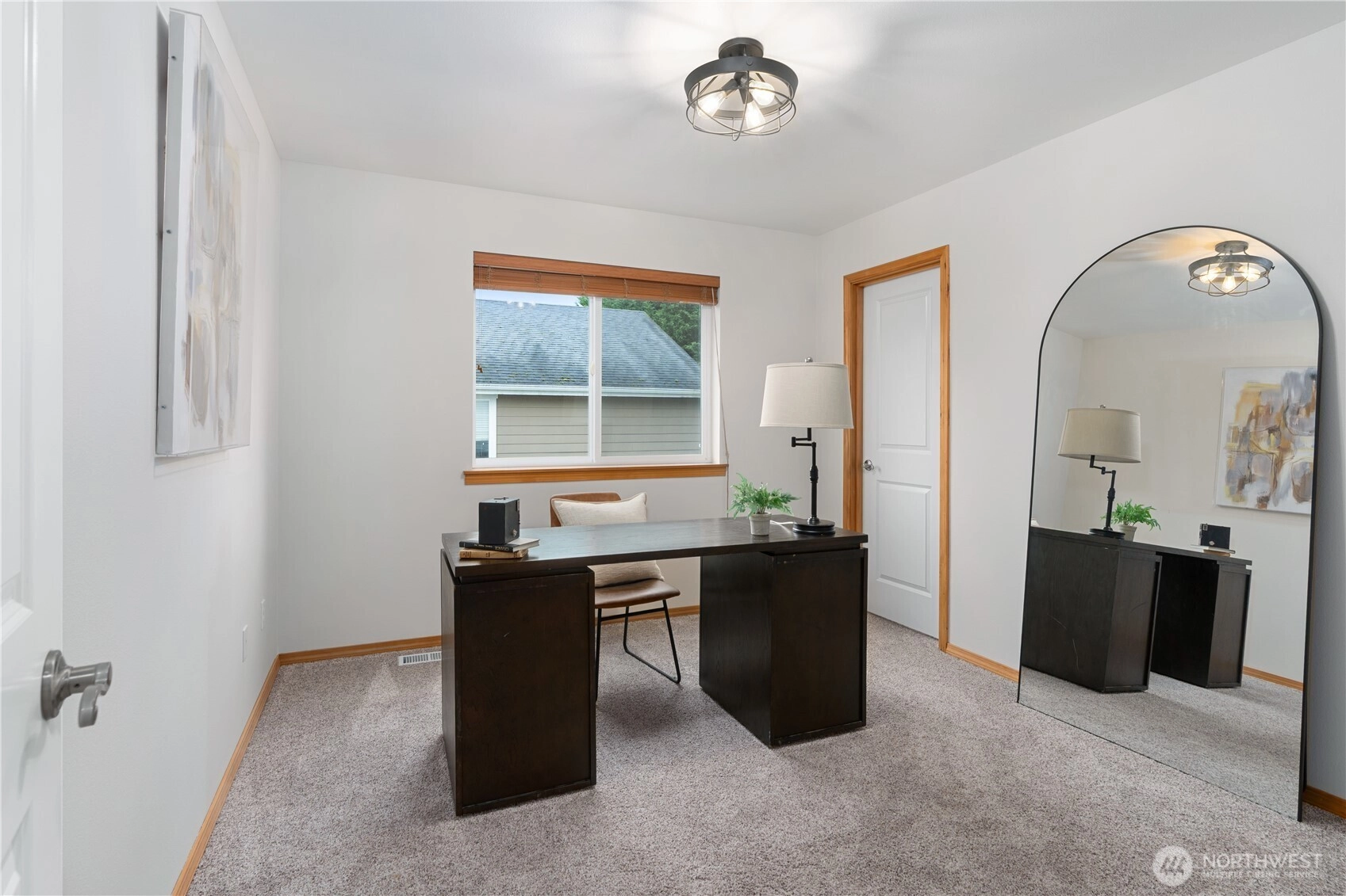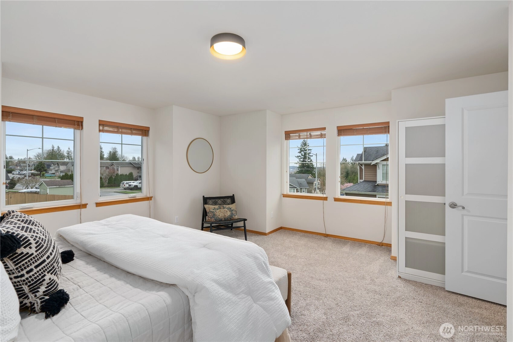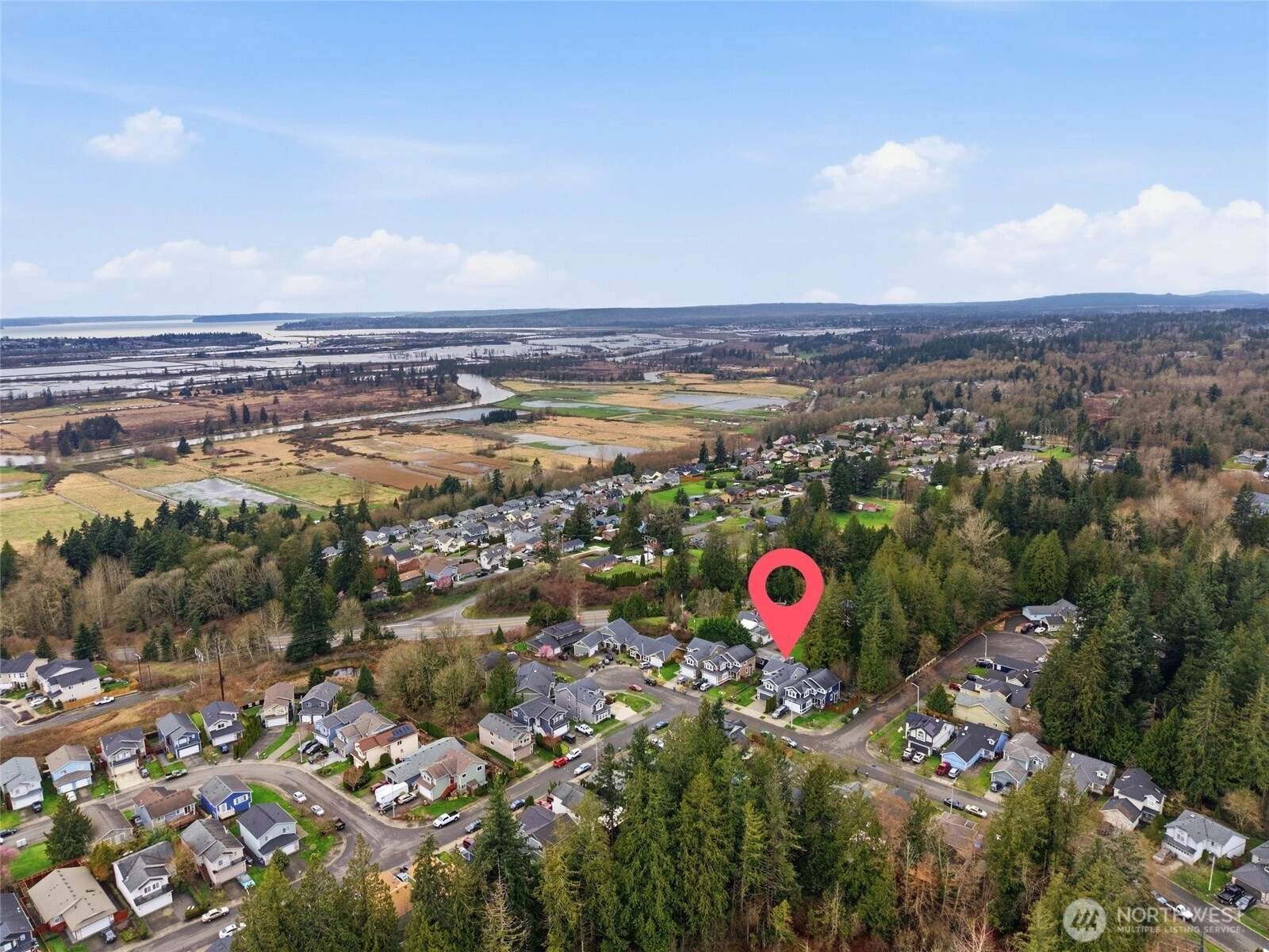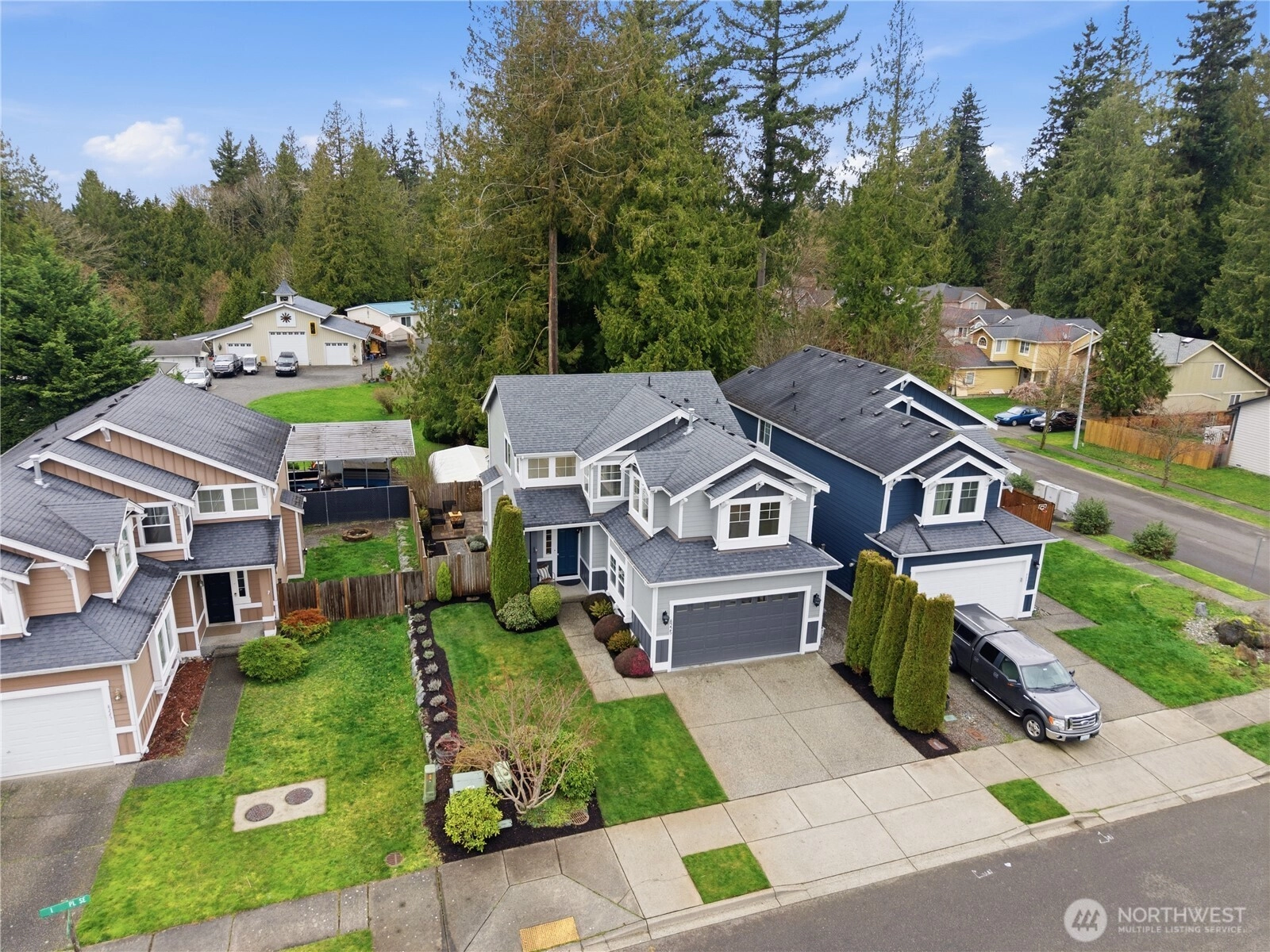 Exceptionally maintained 4 bed, 2.5 bath home offering more than 2,200 sqft in a well established neighborhood known for its charm, mature landscaping, and welcoming community feel. Set on a private greenbelt lot, the property enjoys a peaceful natural backdrop with added peekaboo Olympic and Sound views, creating beautiful sunset moments while still being close to everyday conveniences. Inside, the home features engineered hardwood floors, fresh interior paint, updated lighting, newer carpeting, and new light fixtures throughout. The spacious kitchen is designed for both daily living and entertaining, showcasing a large center granite island with bar seating, generous counter space, tall cabinetry, stainless steel appliances, and warm, rich finishes. The open great room layout flows seamlessly into the dining and living areas with tall ceilings, centered around a cozy fireplace with custom mantel and a dramatic wall of windows framing lush greenbelt views. Upstairs, the primary suite offers a relaxing retreat with serene tree lined outlooks, custom built in closet design, and a luxurious 5 piece bath with dual sinks, soaking tub, shower, and walk in closet. Three additional bedrooms are generously sized, offering flexibility for guests, office space, or hobbies. The guest bath has been recently updated with new cabinetry, countertops, and modern lighting. Covered front and back porches, fenced backyard, patio + newer exterior paint. [WELCOME HOME]