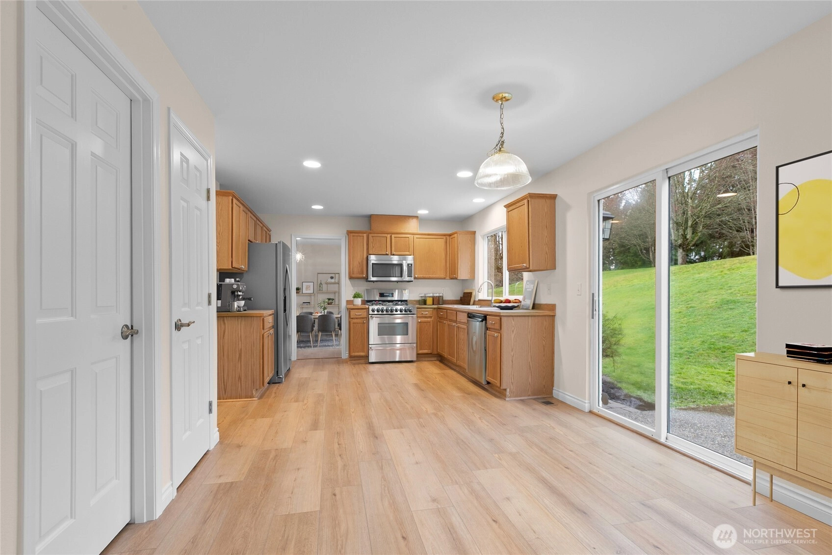 Beautifully updated home in The Foothills. This home features 3 bedrooms, 2.5 bathrooms, and an open concept floor plan. The kitchen offers new stainless-steel appliances and opens to the family room with a gas fireplace. There is also a casual dining area, pantry and slider to the back patio and yard. The open dining and living room's big windows and vaulted ceilings give an airy feel. Lower level also offers the laundry room and convenient powder room. Upstairs you'll find the generous primary suite, complete with full bathroom and walk-in closet. Two additional bedrooms and hallway bath complete the space. The Hardi plank siding and new roof were installed in 2023. Brand new upgrades include solid surface flooring throughout, all new interior paint, all new base trims, new kitchen and bathroom fixtures and new stainless-steel appliances. Low HOA dues. The Foothills neighborhood is minutes to downtown, freeways, shopping and outdoor recreation. Bring your vision to this move-in ready home. VIRTUALLY STAGED. Welcome Home!
