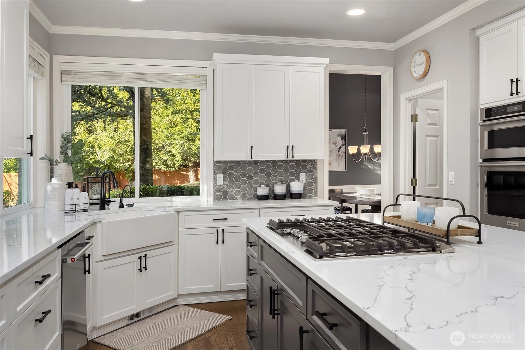 This Stunning home is located at the end of a quiet cul-de-sac, providing privacy & easy access to all that the sought after Trossachs neighborhood is known for - schools, parks, trails, and neighborhood community & connection. The circular floor plan has wonderful flow and sunlit spaces highlighted by a vaulted 2-story skylit entry that welcomes guests. On the main floor you will find a recently remodeled eat in- kitchen which opens to the dining rooms (both formal & informal); a spacious media room with glass paned French doors, built ins & gas fireplace; large office; living room with wood burning fireplace; and a mud room with cubbies for storage & laundry coming in from the 3-car garage. Off the main floor, step outside and feel the sun on your face as it filters through the trees as you are instantly transported to a mountain resort offering an expansive covered deck with built-in BBQ; sport court; bubbling water feature; & campfire. Upstairs, the primary suite feels like a true retreat with sitting room & luxurious 5 piece, skylit bath. You will also find 3 additional bedrooms and 2nd bath. Thoughtful updates throughout with newer windows, A/C & custom stained oak hardwood floors.Large 3 car garage with EV charger + work space & tons of storage in built in cabinets & finished attic space.