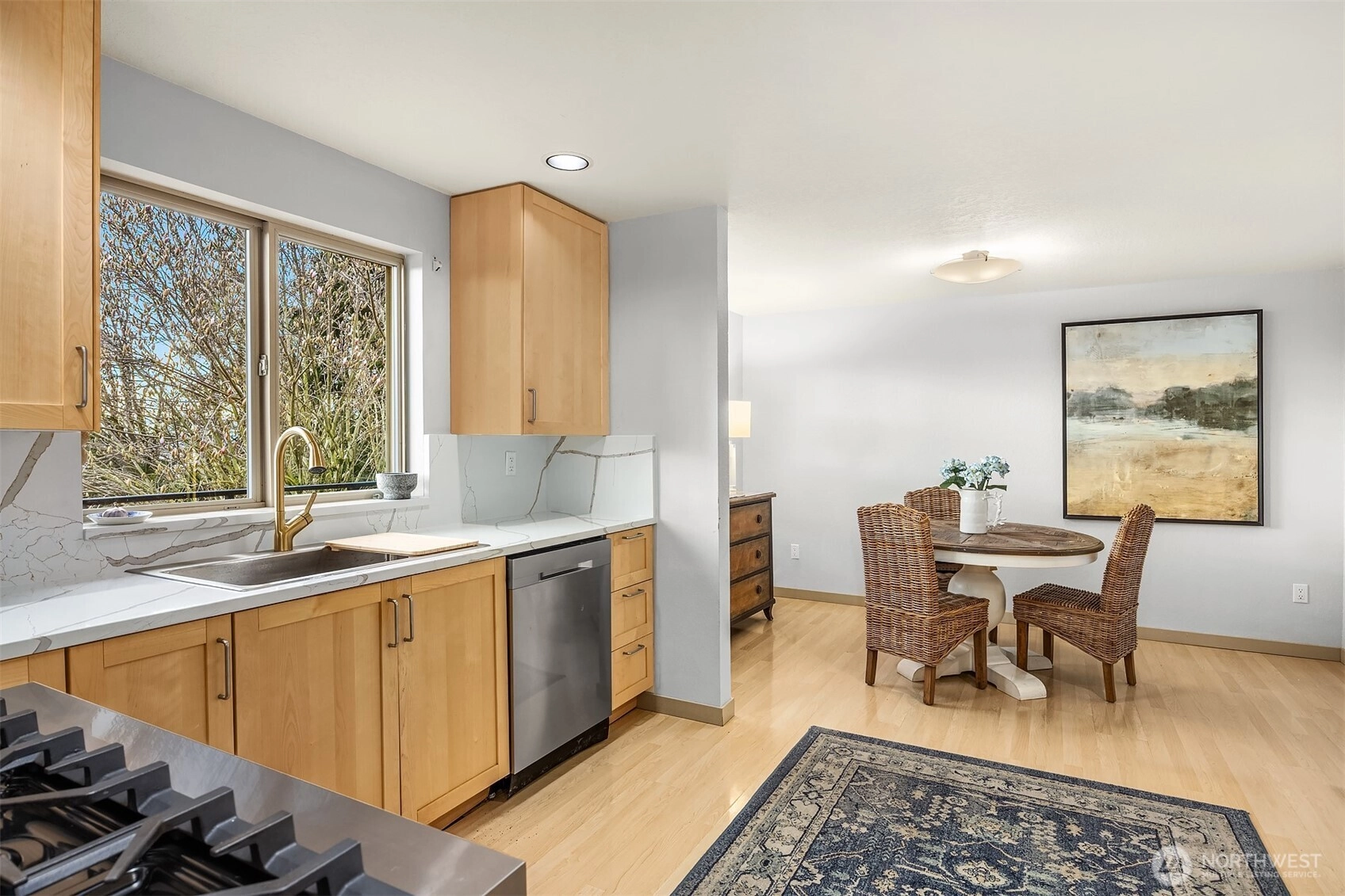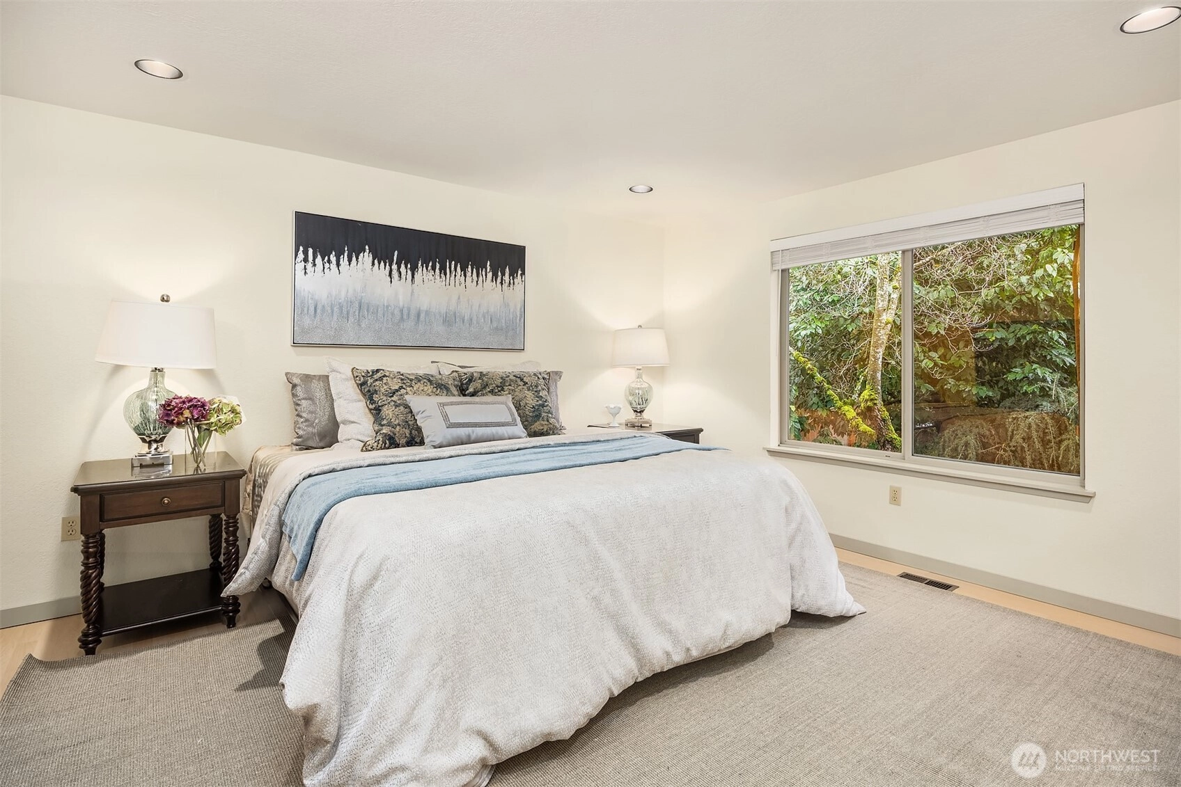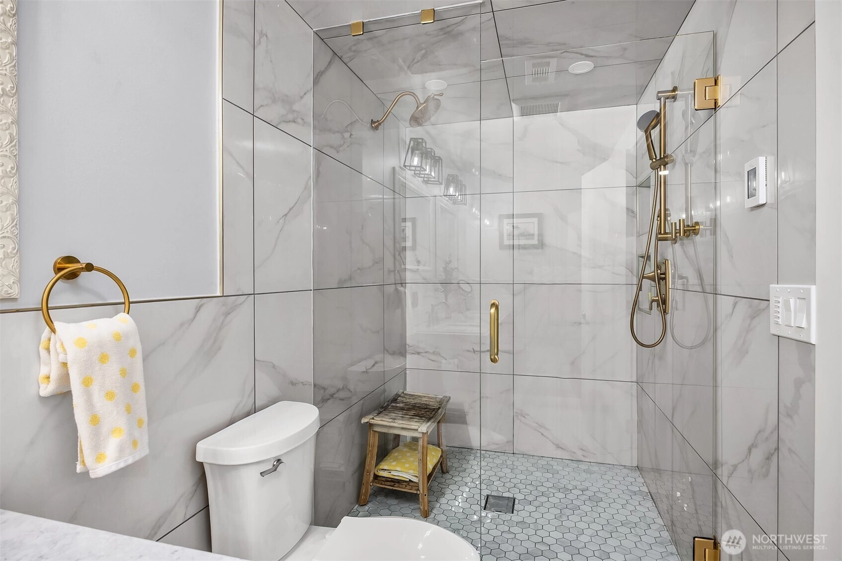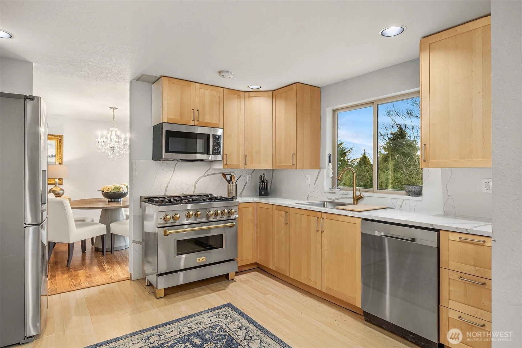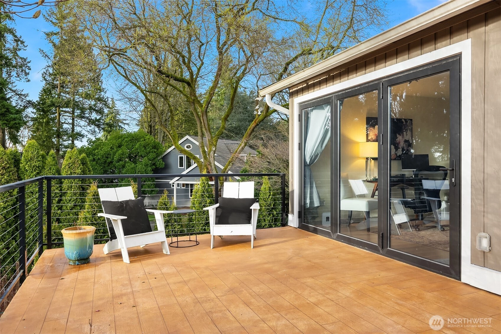Stellar Houghton location and beautiful, luxurious updates make this 5BR Kirkland home a 'must-see'. The entryway leads to the stunning living room space boasting shiplap wood vaulted ceiling, a grand stacked stone gas fireplace with hearth, and rich hardwood floors. The large kitchen with eating space has new quartz countertops & backsplash, a beautiful accent to the generous wood cabinetry and top end chef's grade SS appliance package. Nano doors open the dining room to seamlessly connect with the beautiful outdoors. A maintenance free composite deck runs the full length of the house and shares western skies with a stunning mature Magnolia. The Primary, two more bedrooms and full bath complete the main floor. A completely finished/renovated lower level invites the fun to begin. A custom, stacked stone and wood block Wet Bar with seating is the centerpiece of the Great Room. The brick, gas fireplace adds ambience to the multiple 'play' spaces. Sliding doors open to the stone patio with heaters, a 60ft turf putting green, fire pit & hot tub. Also on lower level, the temperature controlled, 500+ bottle wine cellar, laundry room & two more bedrooms. A stunning custom Bath w/double vanity, seamless shower w/full quartz surround & heated floors complete the luxury experience. Located close to I-405 and 520 gives you premier access to Redmond/Microsoft, Bellevue and DT Seattle. Google, Met Market and DT Kirkland are minutes away. Top ranked LW Schools and Lakeview Elementary.