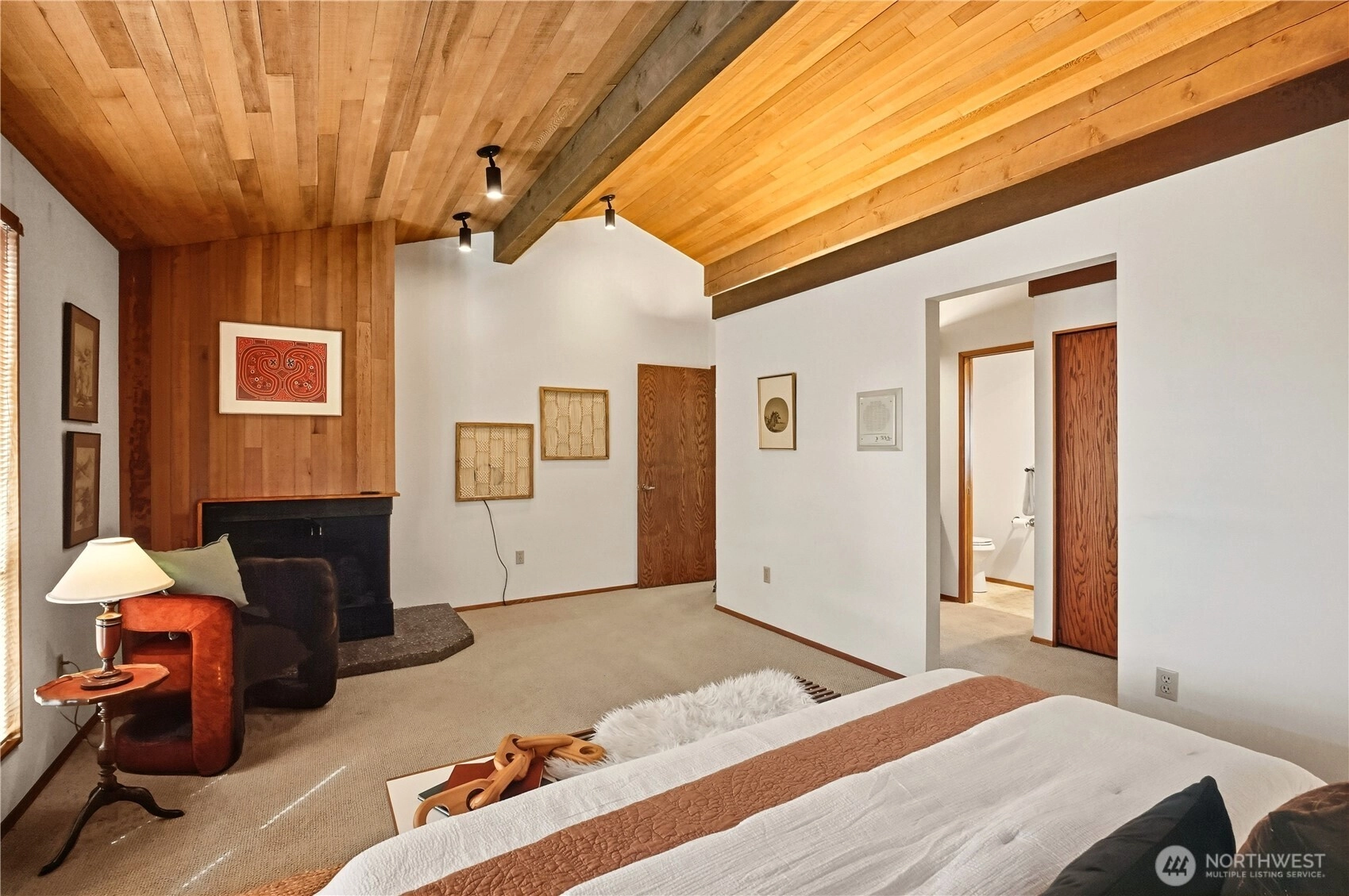 This breathtaking, unique Northwest contemporary home with panoramic views of Puget Sound & Olympic Mountains has been meticulously cared for and kept true to the beloved era and style. The upper level forms the heart of the home with family room, kitchen & dining rooms flowing together beneath cedar-planked cathedral ceilings. Utilize the expansive, west-facing deck to watch marine traffic, the Edmonds-Kingston ferry, and witness unforgettable sunsets. An original, iconic harvest gold wood-burning Malm stove anchors this gathering space, and eat-in kitchen with pass-through to the dining room. A dramatic three-story entry introduces the home’s striking vertical design and open sightlines. The entry-level living room boasts cathedral ceilings, gas fireplace & patio with peek-a-boo Puget Sound view, perfect for entertaining. Upstairs, the spacious primary suite features a fireplace, walk-in closet, and en-suite ¾ bath; along with 2nd bedroom, full bath, & office/laundry room with backyard access. The lower-level rec room opens to an oversized patio and thoughtfully designed garden of NW native plants & winding pathways on an oversized lot. Also find 3rd bedroom, ¾ bath, oversized two-car garage, and generous crawlspace for storage. Tucked into a peaceful, coveted Broadview enclave with buried utilities, amazing views, and quiet walkable roads, just minutes to Carkeek Park and Llandover Woods Greenspace – you'll almost forget you haven’t left Seattle. Welcome home!