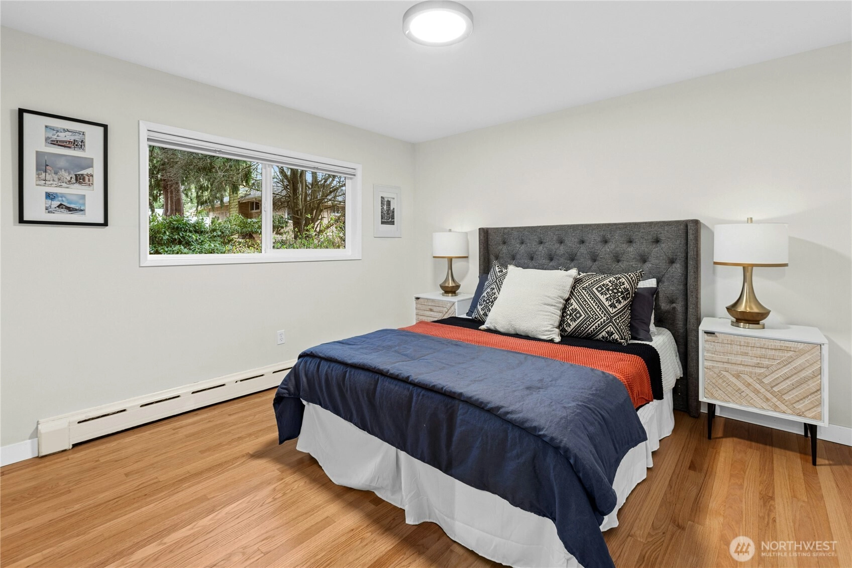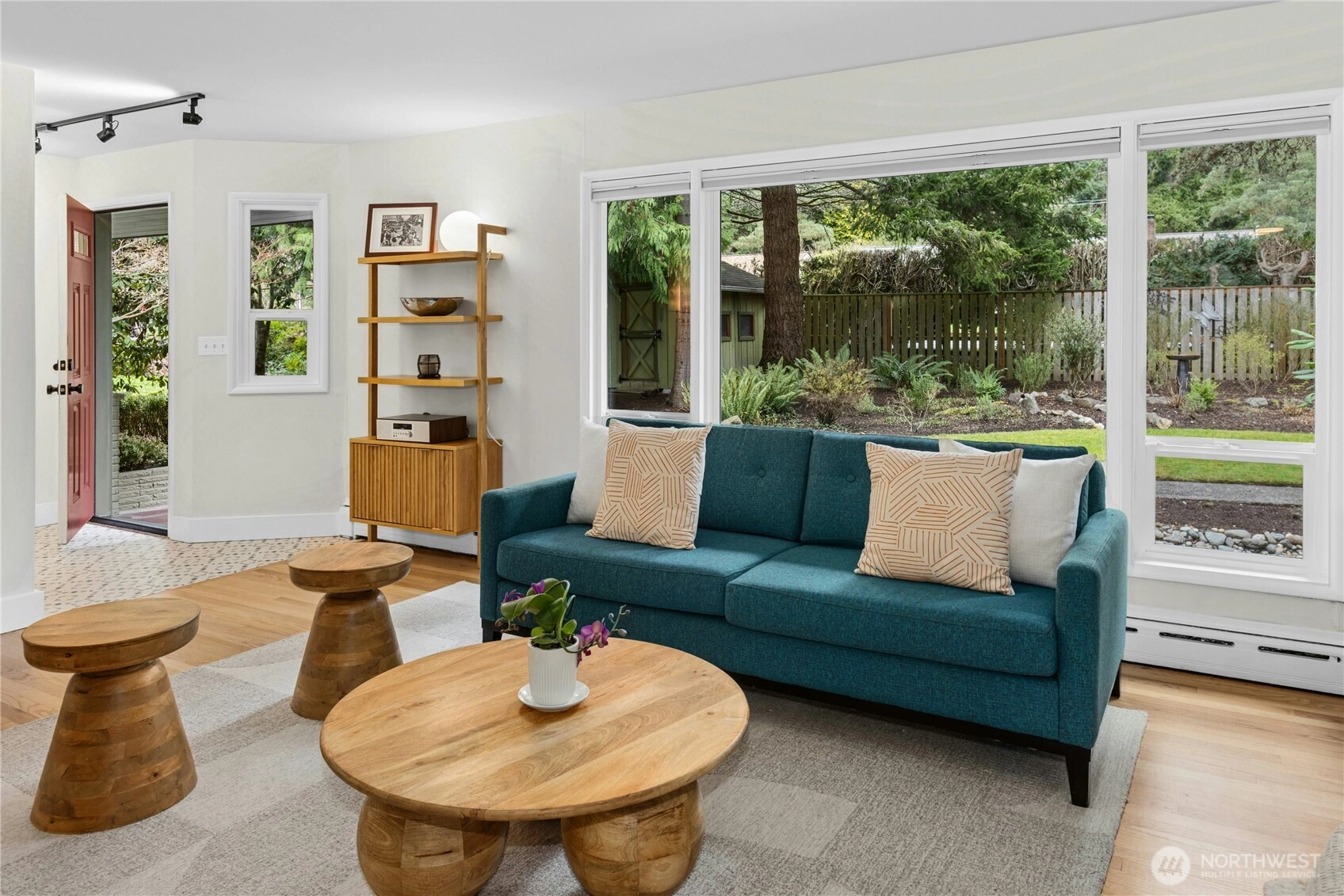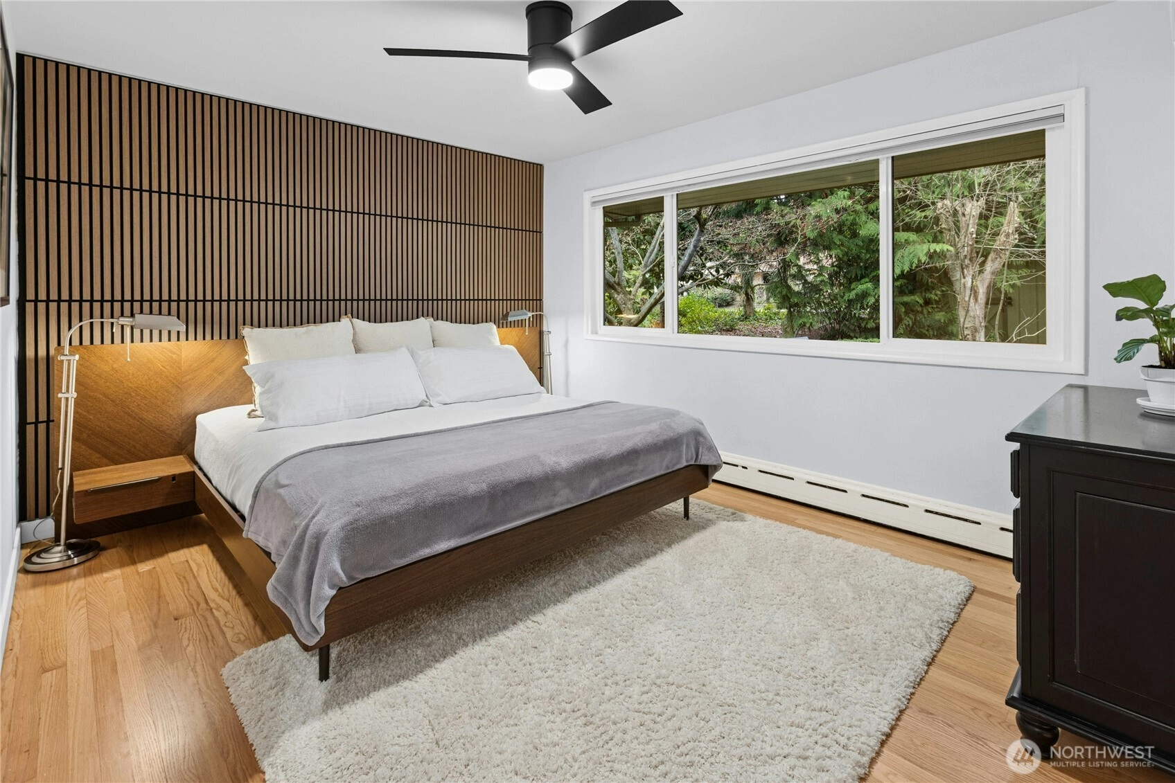 Architecturally pure. Aesthetically reborn. Here, level living calls from craved Edmonds location: Steps from beloved Yost Park and a simple e-ride to the Bowl's best eateries, shops, galleries, ferry and parks. Step inside the restored, light-filled interior, cocooned by lush gardens, and delight in the details: Expanses of pristine hardwoods playing nice with geometric tile, wood-slatted walls, curated lighting & commanding wood-burning fireplace; Stunning bath reimagination with quartz-topped double vanity, spa-worthy soaking tub, sublime fixtures and sleek walk-in shower; A chef's center boasting shaker fronts & pulls, stunning stone splash, can-do marmoleum, floating shelves & clever accent lighting; And, exquisite suites dressed in soft designer hues with new, natural-finished solid oak doors & matte black hardware. Seriously function forward, too, with new sewer line & clean-out, electric panel, water heater, fiber & video cabling, in-ceiling ductless mini splits, retro foam insulated exterior walls and so much more. Storage at every turn (do not miss the oversized garage & cottage shed), uber-efficient laundry center and plenty of period details left in tact to impress the enthusiast. The gardens are a masterclass in color, texture and purpose...this is truly a property to be cherished. Welcome home.