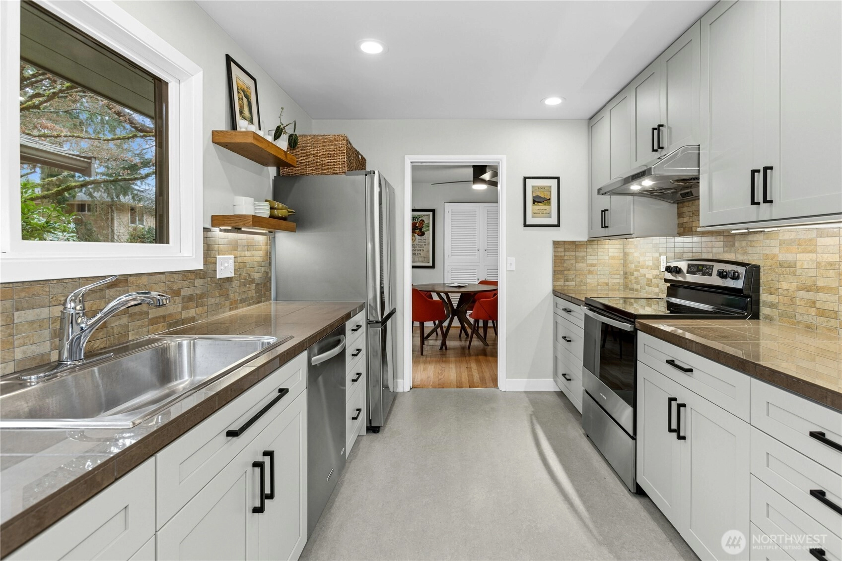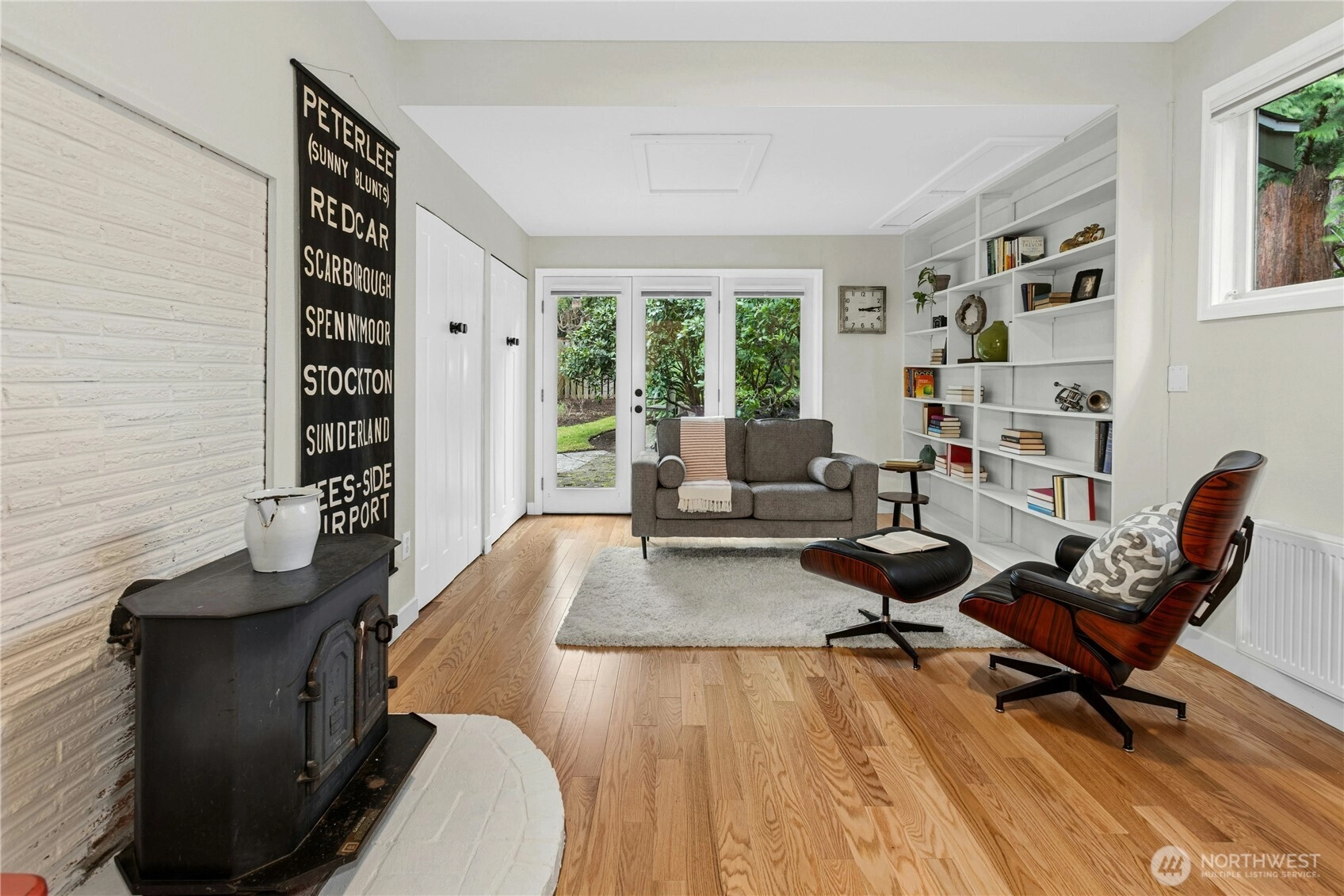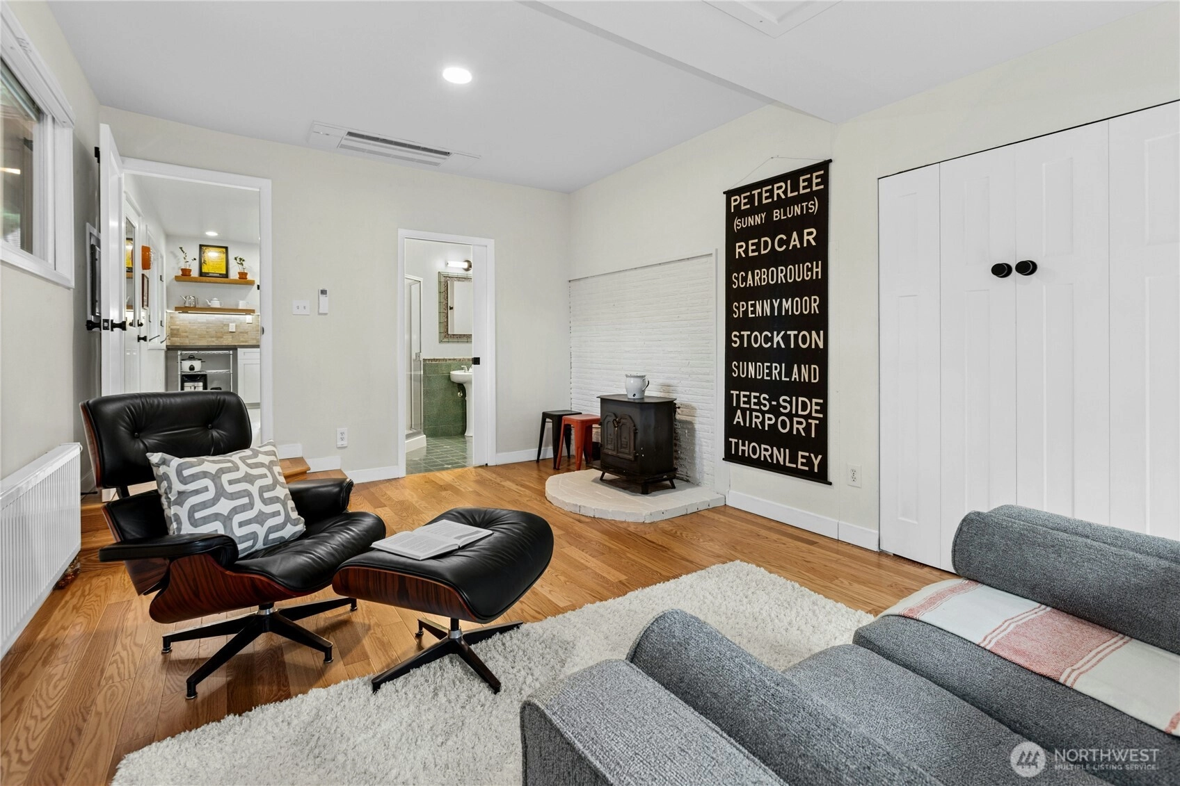 Architecturally pure. Aesthetically reborn. Here, level living calls from craved Edmonds location: Steps from beloved Yost Park and a simple e-ride to the Bowl's best eateries, shops, galleries, ferry and parks. Step inside the restored, light-filled interior, cocooned by lush gardens, and delight in the details: Expanses of pristine hardwoods playing nice with geometric tile, wood-slatted walls, curated lighting & commanding wood-burning fireplace; Stunning bath reimagination with quartz-topped double vanity, spa-worthy soaking tub, sublime fixtures and sleek walk-in shower; A chef's center boasting shaker fronts & pulls, stunning stone splash, can-do marmoleum, floating shelves & clever accent lighting; And, exquisite suites dressed in soft designer hues with new, natural-finished solid oak doors & matte black hardware. Seriously function forward, too, with new sewer line & clean-out, electric panel, water heater, fiber & video cabling, in-ceiling ductless mini splits, retro foam insulated exterior walls and so much more. Storage at every turn (do not miss the oversized garage & cottage shed), uber-efficient laundry center and plenty of period details left in tact to impress the enthusiast. The gardens are a masterclass in color, texture and purpose...this is truly a property to be cherished. Welcome home.