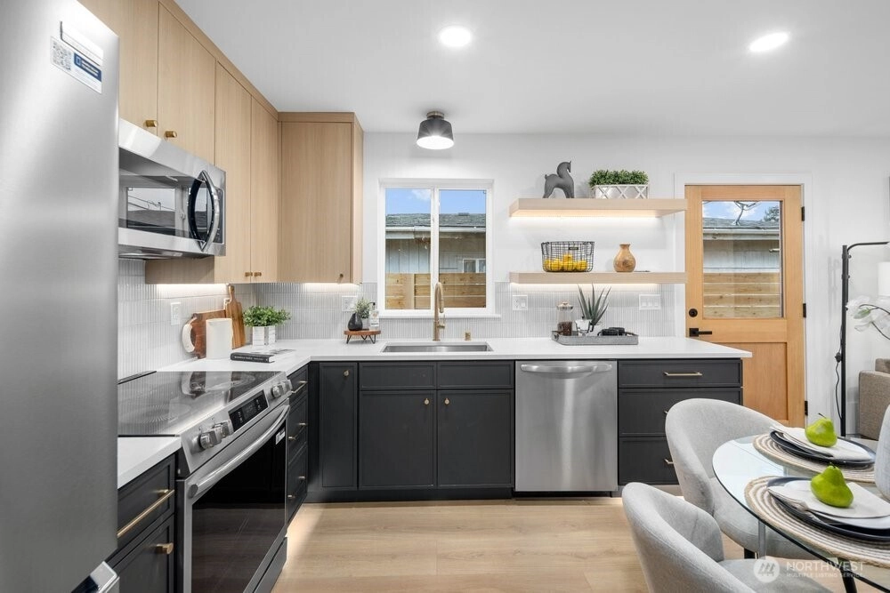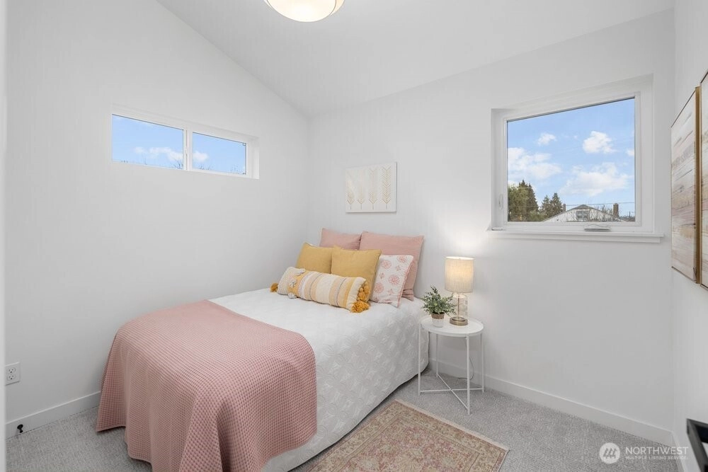 Rare new-construction street-front DADU in North Beacon Hill! Situated on a generous lot with ample outdoor space, this fully fenced home also features a one-car garage. Lives like a single-family home with no shared walls—completely standalone. The main floor offers open-concept living, dining, and kitchen areas, plus a convenient powder room. Upstairs, the spacious primary suite includes a 3/4 bath with double vanity, along with two additional bedrooms and a full bath. Vaulted ceilings elevate the upper level, and mini-splits in the living area and all bedrooms provide efficient heating and A/C. Laundry is located upstairs near the bedrooms for added convenience. Low HOA of just $5/month. A rare opportunity to own a thoughtfully designed DADU in a prime location.