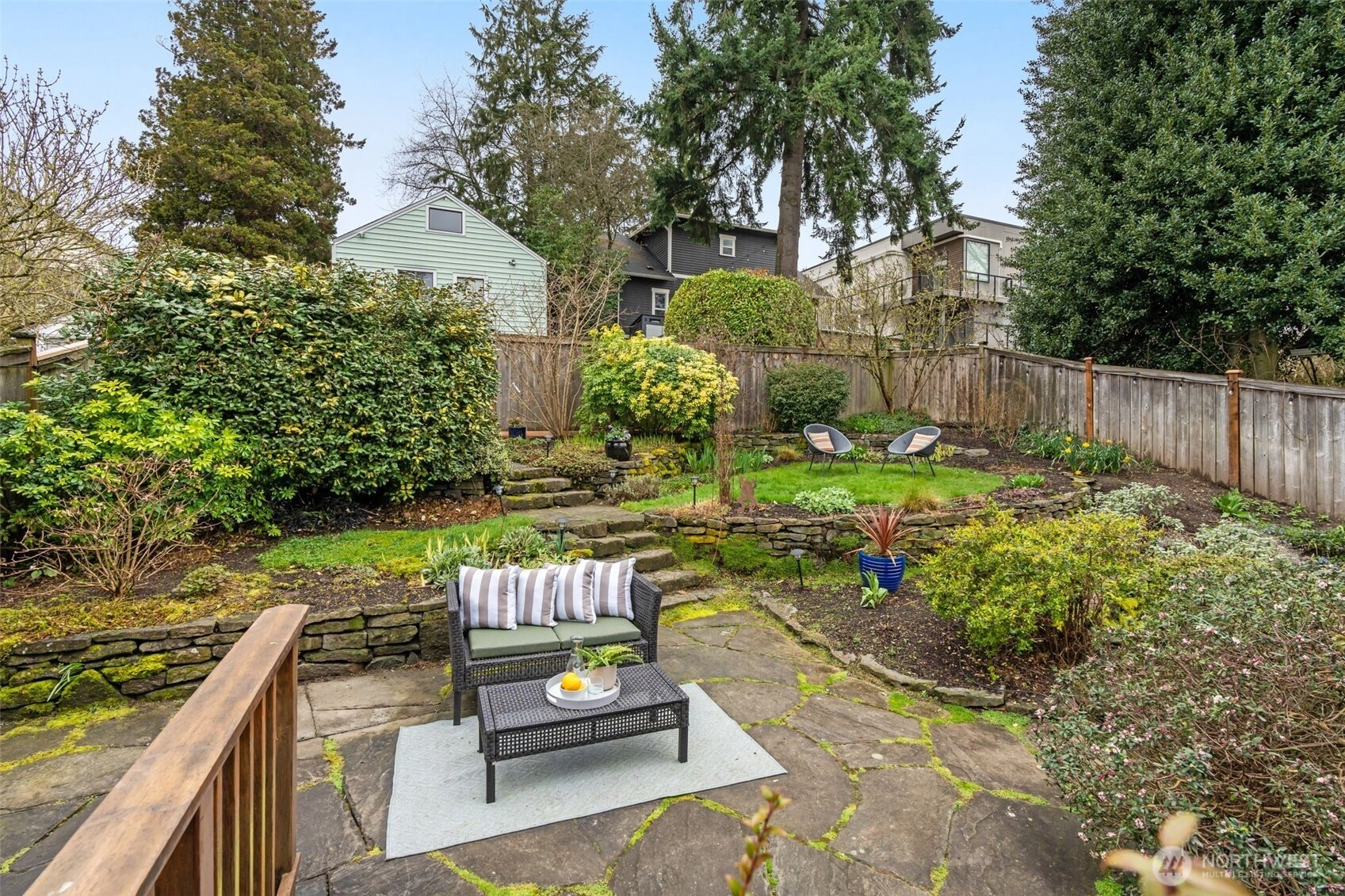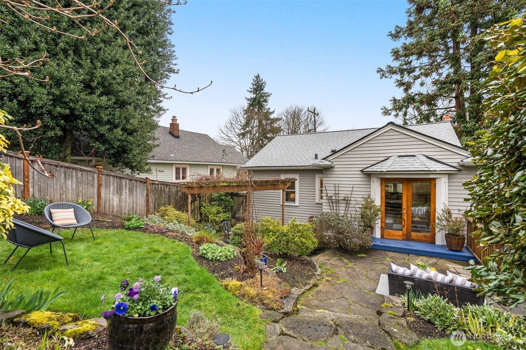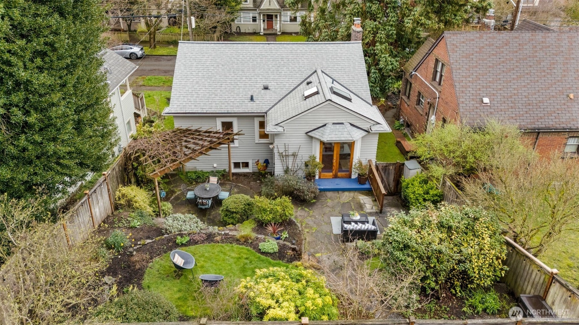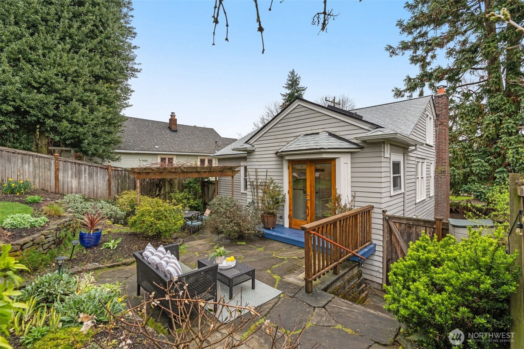 Tucked on a quiet, friendly street, this home offers an everyday lifestyle that feels both peaceful and connected to everything around you. Mornings begin with soft light filtering through vaulted ceilings and skylights in the kitchen, creating a bright, cheerful space for that first cup of coffee. The living room is anchored by a Batchelder-tiled gas fireplace and classic coved ceilings that add character and timeless appeal. The dining room sets the stage for everything from intimate dinners to casual gatherings. Completing the main floor are 2 bedrooms and a full bath. Downstairs offers a flexible space ready to meet your needs. A third bedroom? A media or hang-out room? A potential income-generating suite for Airbnb or long-term rental? The choice is yours. The spacious, terraced backyard creates multiple areas to gather, relax and entertain. Host summer dinners on one level, set up a firepit or lounge area on another and still have room to play and garden. It’s a yard that adapts to every occasion from lively celebrations to quiet Sunday mornings with a cup of tea. Beyond your front door, the neighborhood invites you outside. Take a morning walk or jog along the trails of Ravenna Park or head to Maple Leaf Reservoir Park where there’s something for everyone; swing sets, pickleball courts, and open fields to kick a ball around. Reward yourself afterward with a treat from Macrina Bakery just across the street.